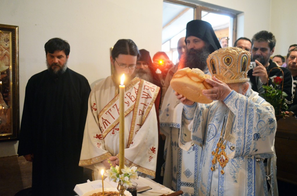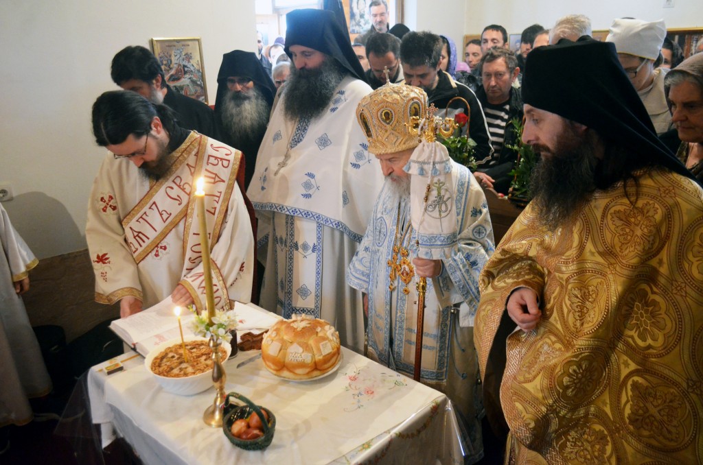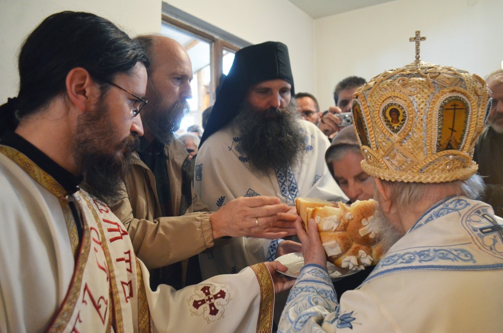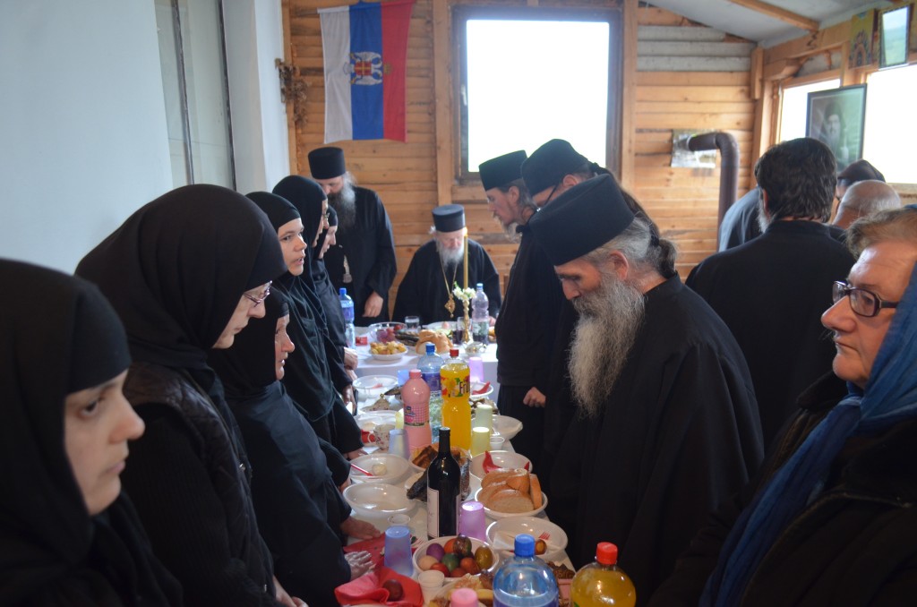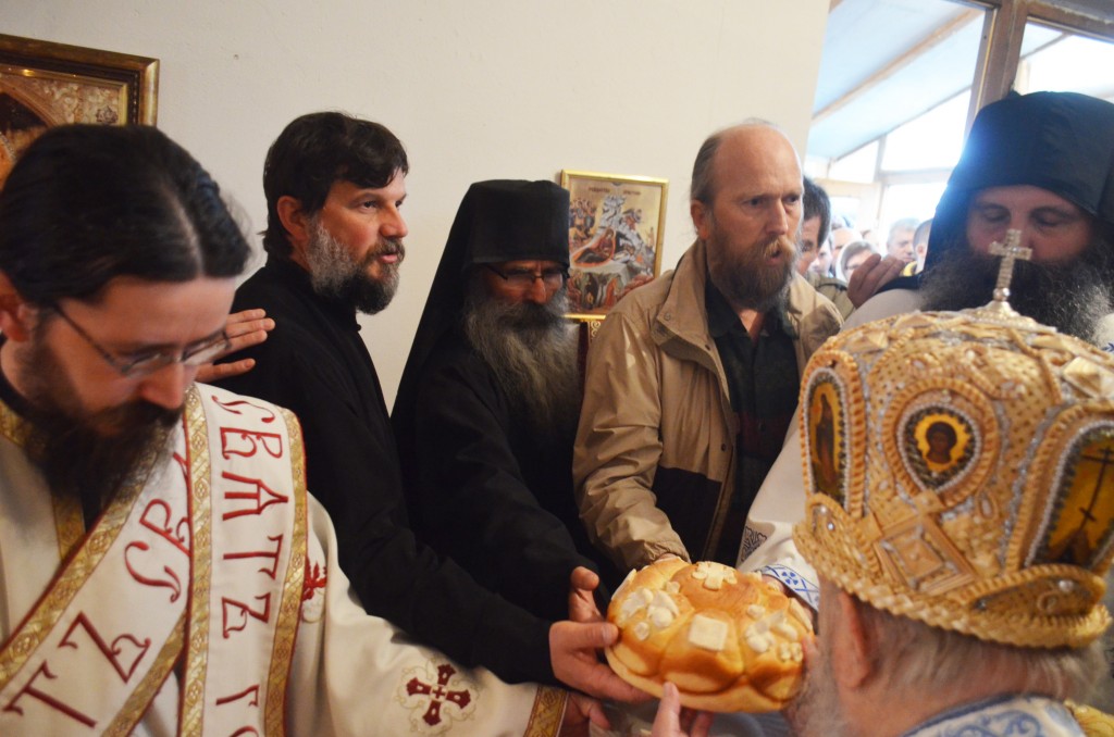 Након Литургије владика је пререзао славски колач. Домаћини славе ове године, уз старешину катакомбе протојереја Небојшу (Стевића), били су Горан и Љупка Мијаиловић из Горњег Милановца и Снежана Станковић из Крагујевца. Део колача за следећу годину узеле су Наташа Ђурђевић из Крагујевца и Зорица Тршић из Смедерева.