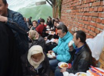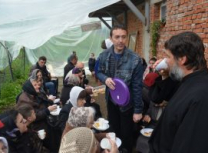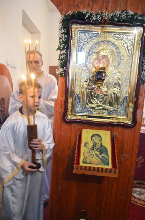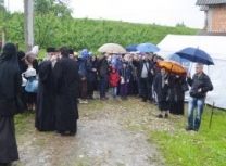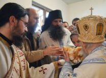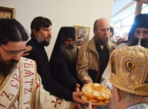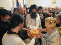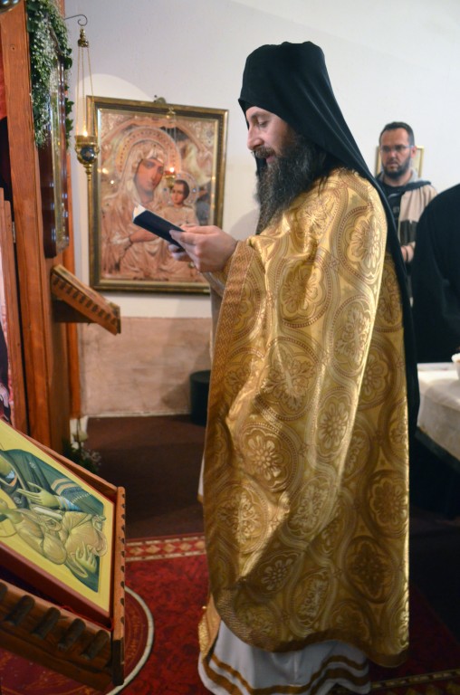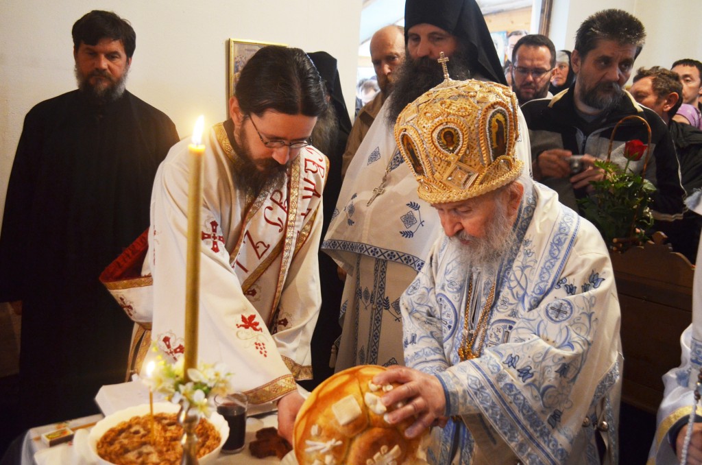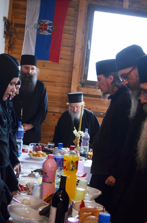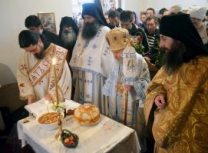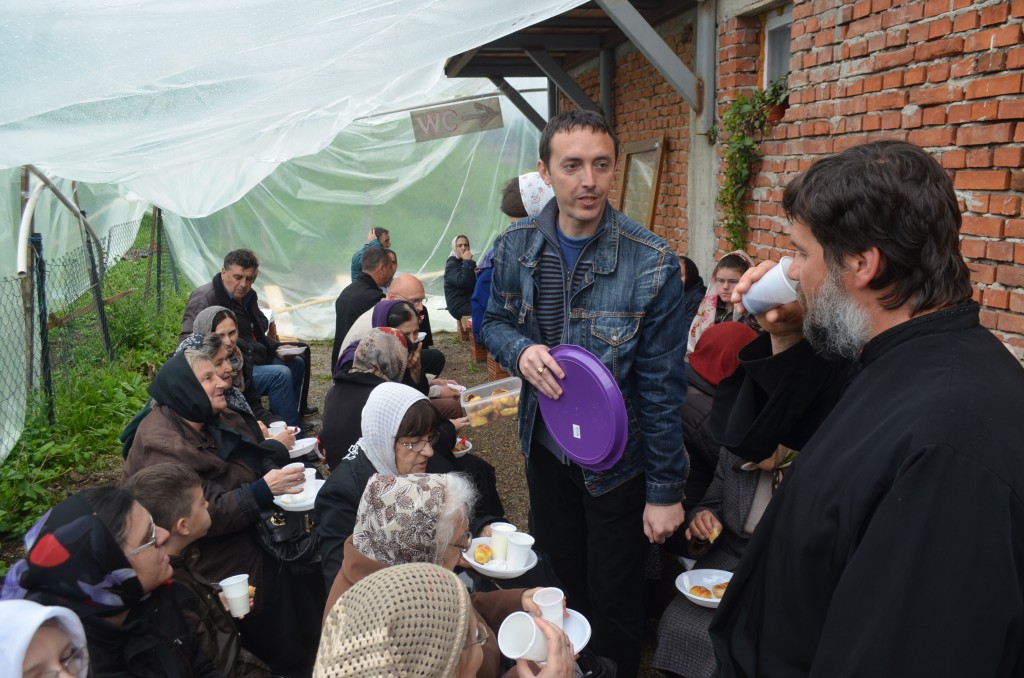 Након Литургије владика је пререзао славски колач. Домаћини славе ове године, уз старешину катакомбе протојереја Небојшу (Стевића), били су Горан и Љупка Мијаиловић из Горњег Милановца и Снежана Станковић из Крагујевца. Део колача за следећу годину узеле су Наташа Ђурђевић из Крагујевца и Зорица Тршић из Смедерева.