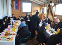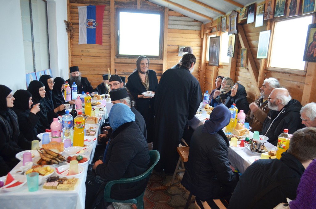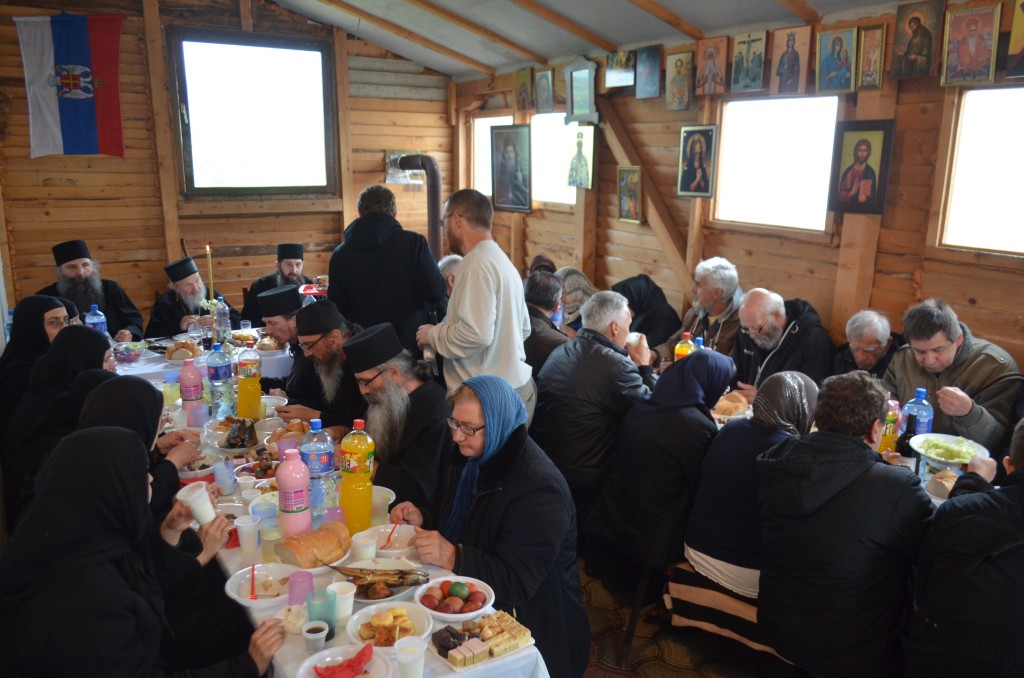 Празнична свечаност је настављена трпезом љубави за све присутне и појањем богомољачких песама Светог владике Николаја од стране монахиња епархије у егзилу и окупљеног верног народа.