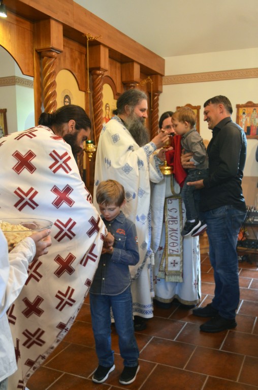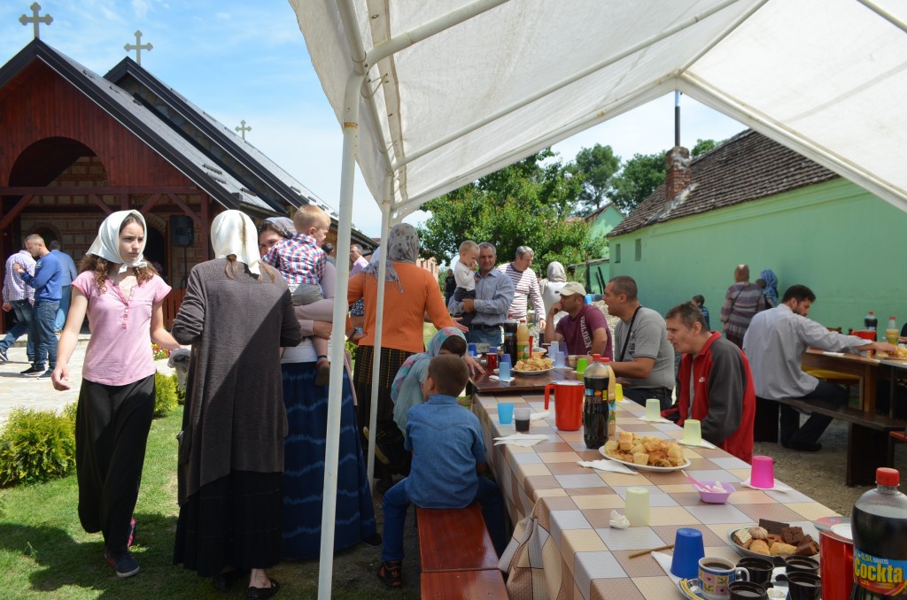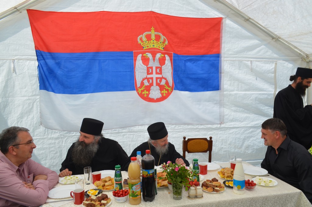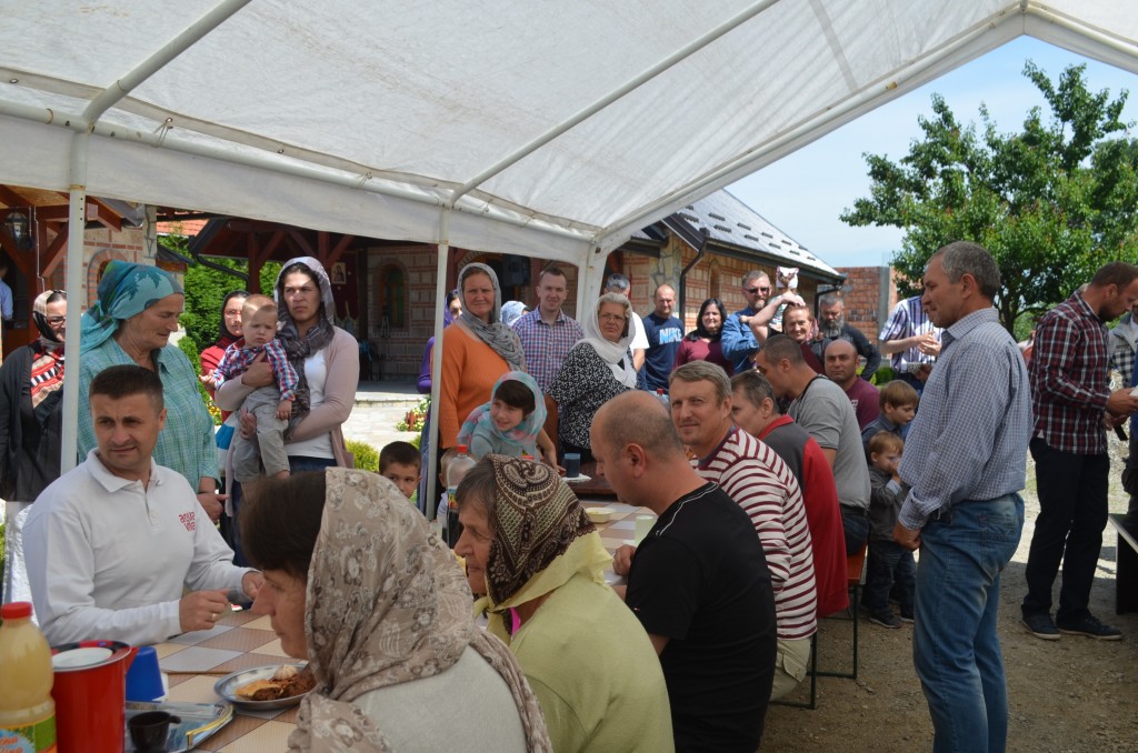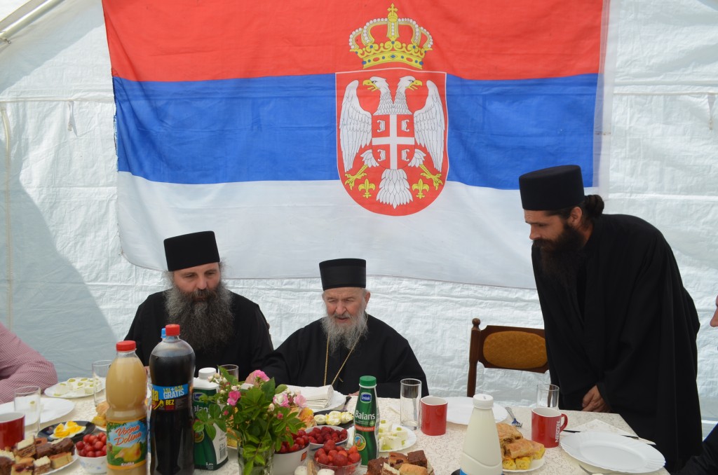 Празнично славље настављено је трпезом љубави коју је припремило братство манастира. Владика Артемије је након тога обишао манастирски конак у изградњи и благословио даљи рад и труд монаха и верног народа на подизању ове светиње.