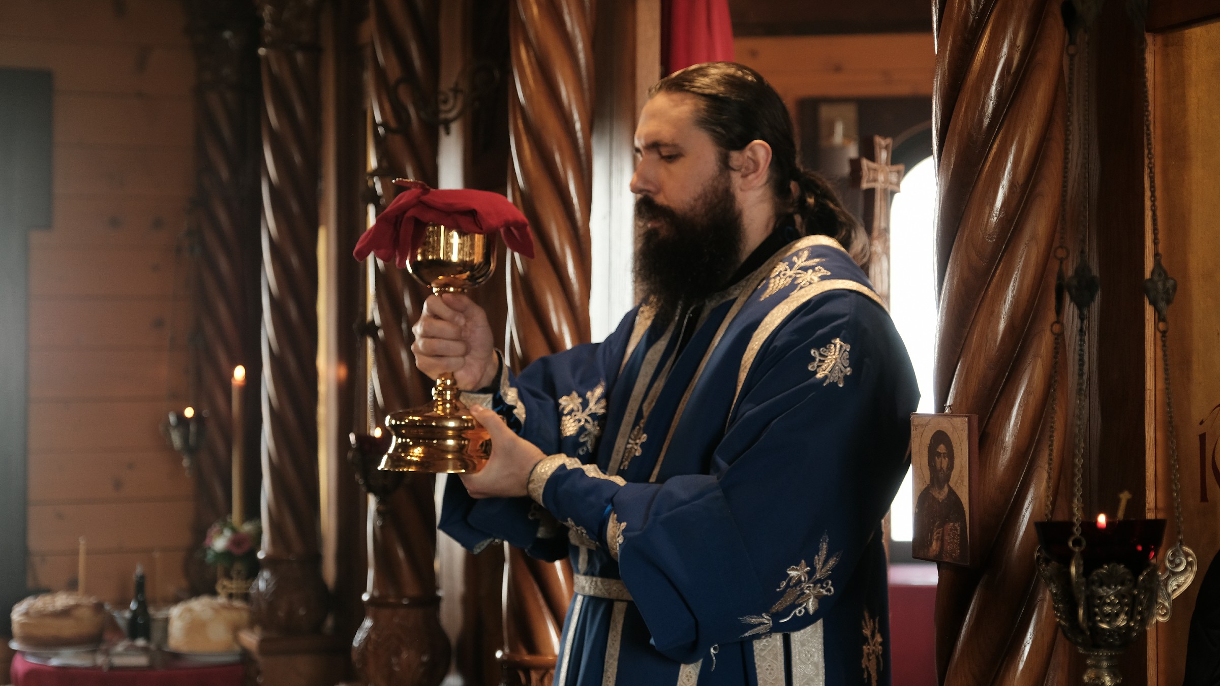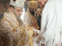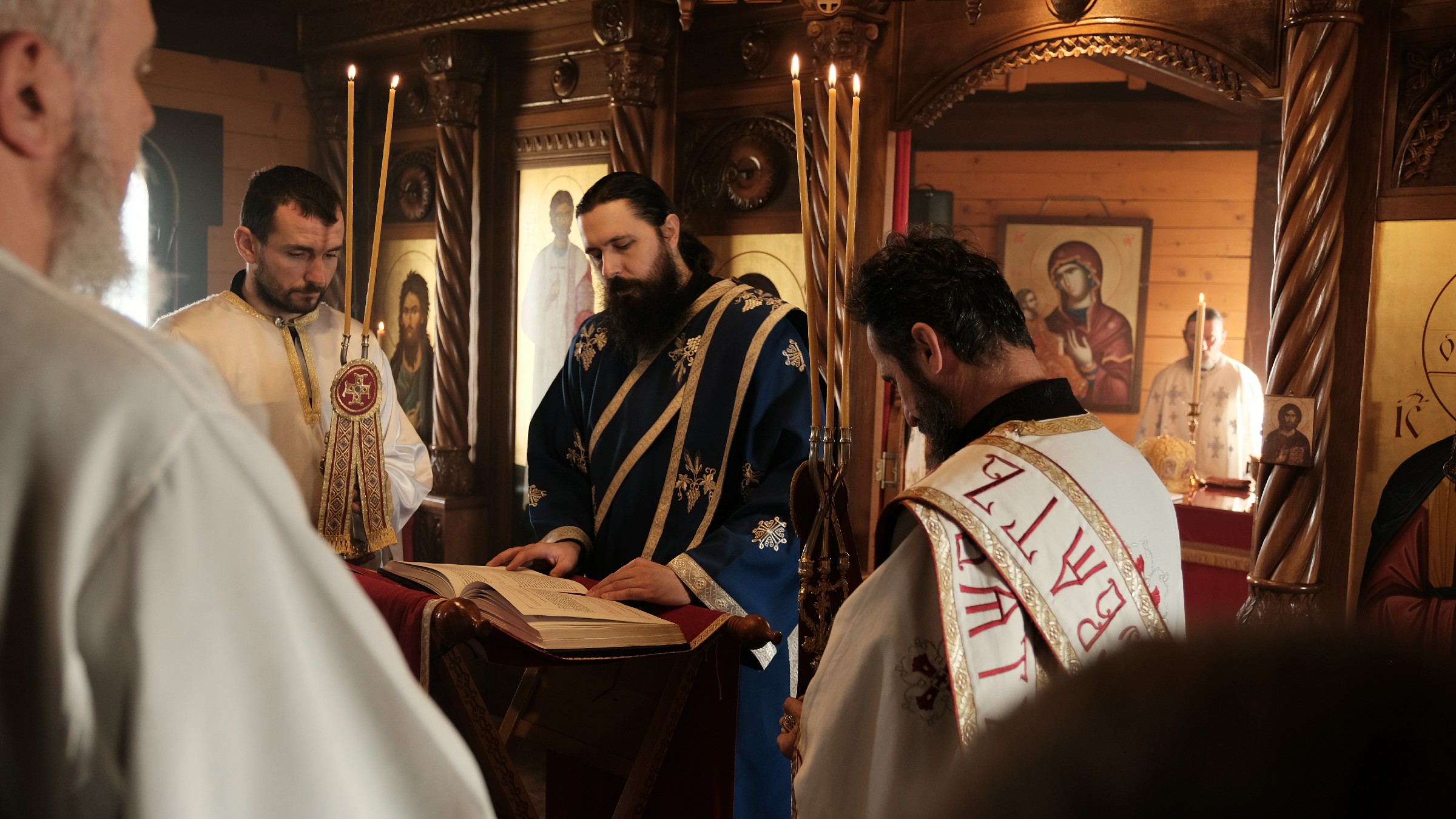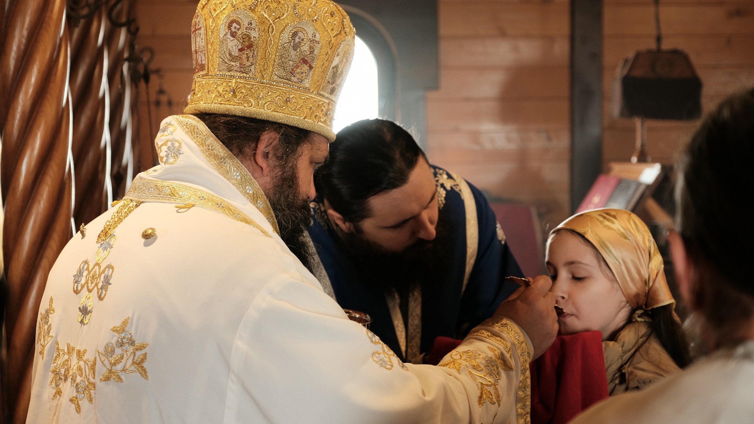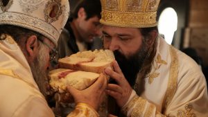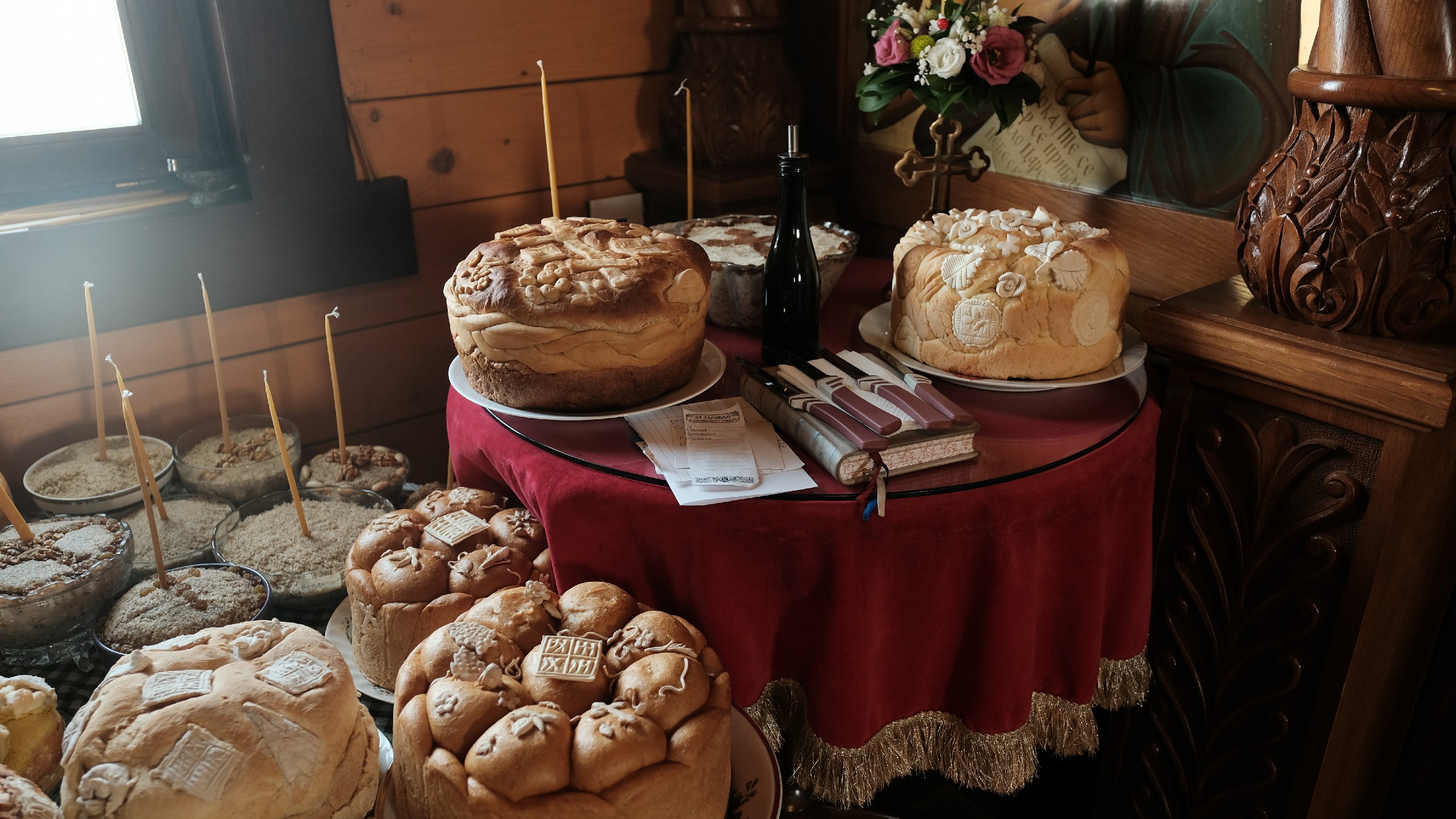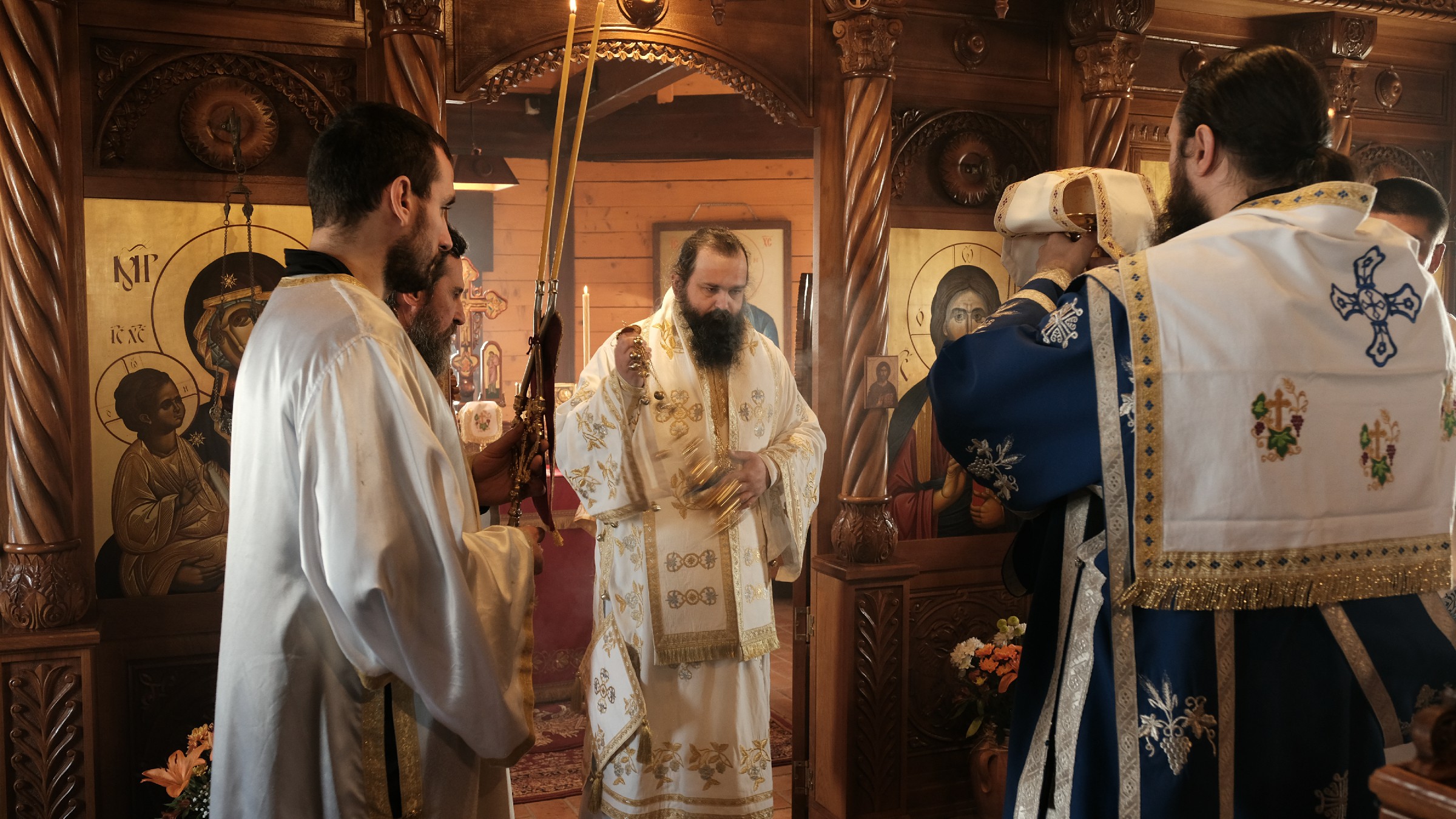 Након Свете Литургије Владика Ксенофонт је обавио чин резања славског колача и благосиљања жита које је у част светог великомученика Георгија принео Владика Николај.