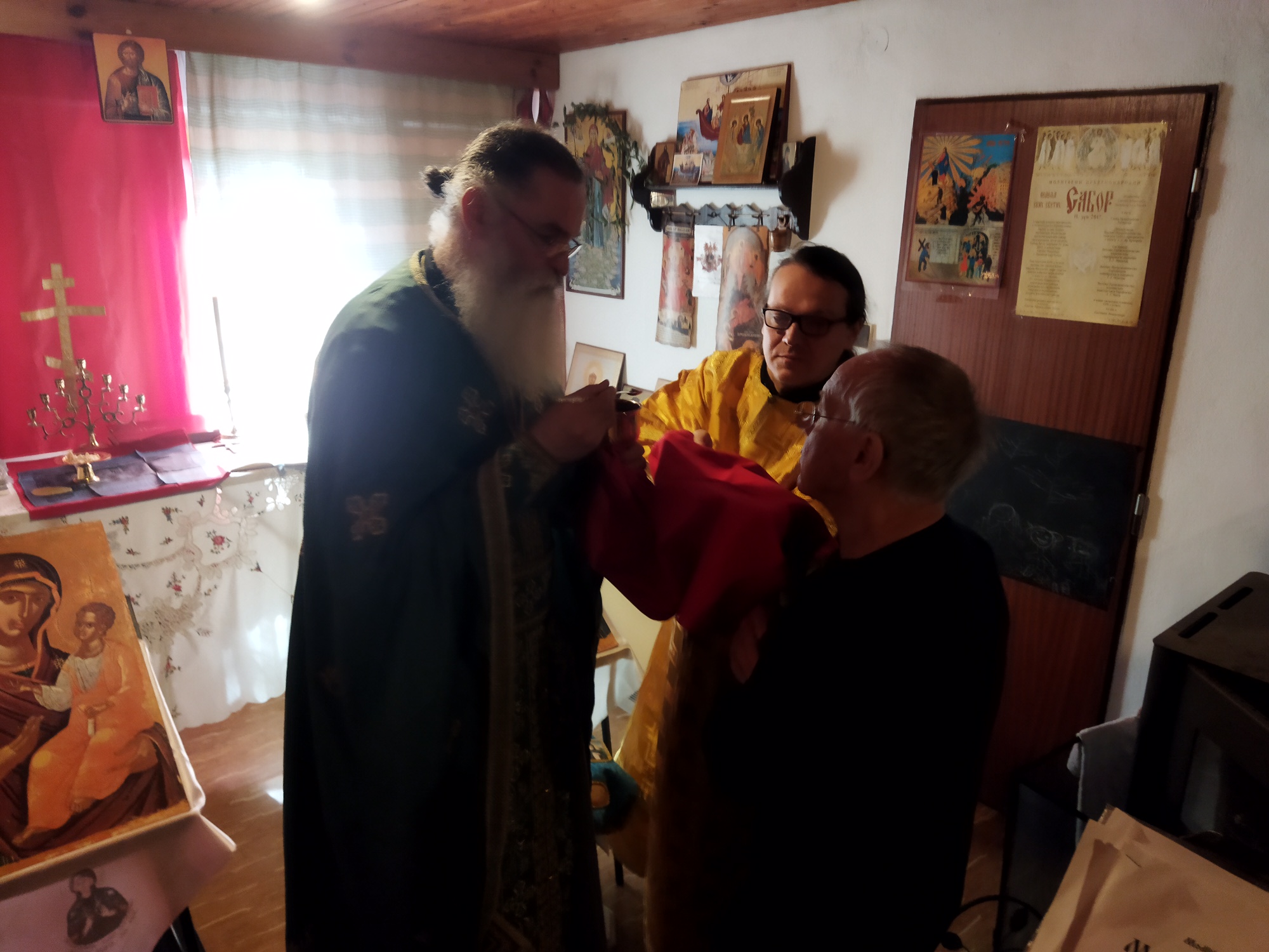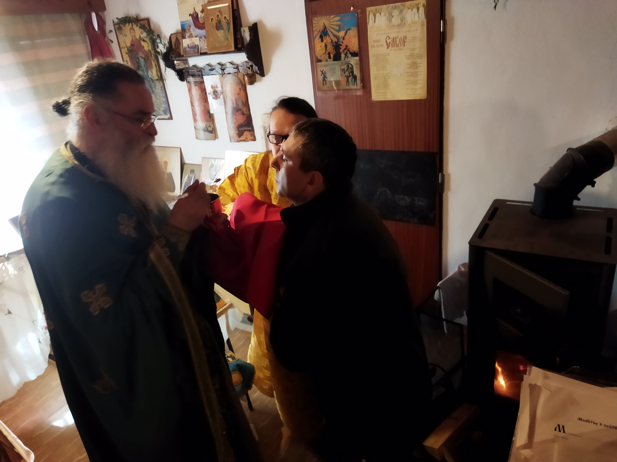 У Недељу православља протосинђел Димитрије (Ђоковић) служио је већ други пут у Словачкој, у кућној капели породице ипођакона Лукаша Бајзика у селу Духонка код Прашица (округ Топољчани на северозападу Словачке). Прве литургије је наш свештенослужитељ у овој капели служио 9. и 10. октобра прошле године и том приликом је обавио и крштење мајке брата Лукаша, слушкиње Божије Марте Бајзик. Ова капела посвећена Светом свештеномученику Горазду Новом настала је с благословом блаженопочившег архимандрита Хризостома (+2021), настојатеља манастира Преподобног Никодима Светогорца код Пендалофоса (северна Грчка). У почетку су овде служили свештеници Православне Цркве Словачке и Чешких земаља, но после псеудо-сабора на Криту 2016. године старац Хризостом је верницима благословио да се за све своје духовне потребе обрате свештенослужитељима Епархије рашко-призренске у егзилу. Од тада су православни Словаци у све већем броју долазили у катакомбни манастир Свих српских светитеља у Аустрији, али будући да су током последње две године били у немогућности да слободно прелазе међудржавне границе, обратили су се Епископу Ксенофонту с молбом да се повремено служе литургије у кућној капели Бајзикових, за шта су убрзо и добили архијерејски благослов. Литургијама за сада присуствује око 10 верника из Словачке, који се увек припреме за свете тајне исповести и причешћа. Интересантно је да се брат Лукаш труди на превођењу молитвеника, требника и других богослужбених текстова на савремени словачки језик и да са својом породицом на литургијама поје на словачком, што је у Словачкој права реткост с обзиром да се њихова помесна Црква није трудила да врши мисију на народном говорном језику, већ су се користили само чешки и црквенословенски (чак је и само православно Еванђеље на словачком прави раритет).