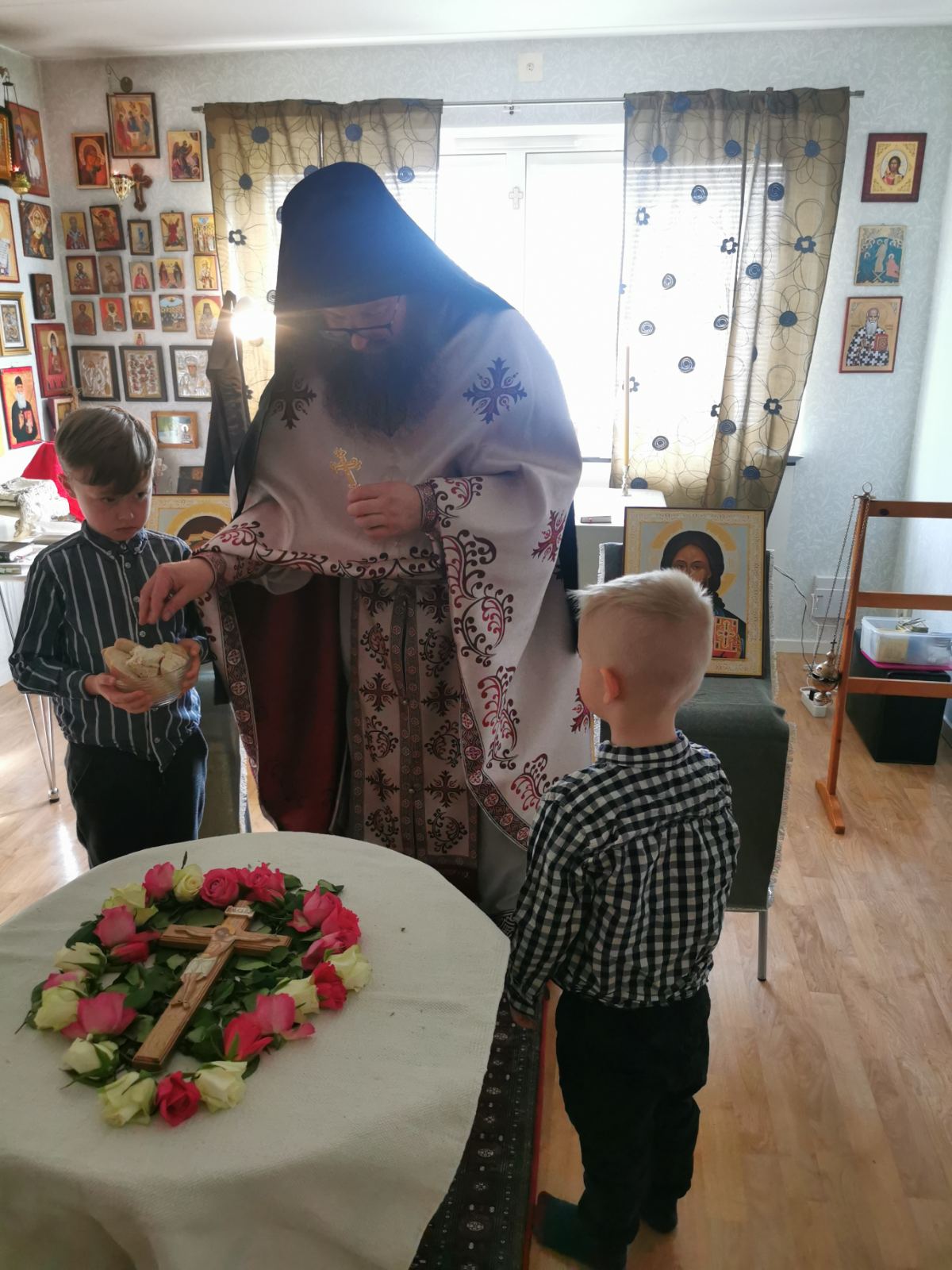 У трећу недељу Часног Поста – Крстопоклону, 27. марта ове године, десио се још један необичан и веома радостан догађај у животу наше Епархије. Свету литургију је први пут свештенослужитељ наше Епархије служио у Шведској. На такав начин Епархија је донела благослов нашег Светог Старца – блаженопочившег Владике Артемија у нови простор Европе. Шведска је, после Србије, Грчке, Републике Српске, Аустрије, Русије, Украјине, Немачке, Велике Британије, Црне Горе, Пољске и Словачке постала нова земља Европе, у којој се служило или служи света литургија с благословом Епископа рашко-призренског у егзилу. Литургија је служена у граду Савхе (Savsjö) у кући брата Себастијана Хебај (Sjöberg) и његове породице, у одвојеној просторији. На литургији је било присутно неколико верника и сви су се исповедали и причестили. Литургију је служио протосинђел Јов (Кадило) из Манастира Свих српских светитеља у Гринбаху (Аустрија).