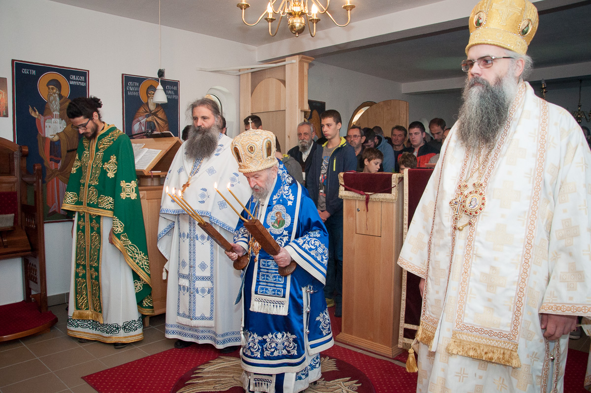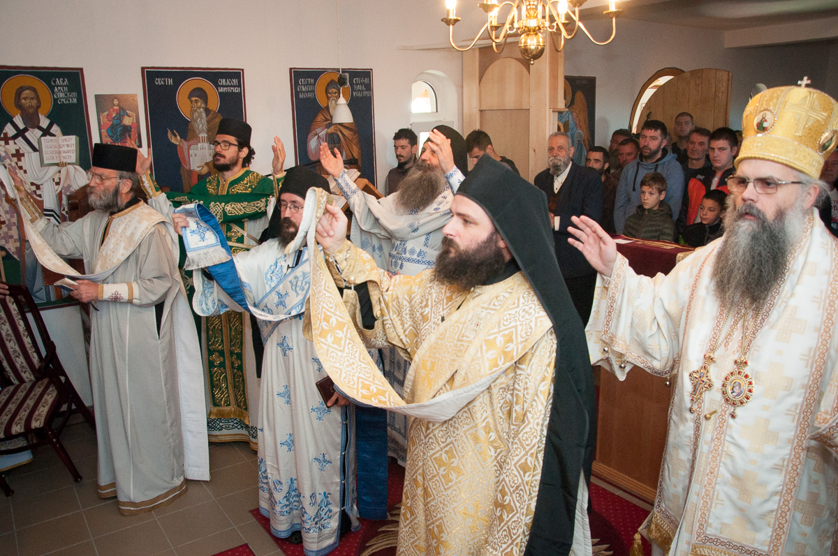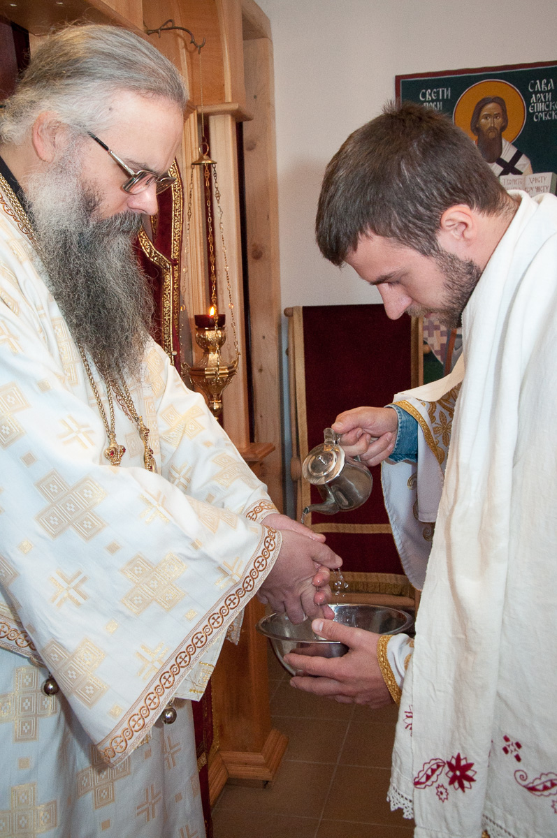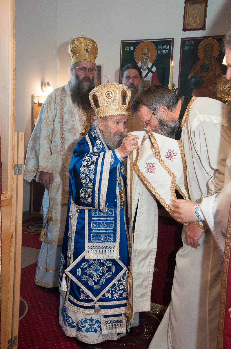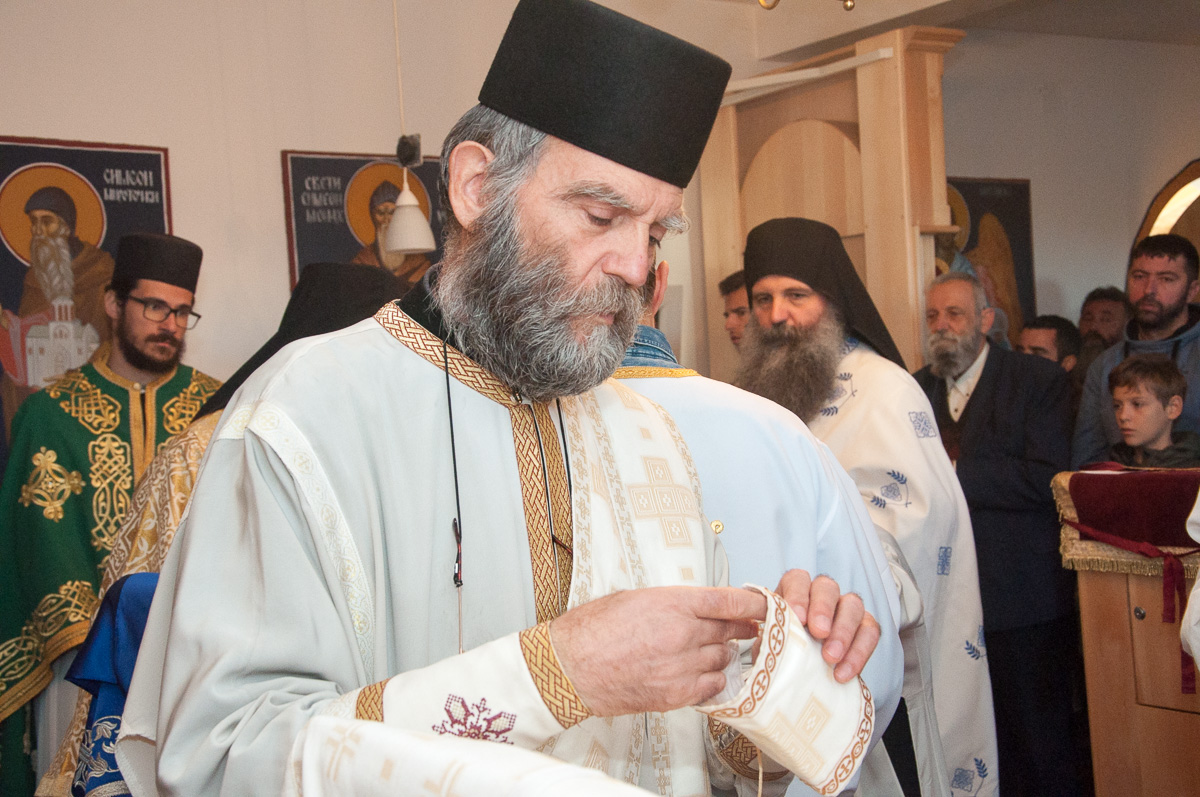 У току Литургије Владика Артемије је у чин јереја рукоположио ђакона Синишу Ђурина из Новог Сада.