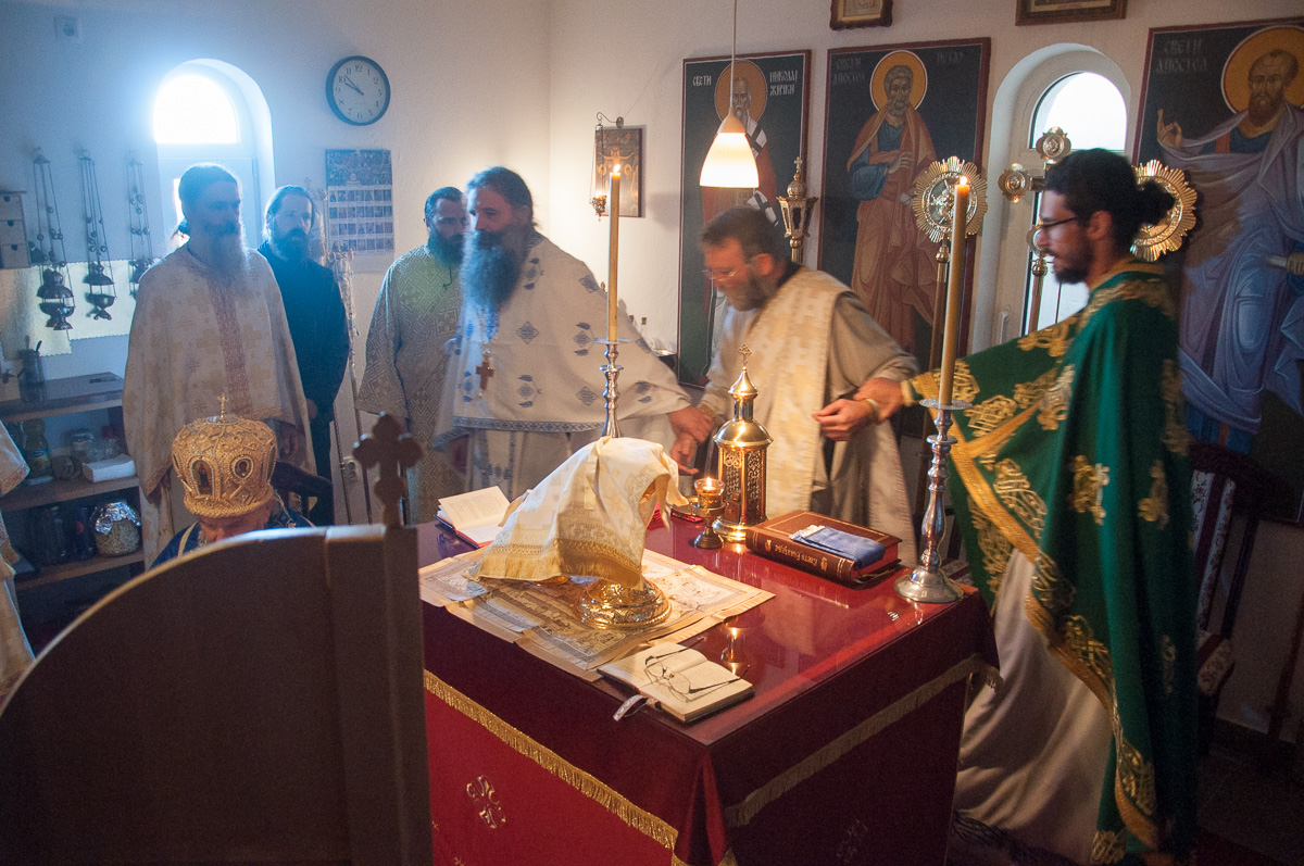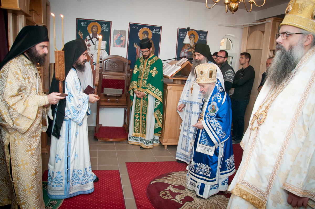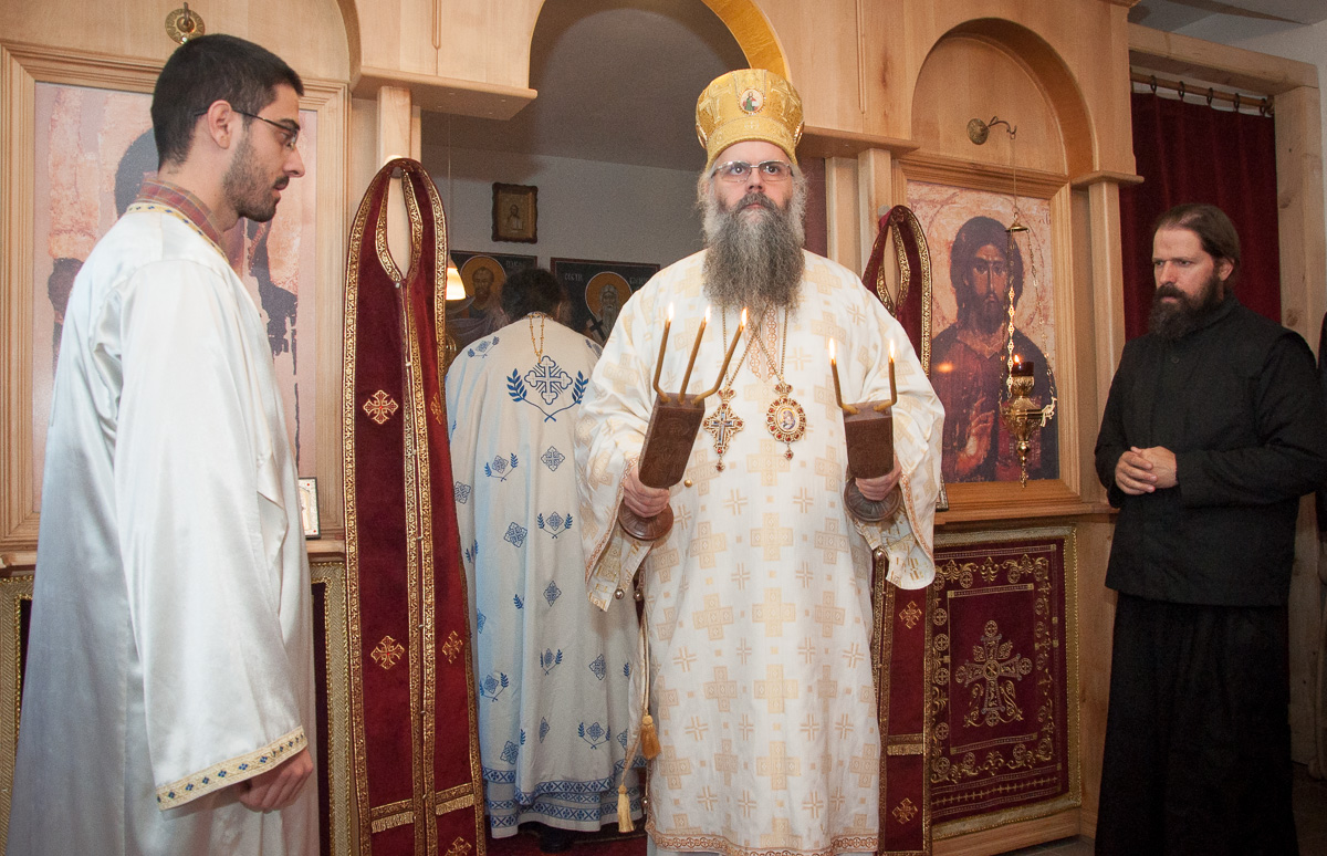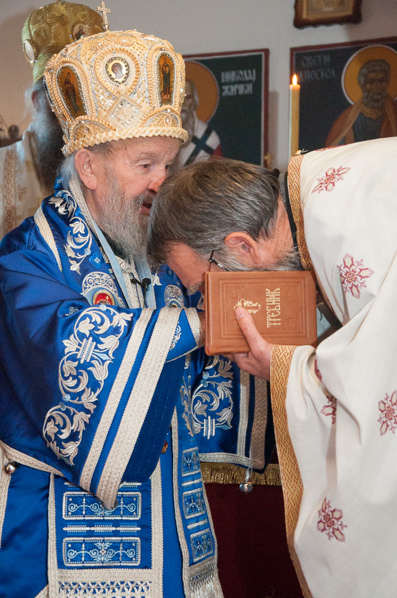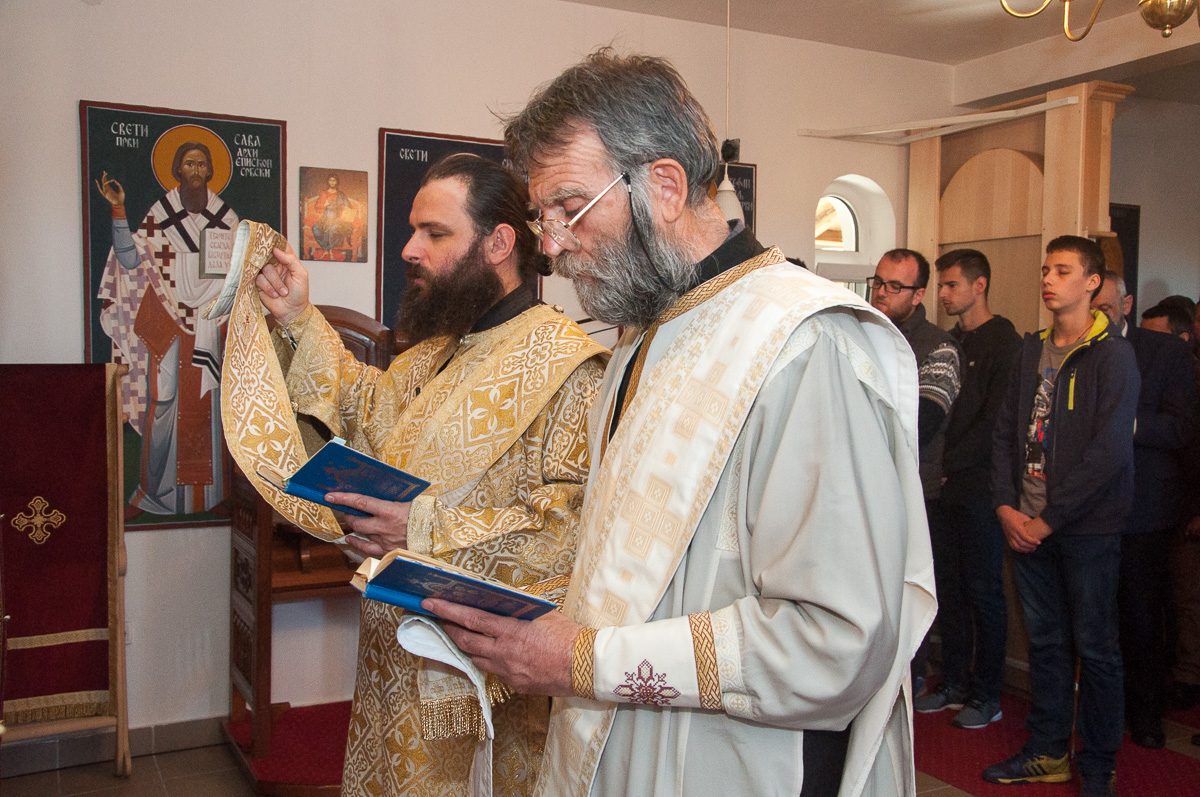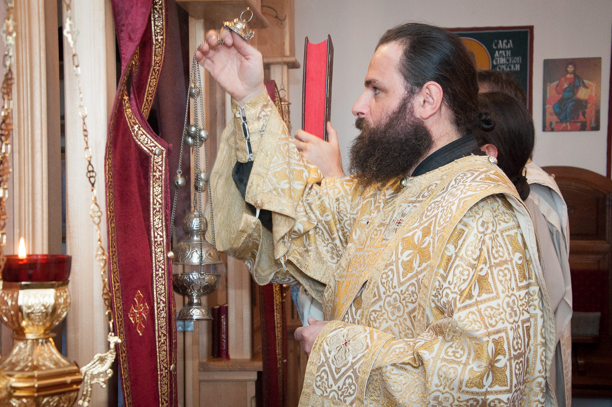 У току Литургије Владика Артемије је у чин јереја рукоположио ђакона Синишу Ђурина из Новог Сада.