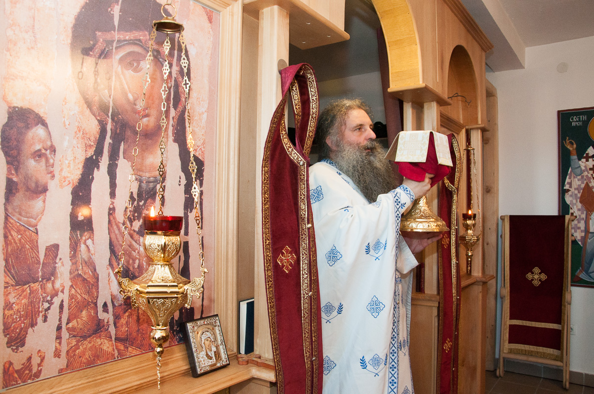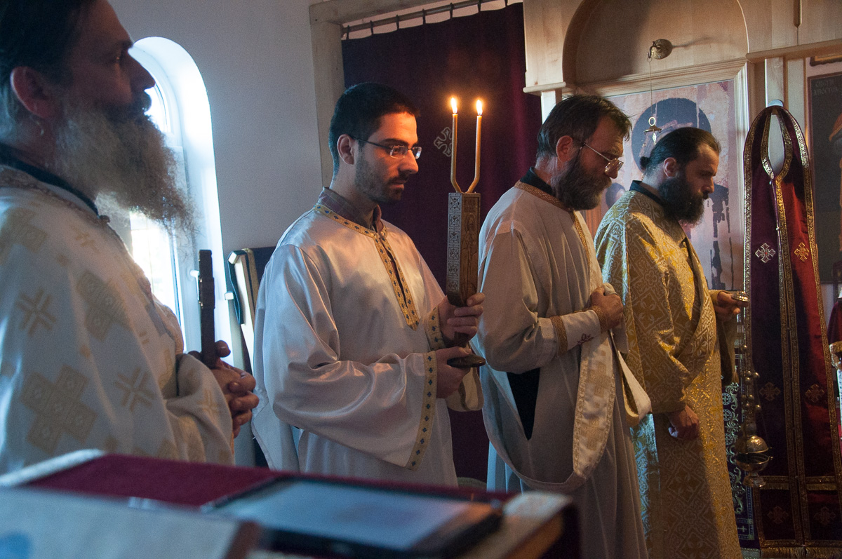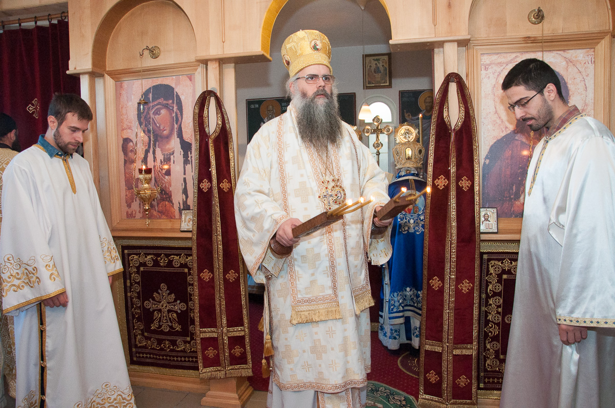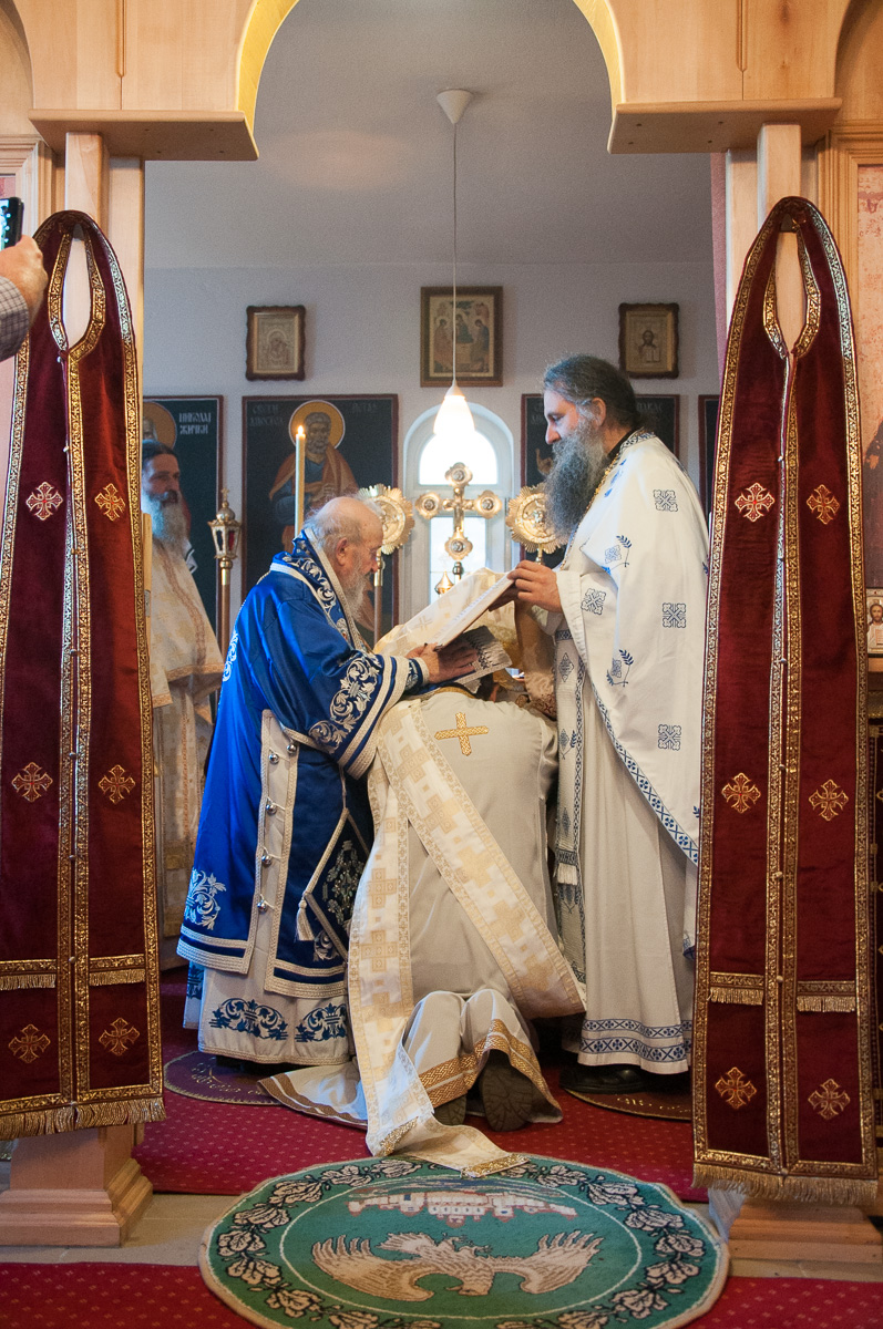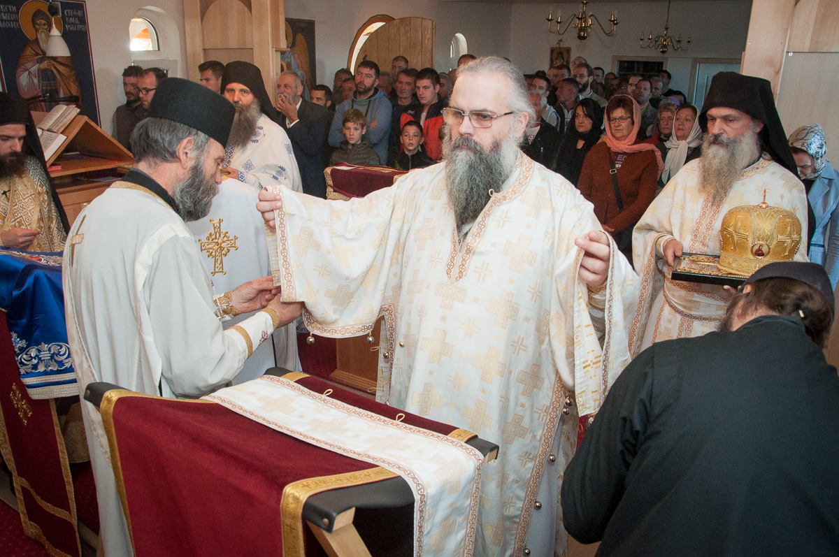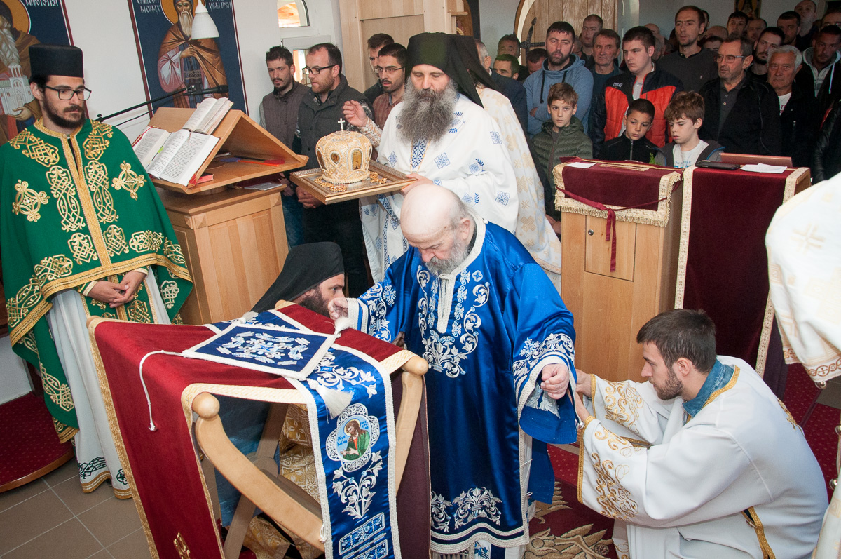 У току Литургије Владика Артемије је у чин јереја рукоположио ђакона Синишу Ђурина из Новог Сада.