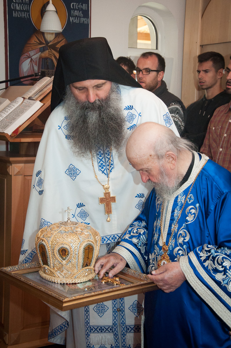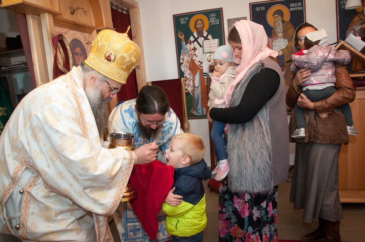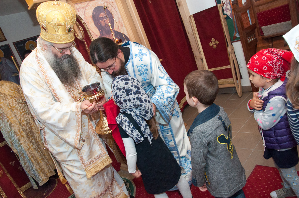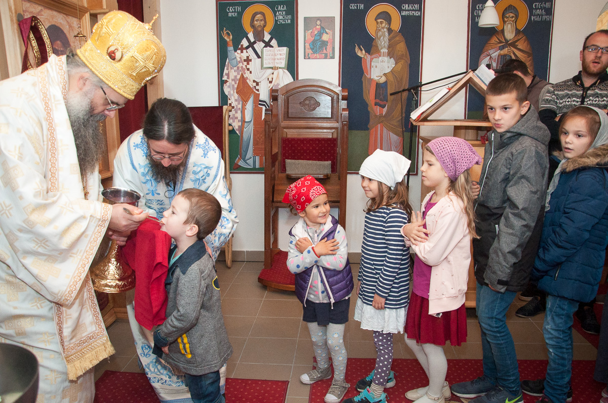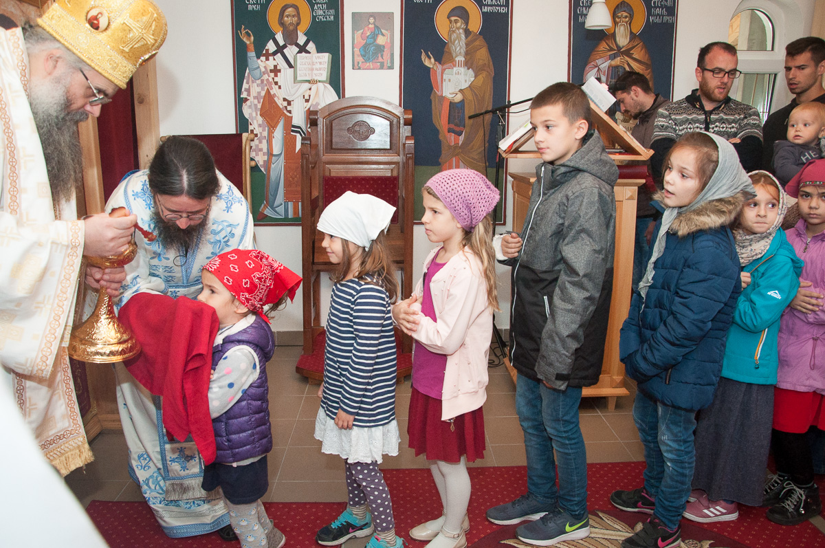 У току Литургије Владика Артемије је у чин јереја рукоположио ђакона Синишу Ђурина из Новог Сада.