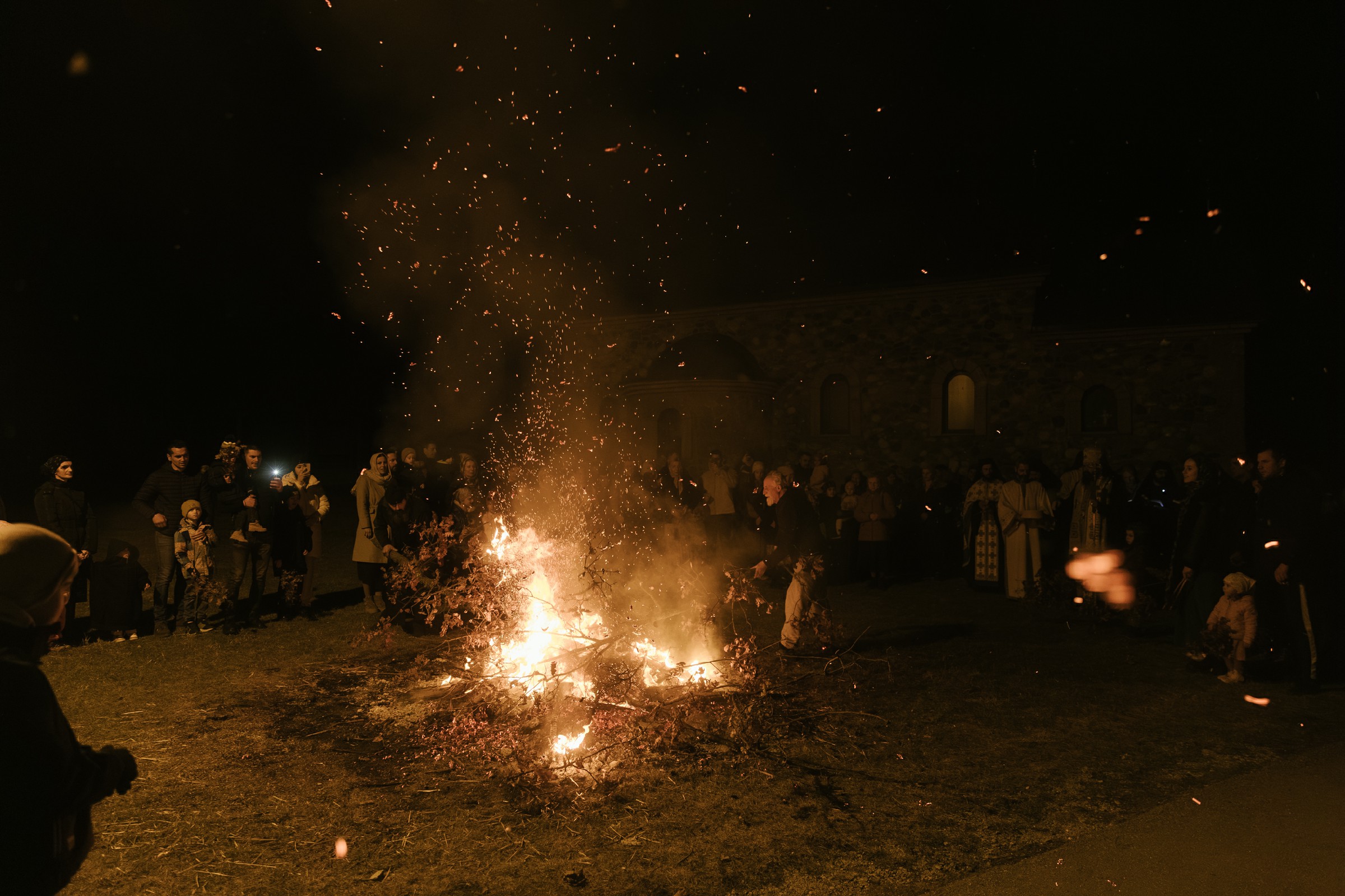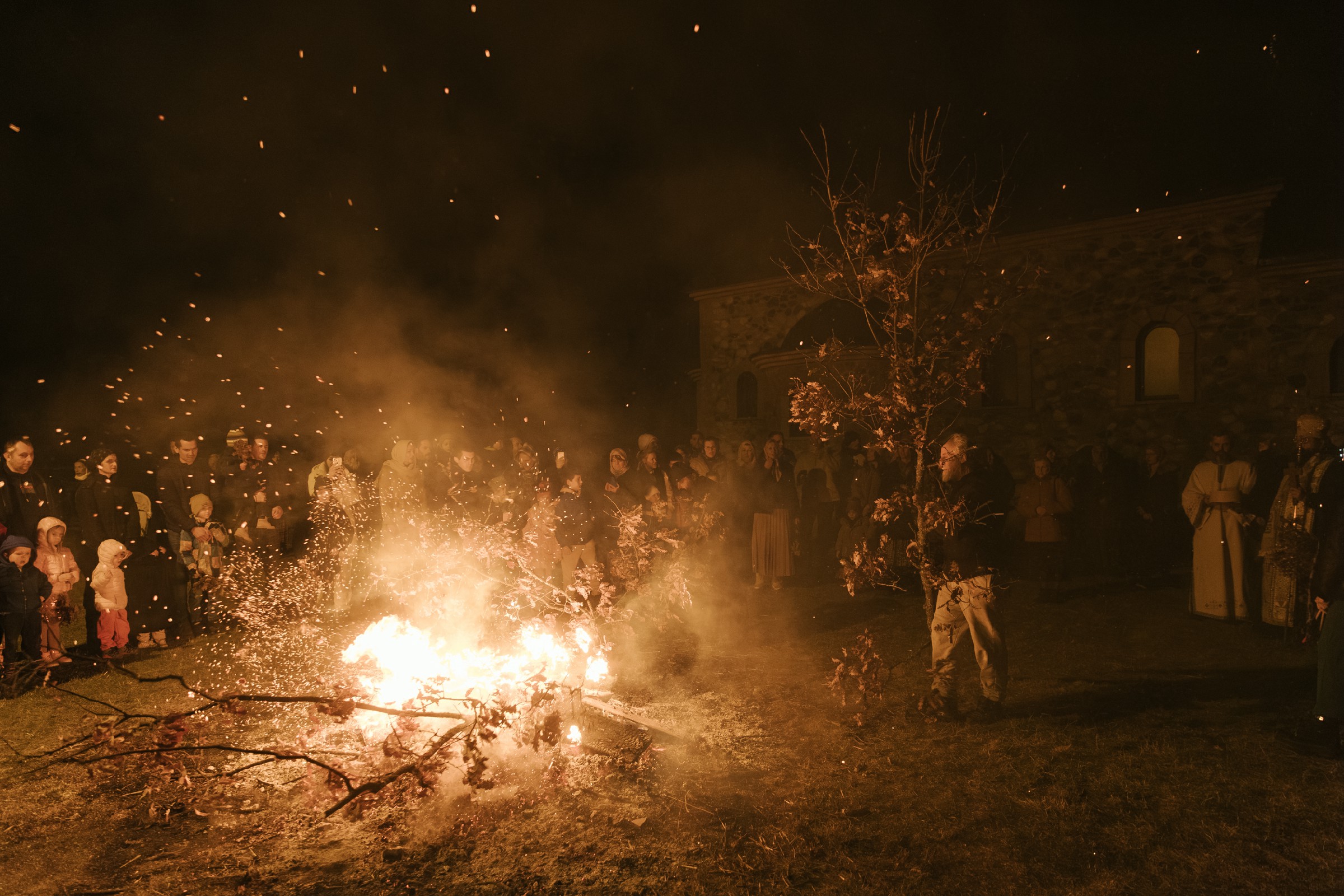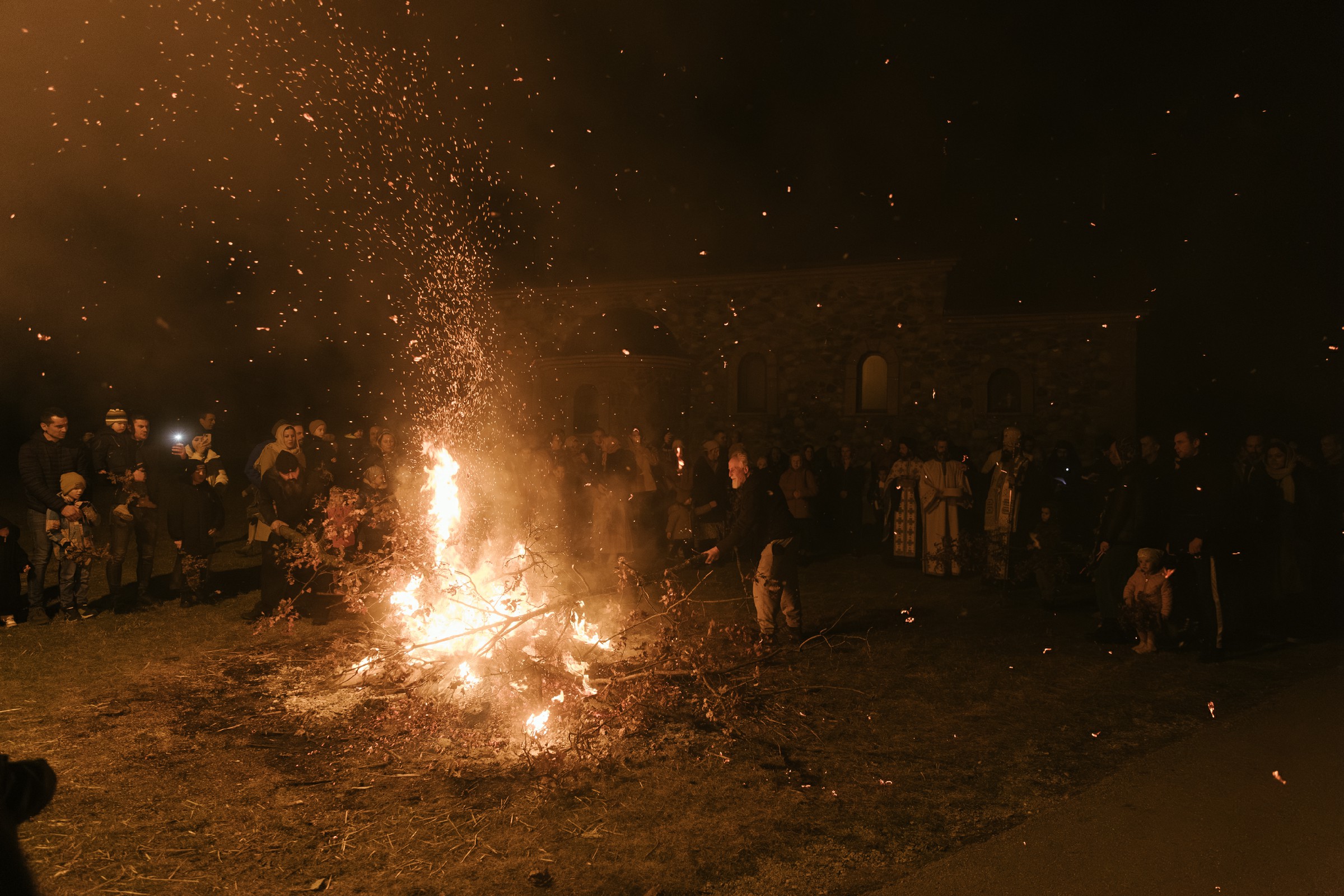 Након поучног слова Владика је обавио чин освећења бадњака. Уследило је налагање бадњака уз радосно појање божићне песме „Ој бадњаче, бадњаче“. Празнично славље је настављено у манастирској трпезарији, где је, по старом српском обичају, обављено уношење бадњака и сламе у дом, уз радосно појање монаштва и верног народа. Уследила је трпеза љубави за све присутне коју је приредило братство манастира.