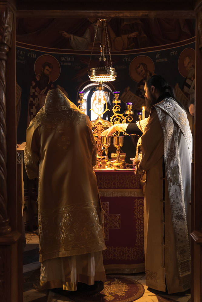 Сутрадан, на сам празник Рођења Христовог, у 5.00 часова, богослужење је започело Великим повечерјем. У наставку је служена Света Архијерејска Литургија којом је началствовао Његово Преосвештенство Епископ рашко-призренски у егзилу Г.Г. Ксенофонт. Епископу Ксенофонту су саслуживали: протосинђел Доситеј, протосинђел Платон, јеромонах Леонтије, јерођакон Михаило и јерођакон Георгије. Светој Литургији је присуствовало око 250 верника. Многи од њих сјединили су се са Господом кроз Свето Причешће.