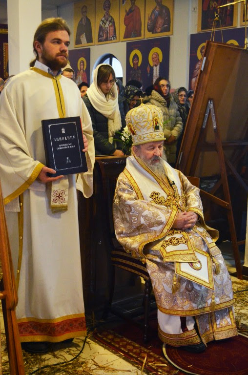 Његовом Преосвештенству су саслуживали свештеномонаси, свештеници и свештенођакони Епархије.