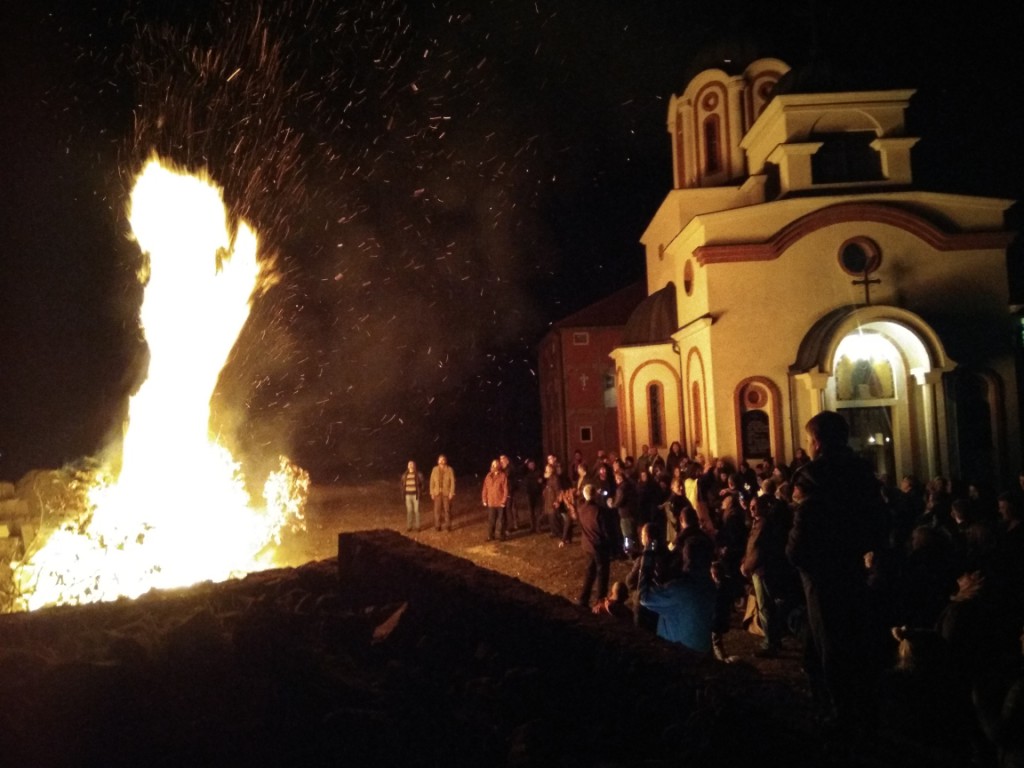 Након поучног слова Владика је обавио чин освећења бадњака. Уследило је налагање бадњака уз радосно појање божићне песме „Ој бадњаче, бадњаче“. Празнично славље је настављено у манастирској трпезарији, где је, по старом српском обичају, обављено уношење бадњака и сламе у дом, уз радосно појање монаштва и верног народа. Уследила је трпеза љубави за све присутне коју је приредило братство манастира.