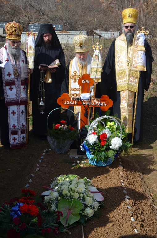 Сваки долазак на гроб, браћо и сестре, јесте једна велика школа, једна велика поука свима нама који се овде сабирамо и на гробља долазимо. Јер, наши драги покојници, они нам у ствари данас одржавају ту лекцију тиме што се окупљамо око њиховога гроба. Они нам поручују да је овај живот пролазан, да је све што је на овоме свету пролазно и ништавно а једино што је потребно то је трудити се за живот вечни. Господ је рекао: „Ко верује у Мене ако и умре живеће!“ Наш отац Јован је веровао у Господа, своју веру је потврђивао и речима и делима и животом и својим упокојењем. Он је тиме доказао и показао да је човек вере и као таквоме, ми дубоко верујемо да је Господу угодио и да ће Господ према њему показати своју велику милост и примити га као свога вернога слугу у своје рајске одаје.