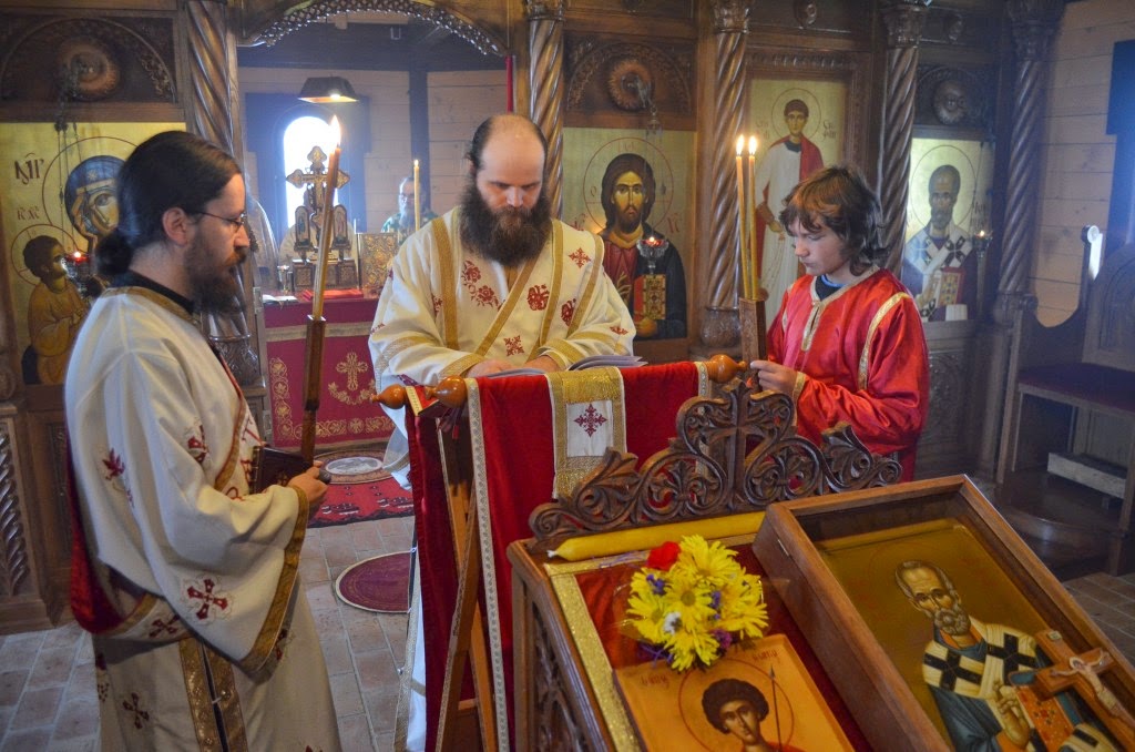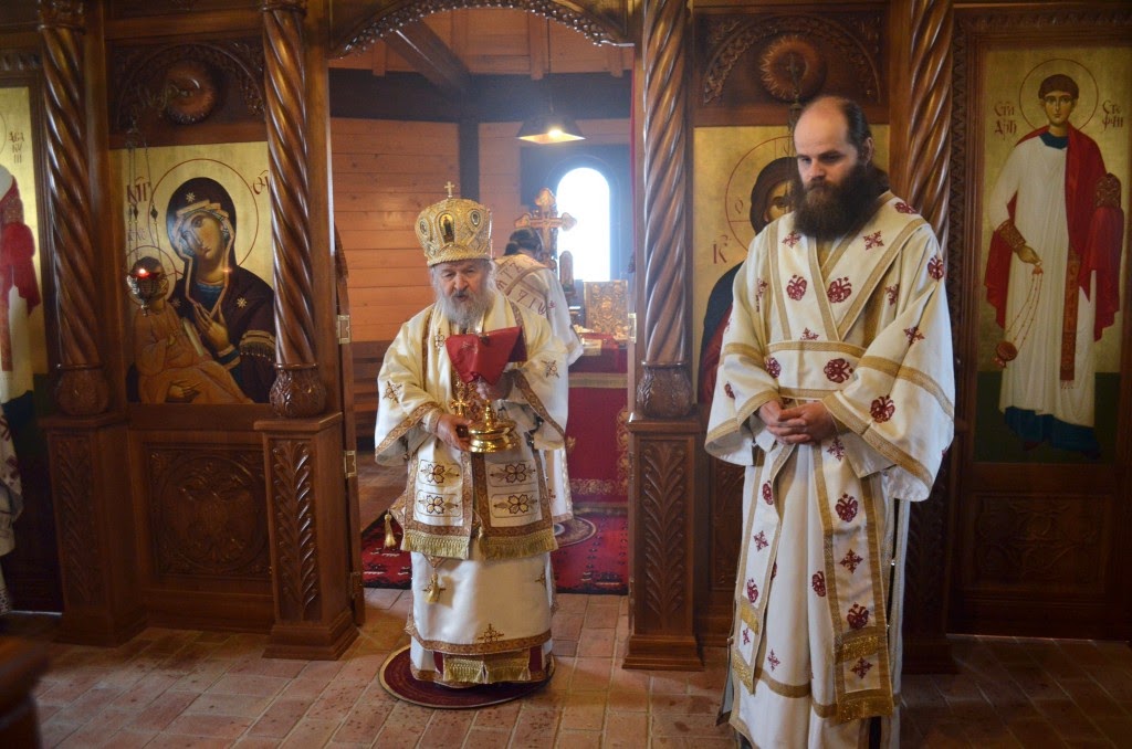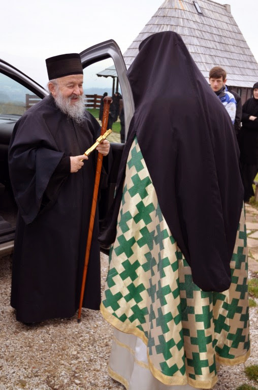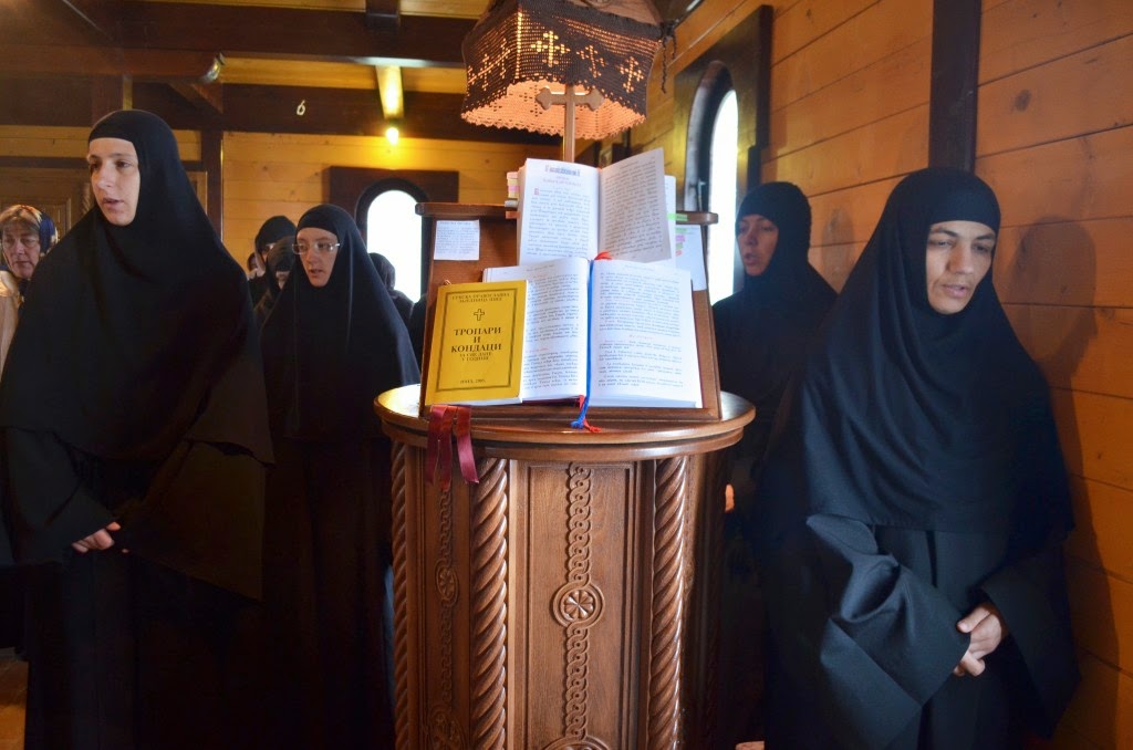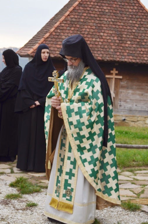 „Нека је срећна слава данашњим свечарима браћо и сестре, оцу архимандриту Николају, оцу Дамјану и сестрама које данас славе и свима вама који данас славите светог Георгија као крсну славу а и свима који сте дошли на ову нашу заједничку молитву у овај дивни Божији храм да се Богу помолимо и угодника Божијег прославимо јер је он то заслужио, јер га је Бог прославио и на небу и на земљи.“