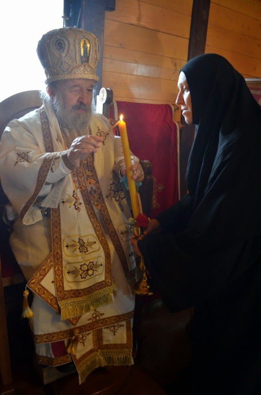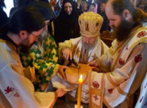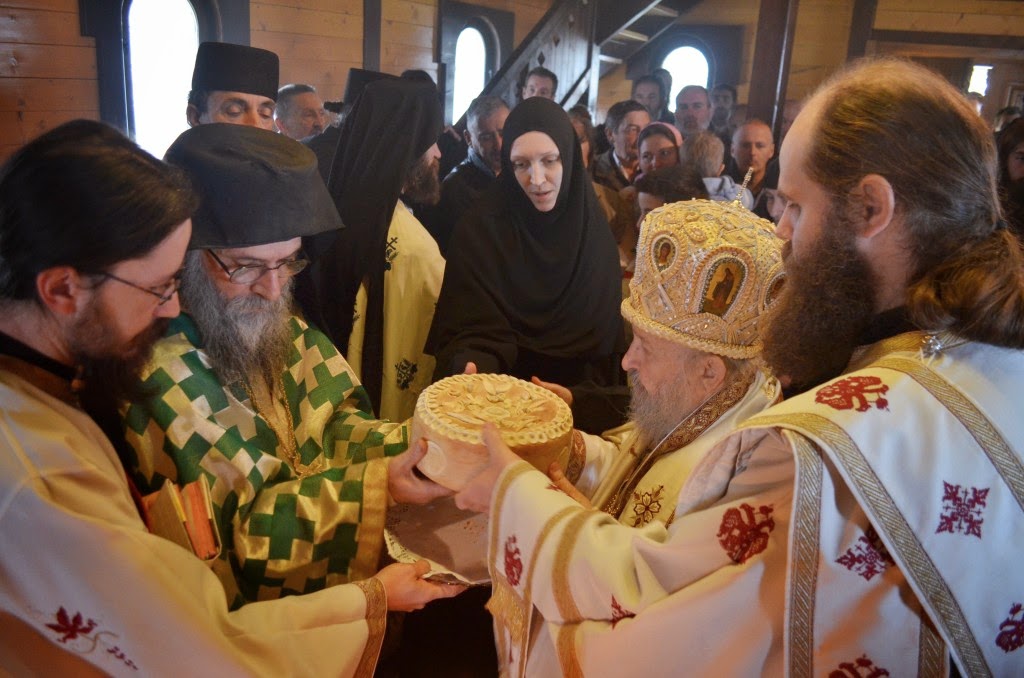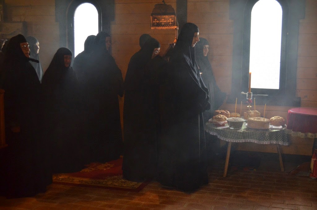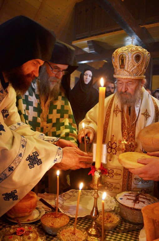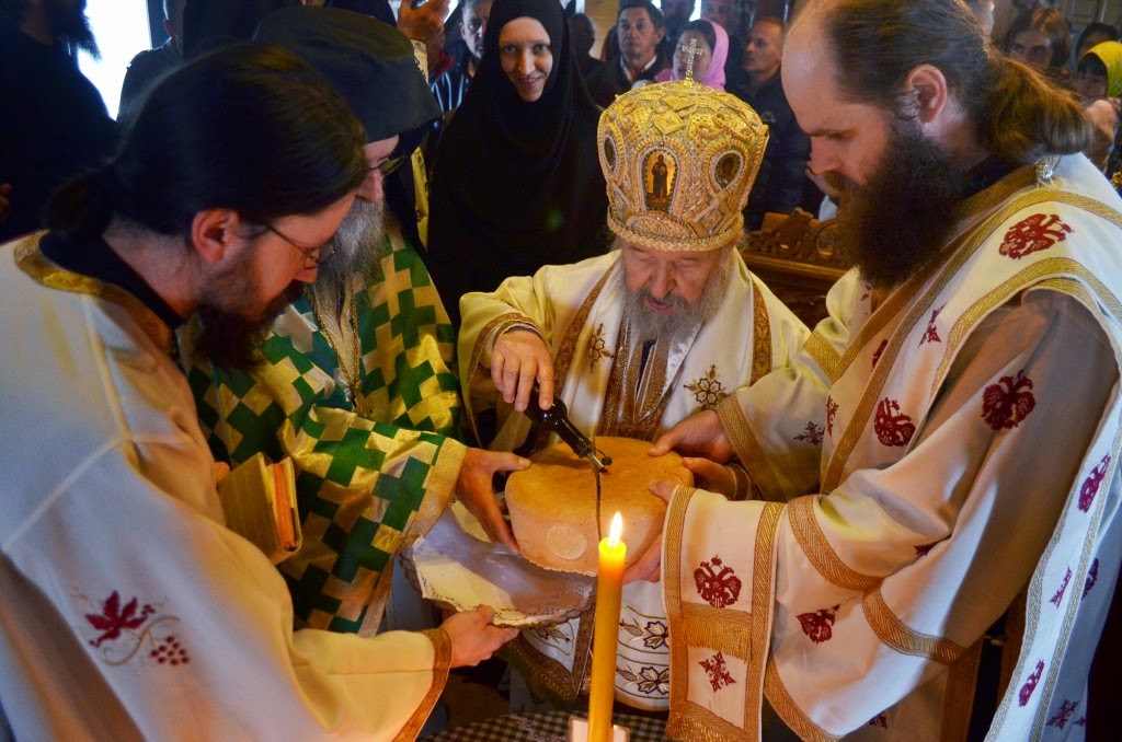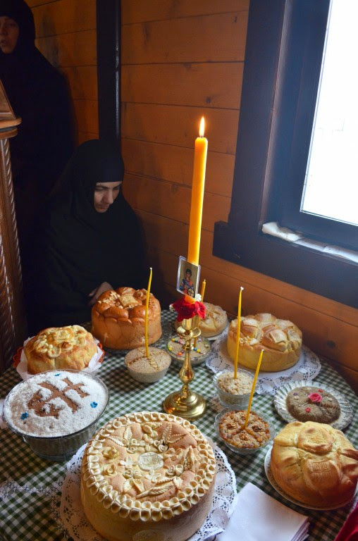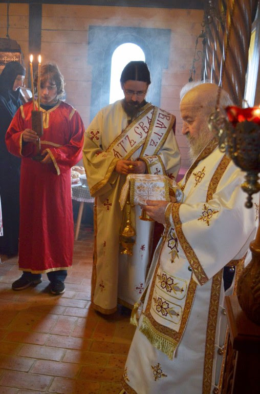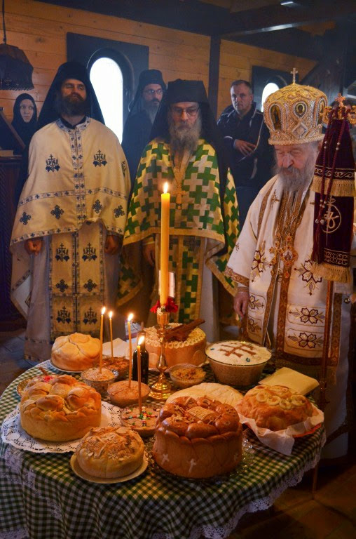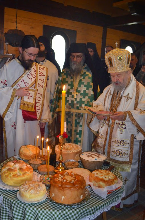 Владика Артемије је извршио чин резања славских колача и благосиљања кољива, које су у част светог Георгија припремили: архимандрит Николај, јерођакон Дамјан, монахиња Јована Јеремић, као и многи верници.