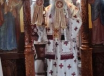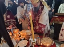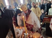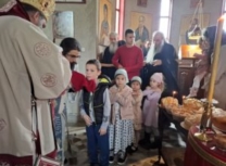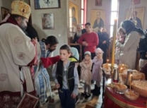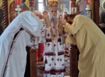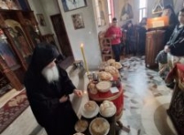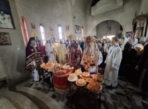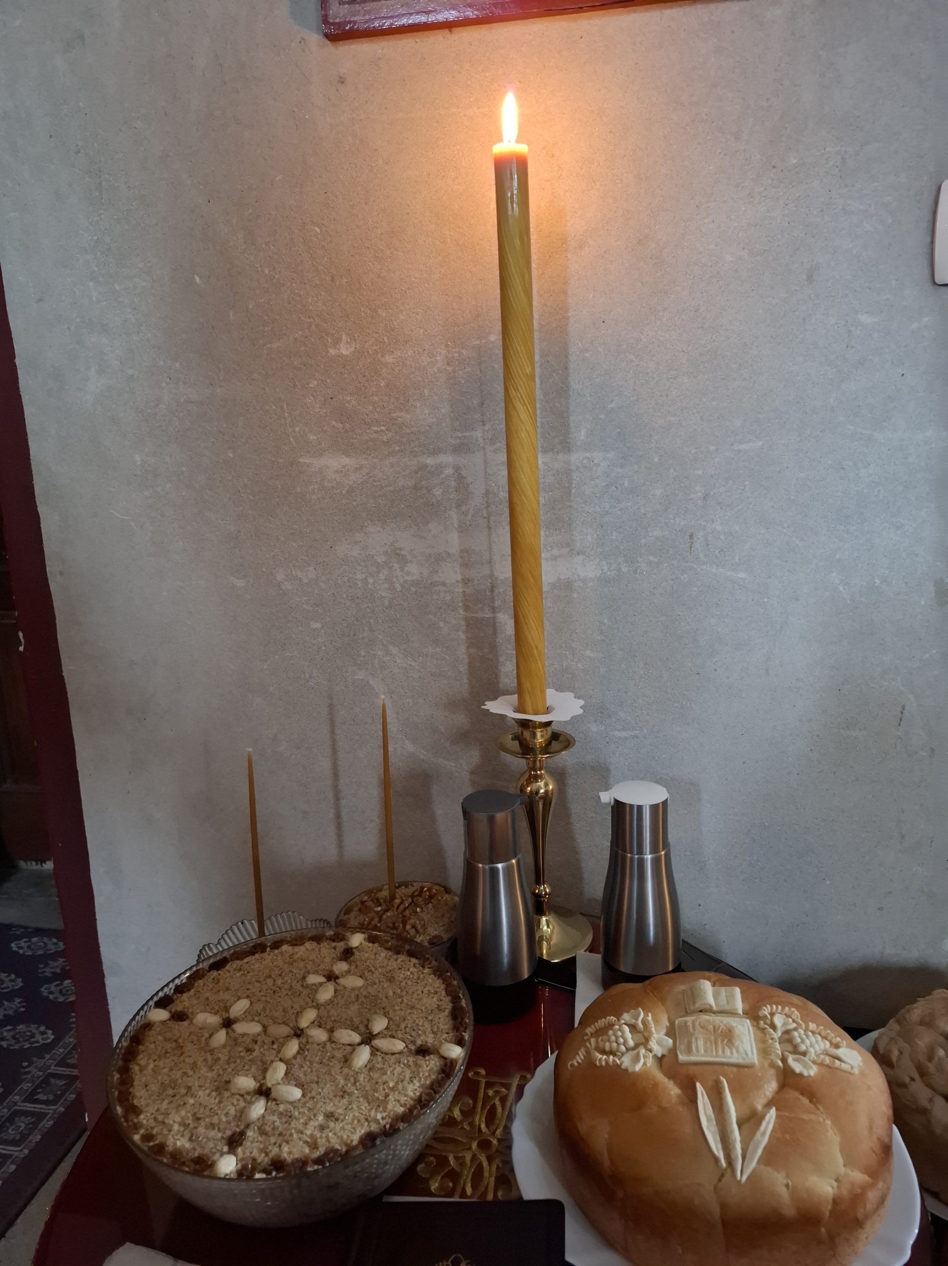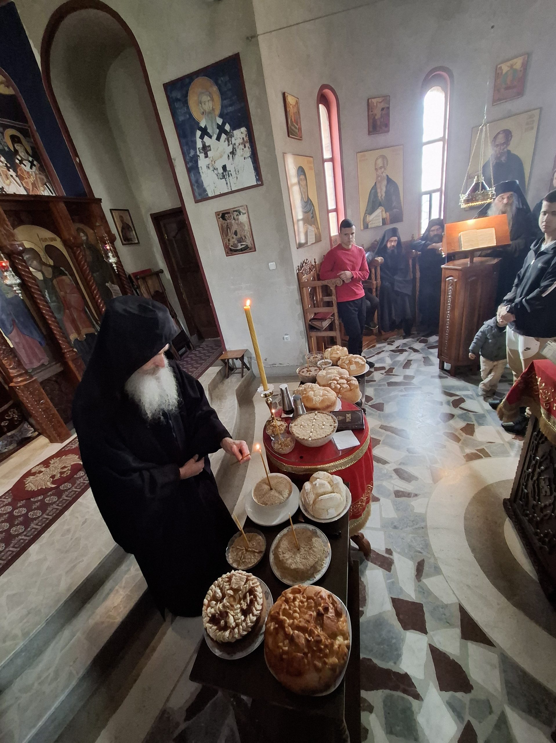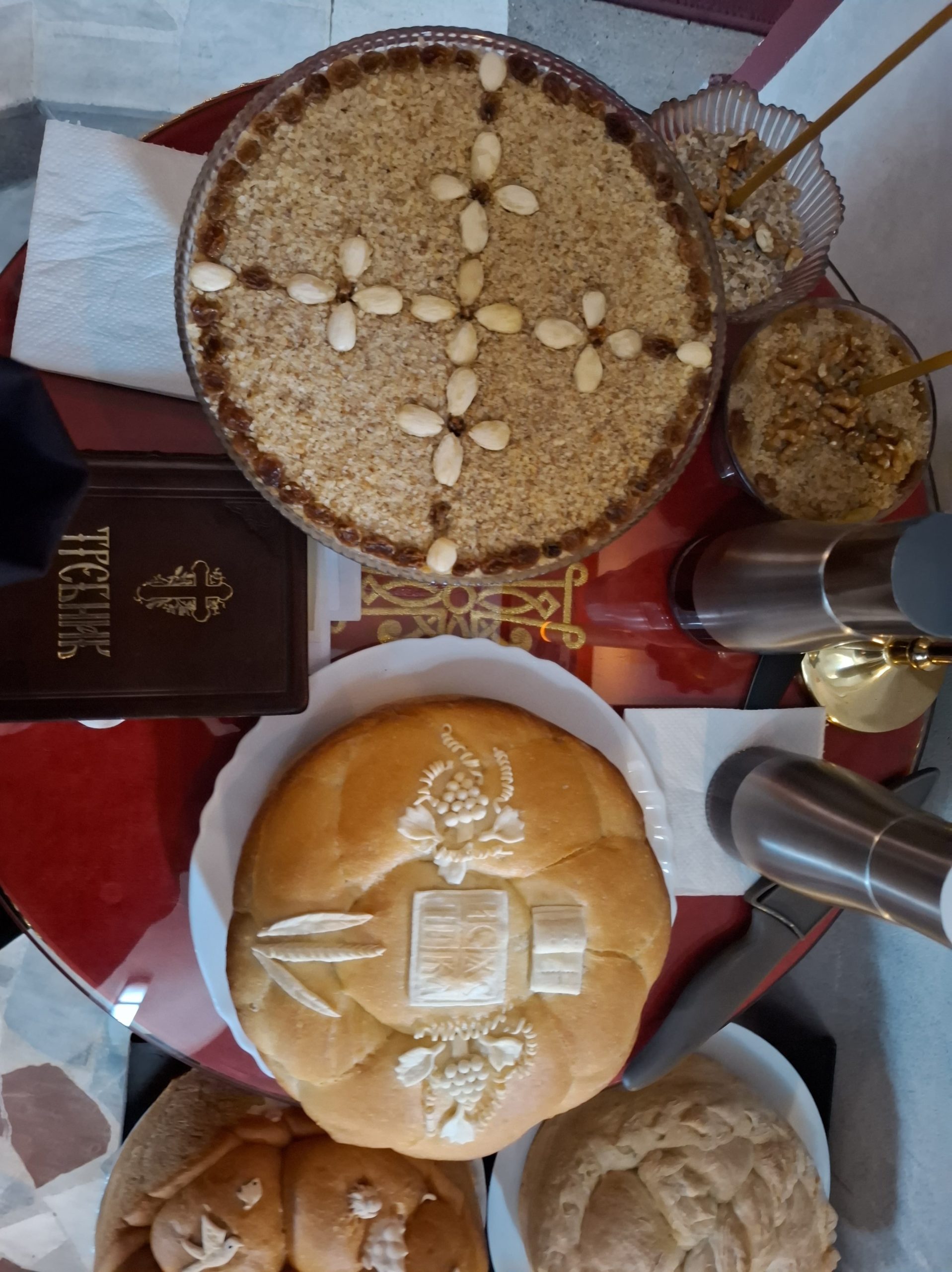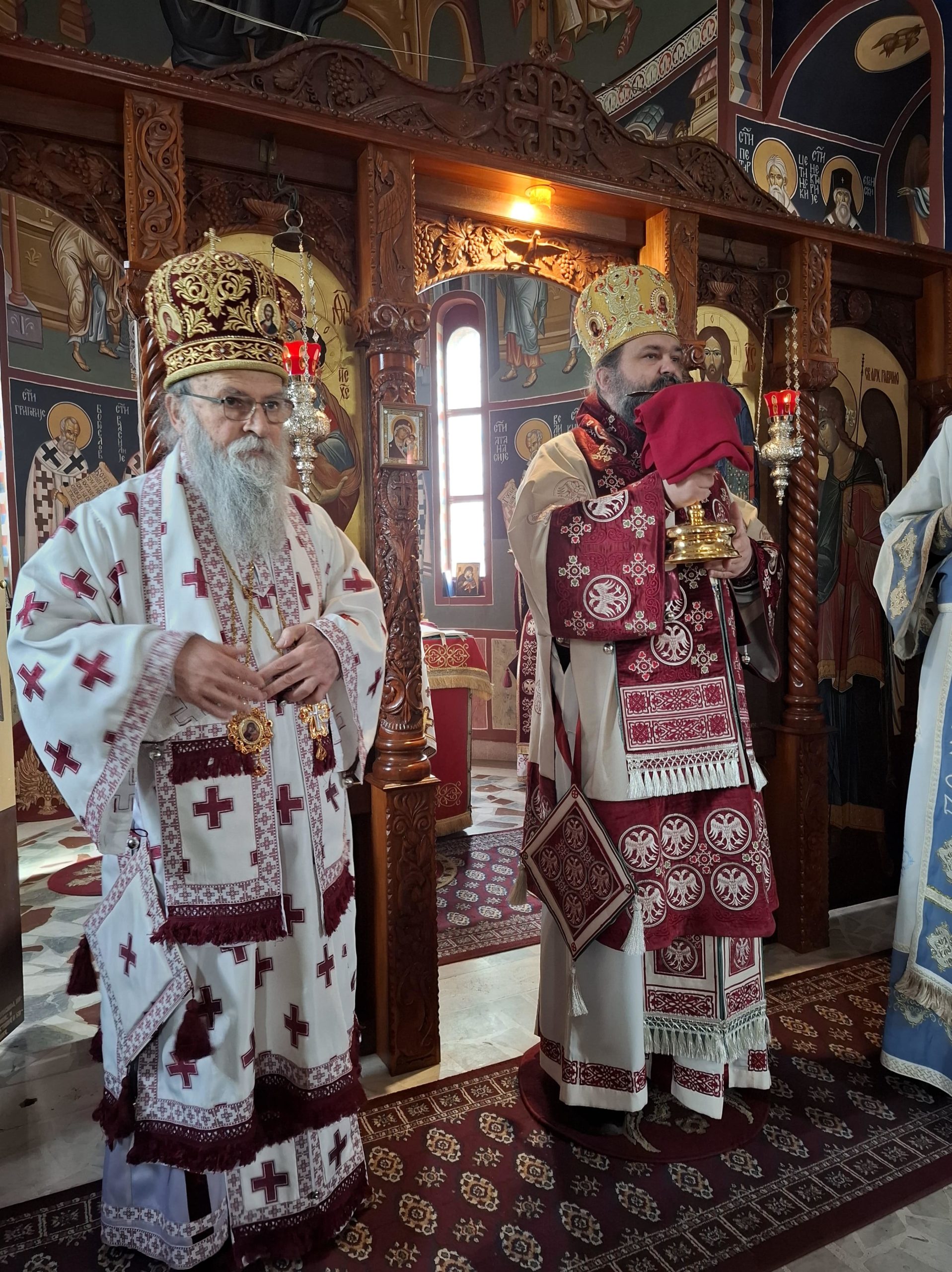 Након Свете Литургије Владика Ксенофонт обавио је чин резања славског колача и благосиљања жита које је у част Светог великомученика Георгија принео Владика Николај.