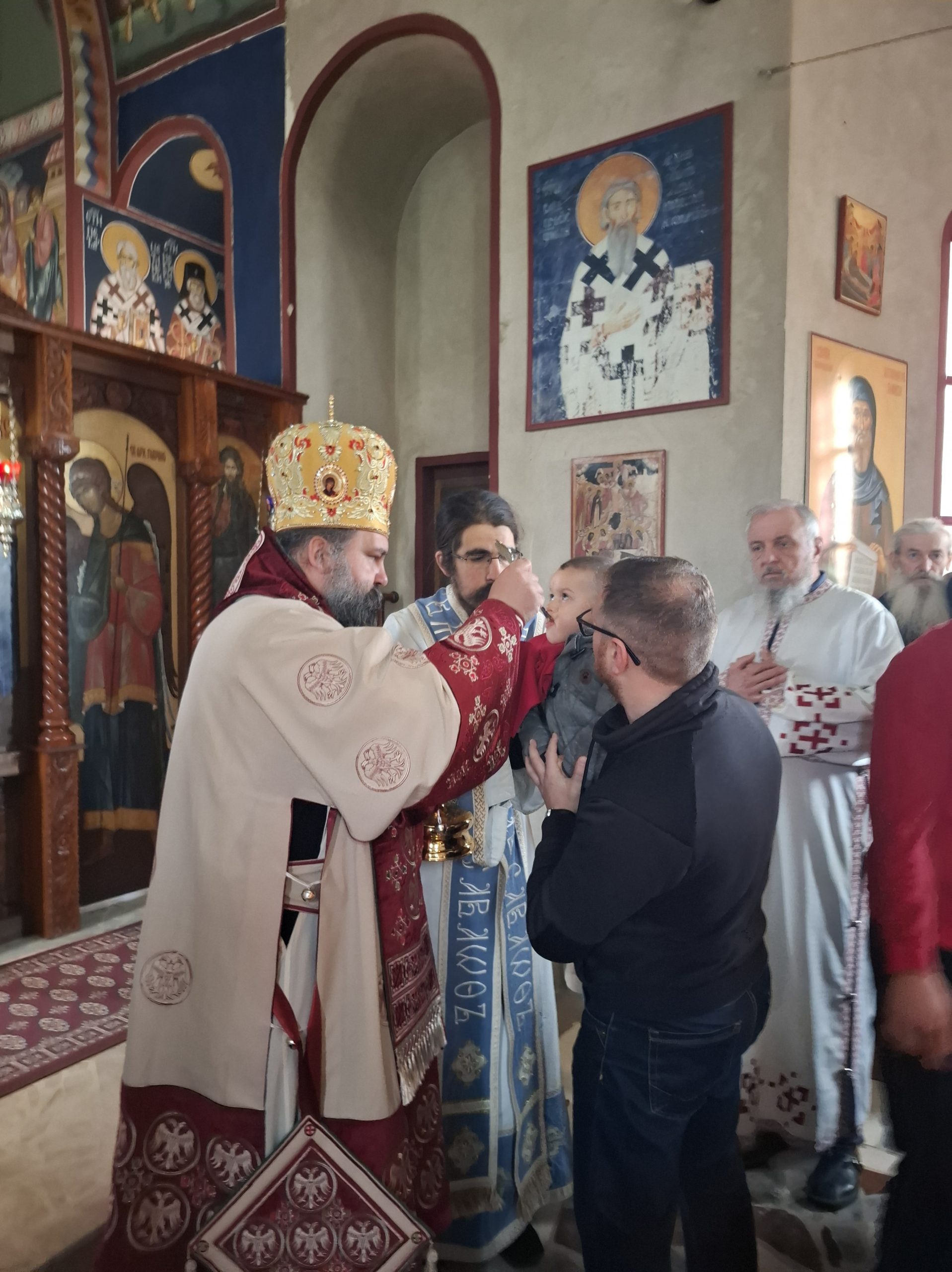„Лицем у лице Богочовек Христос и бесомучан човек са хиљадама демона у себи… Каква је, дакле, величина и сила људска, шта све човек може у срце своје да прими, шта све може у срце људско да стане, и читав Бог и читав ђаво, дакле, не само један ђаво, него мноштво ђавола. Углавном, од нас зависи хоћемо ли на једну страну или другу страну. На нама је да изаберемо хоћемо ли путем спасења или путем пропасти, хоћемо ли путем вечног живота или вечне смрти,” беседио је Владика. Владика је говорио и о Светом великомученику Георгију и о Светим мученицима персијским који се тога дана славе.