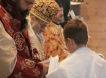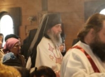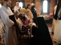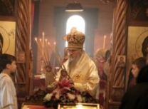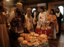 Након Свете Литургије Владика Ксенофонт је обавио чин резања славског колача и благосиљања жита које је у част светог великомученика Георгија принео Владика Николај.