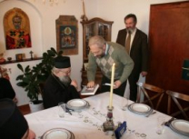 После срдачног дочека у дому брата Милоја, Владика је и сам у свом пребивалишту у Љуљацима, угостио групу монахиња из других Епархија које су желеле да празничну радост поделе са Владиком и од Њега добију благослов.