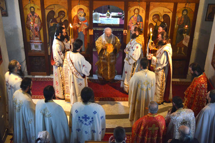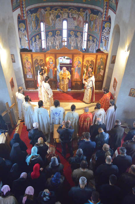 Његово Преосвештенство, Епископ рашко-призренски и косовско-метохијски у егзилу, г.г. Артемије служио је свету архијерејску Литургију, уз саслуживање петнаестак клирика наше Епархије. Хладно јутро у Љуљацима угрејала је духовна топлина и молитвена атмосфера у Љуљачкој цркви, као и поучна и укрепљујућа беседа Епископа.