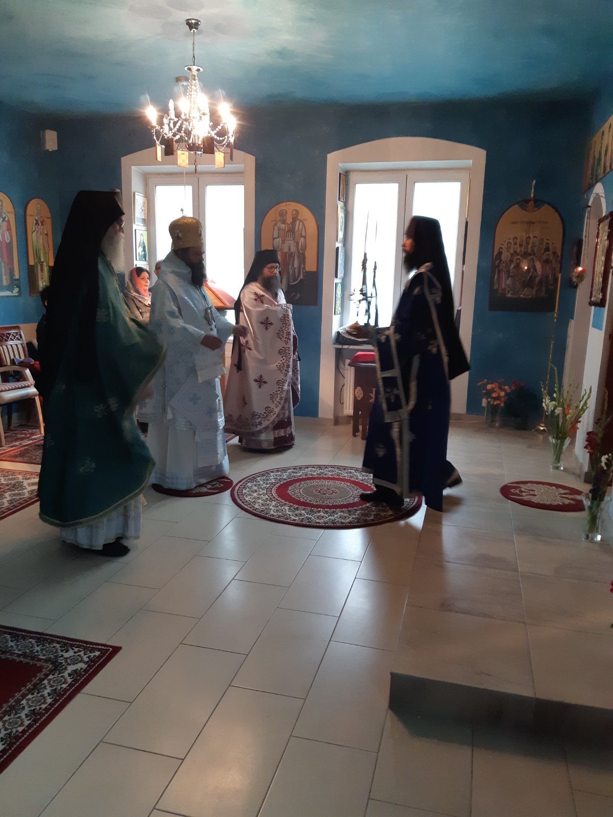 После избора за новог архијереја Епархије рашко-призренске у Егзилу, Епископ Ксенофонт је први пут био у канонској посети манастиру Свих српских светитеља у Гринбаху у Аустрији у периоду од петка 6. августа до понедељка 9. августа и у Недељу 7. по Духовдану служио у манастиру архијерејску Литургију. На Литургији су архијереју саслуживали настојатељ манастира, протосинђел Димитрије (Ђоковић), протосинђел Јов (Кадило) и јерођакон Георгије (Радојичић). Будући да је лето време годишњих одмора и да већина православног народа одмор проводи у отаџбини, Литургији је присуствовало око четрдесет светосаваца, а Светим Христовим Тајнама причестила су се окупљена деца.