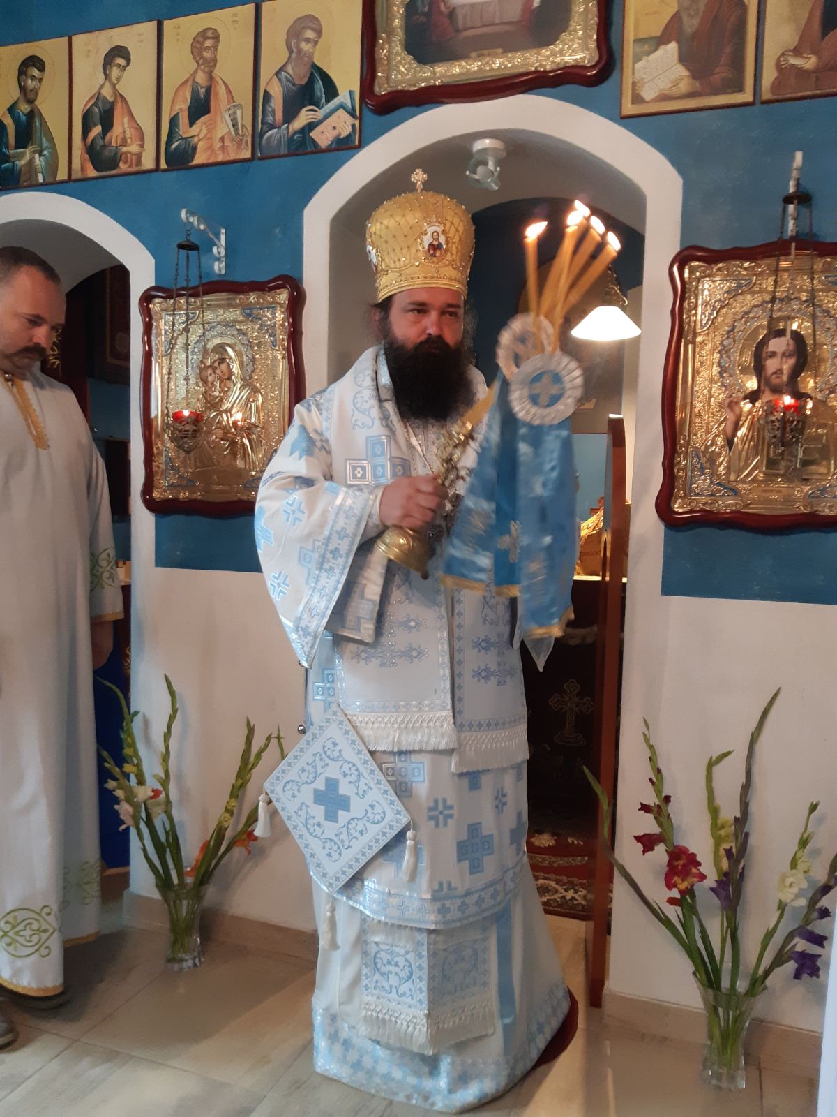После беседе Владика је још додао: „Ево, прва нам је ово Литургија да сам дошао као ваш архијереј, да сам дошао у овом чину кога сам удостојен по благослову и завјештању нашега светога Старца који се упокојио – ево ишчекујемо и прву годишњицу његовог упокојења – а по избору, дакле, моје браће хорепископа, да настављам да вам пастирствујем, надам се барем малим дијелом онако као што је пастирствовао наш свети Старац. Знали сте га и упознали сте га и знате како је, оним својим малим корацима као омалени човјек корачао, али нас је чврсто и непоколебљиво водио оним путем који води у Царство Небеско.