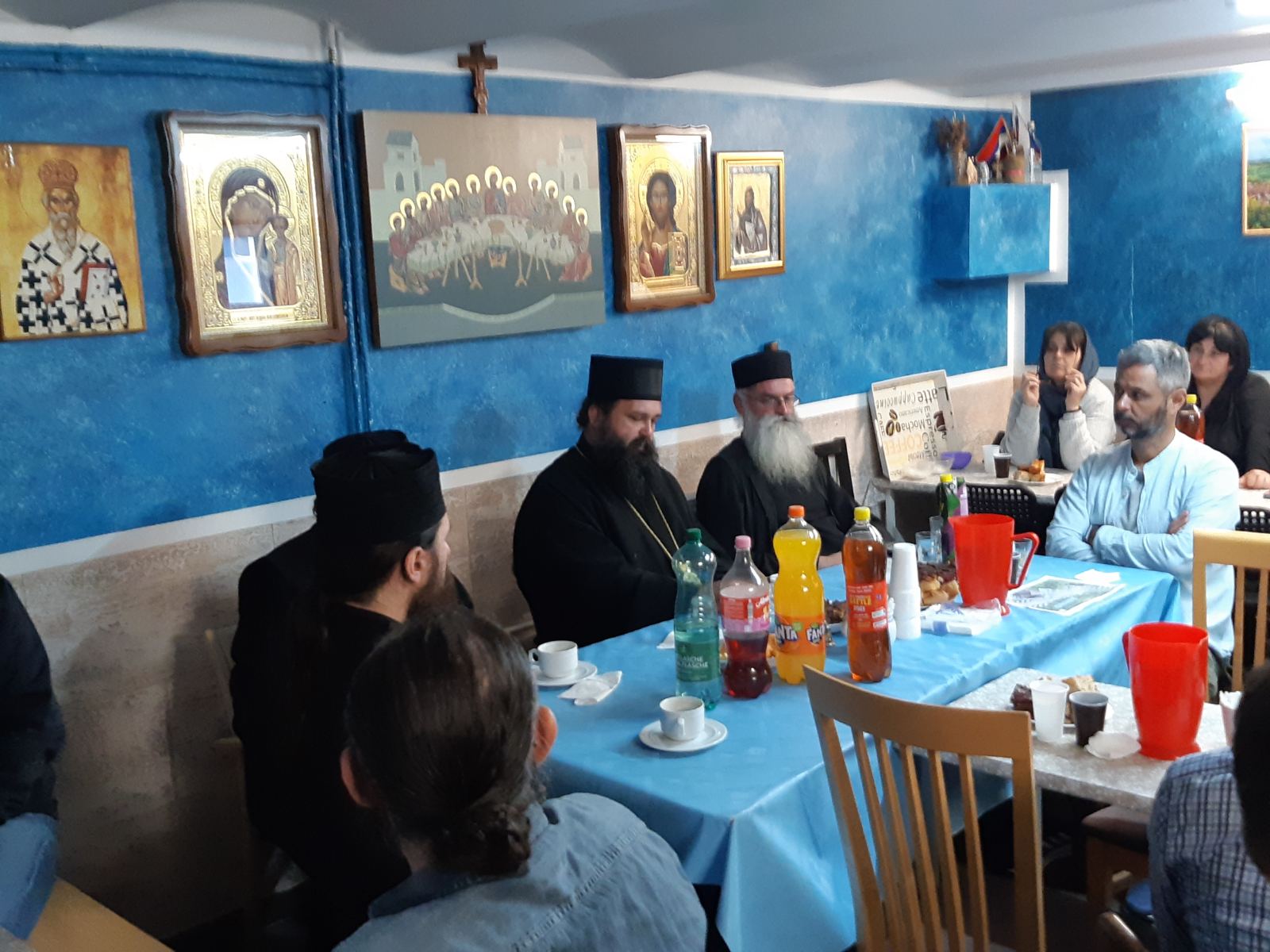 После Литургије је уприличена трпеза љубави током које је Владика одговарао на питања верника везана углавном за актуелну ситуацију у свету.