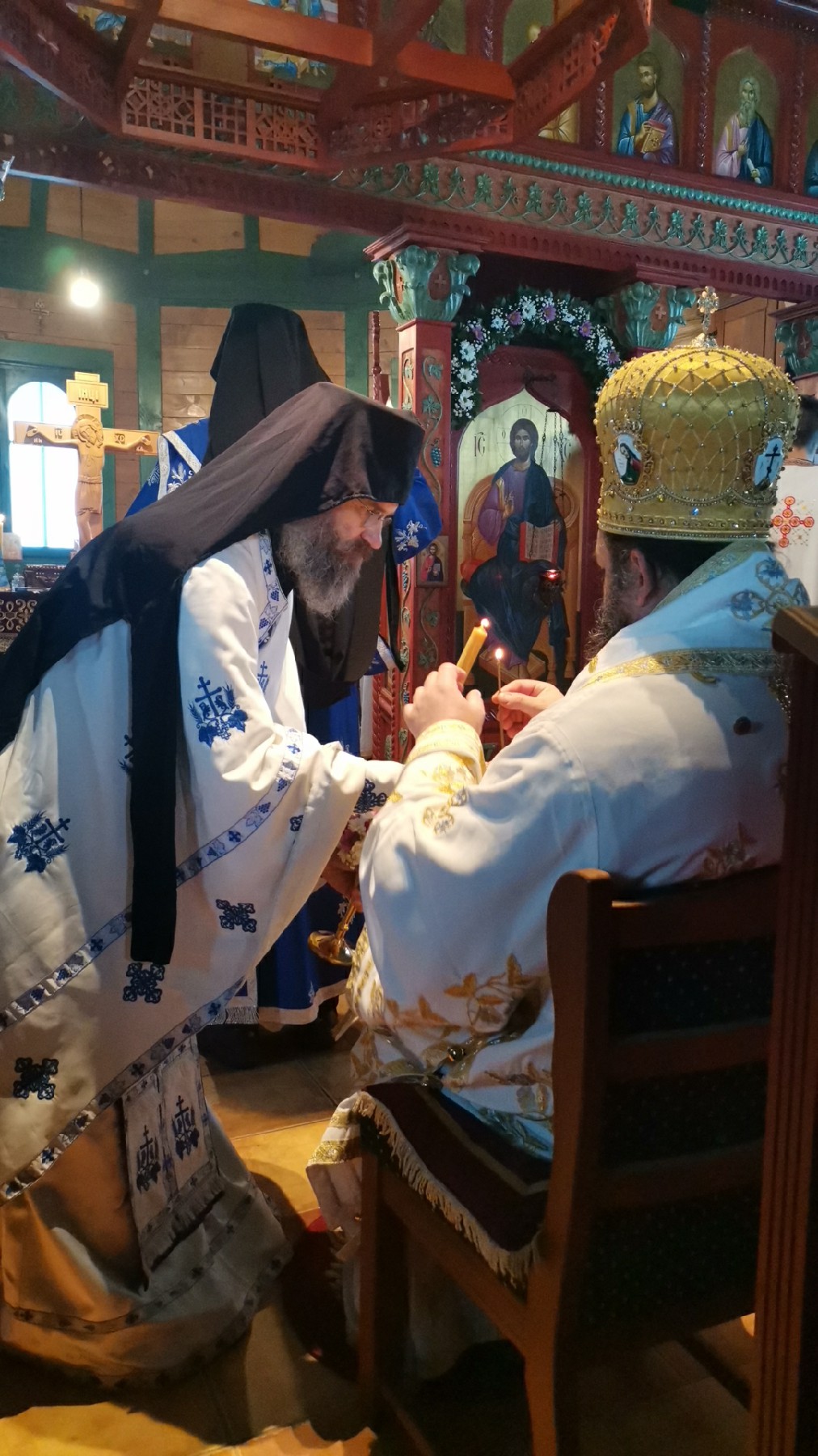 Након Свете Литургије Владика Ксенофонт је обавио чин резања славског колача и благосиљања жита које је у част Светог апостола Андреја Првозваног принео протосинђел Агапит.