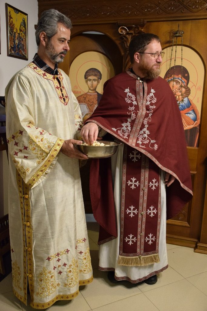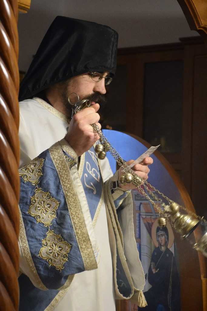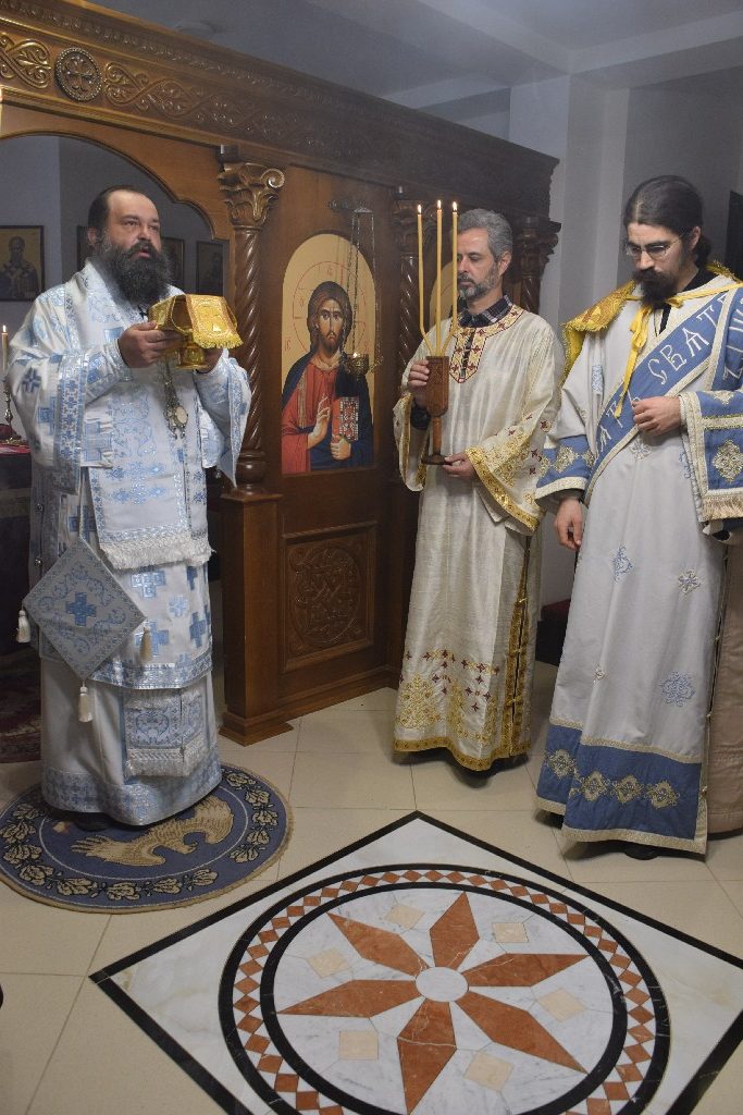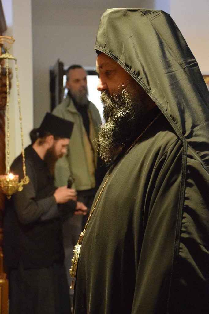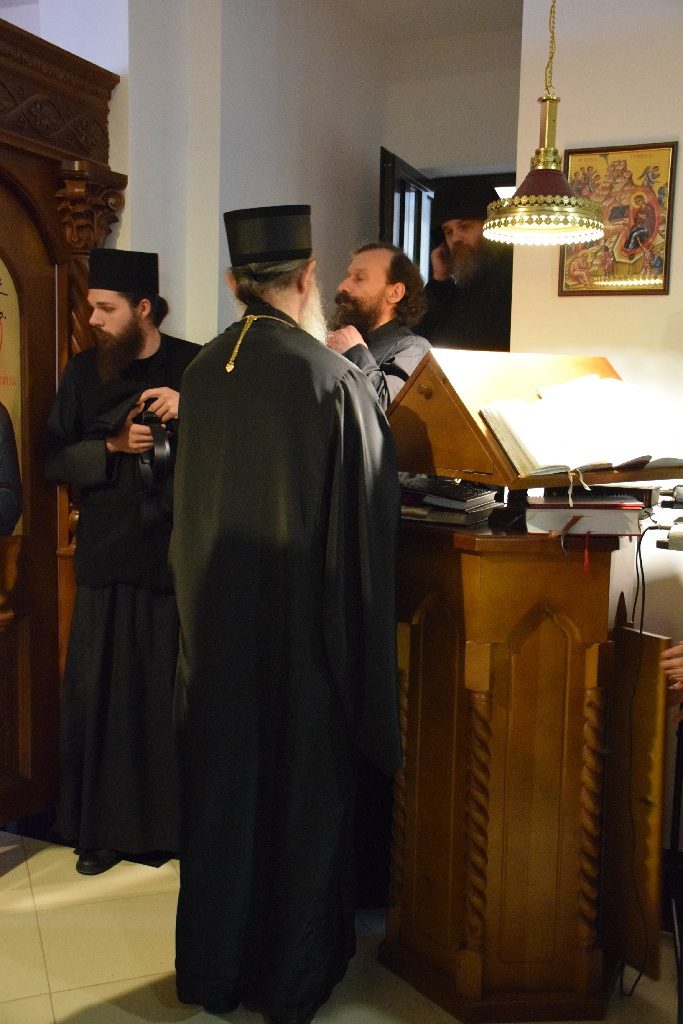 Пре почетка Литургије Владика Ксенофонт је благословио облачење подрасника искушенику манастира Преподобног Јустина Ћелијског у Барајеву Александру Живковићу.