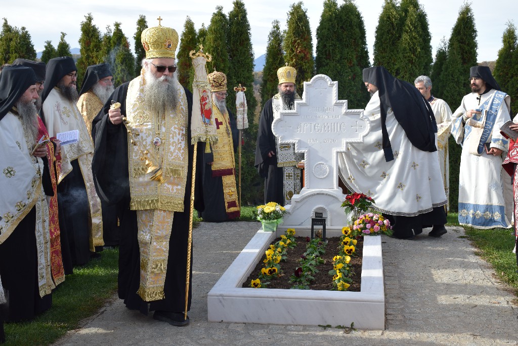 После Свете Литургије одслужен је парастос блаженопочившем Владики Артемију којим је началствовао Преосвећени Епископ Ксенофонт уз саслужење Преосвећених Хорепископа Николаја, Максима и Наума и више свештенослужитеља.