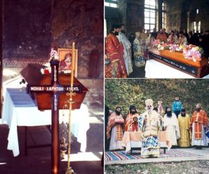 У периоду неизвесности, мученик се некима од братије и у сну јављао, говорећи да је пострадао. Тело је пронађено у августу 2000. године од стране Комисије за есхумацију тела несталих и киднапованих Срба. Недалеко од оца Харитона пронађена су и тела неколико Срба пострадалих у исто време.