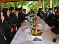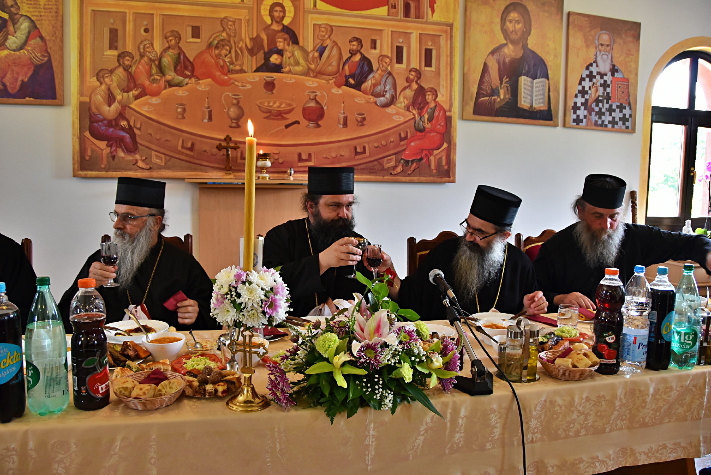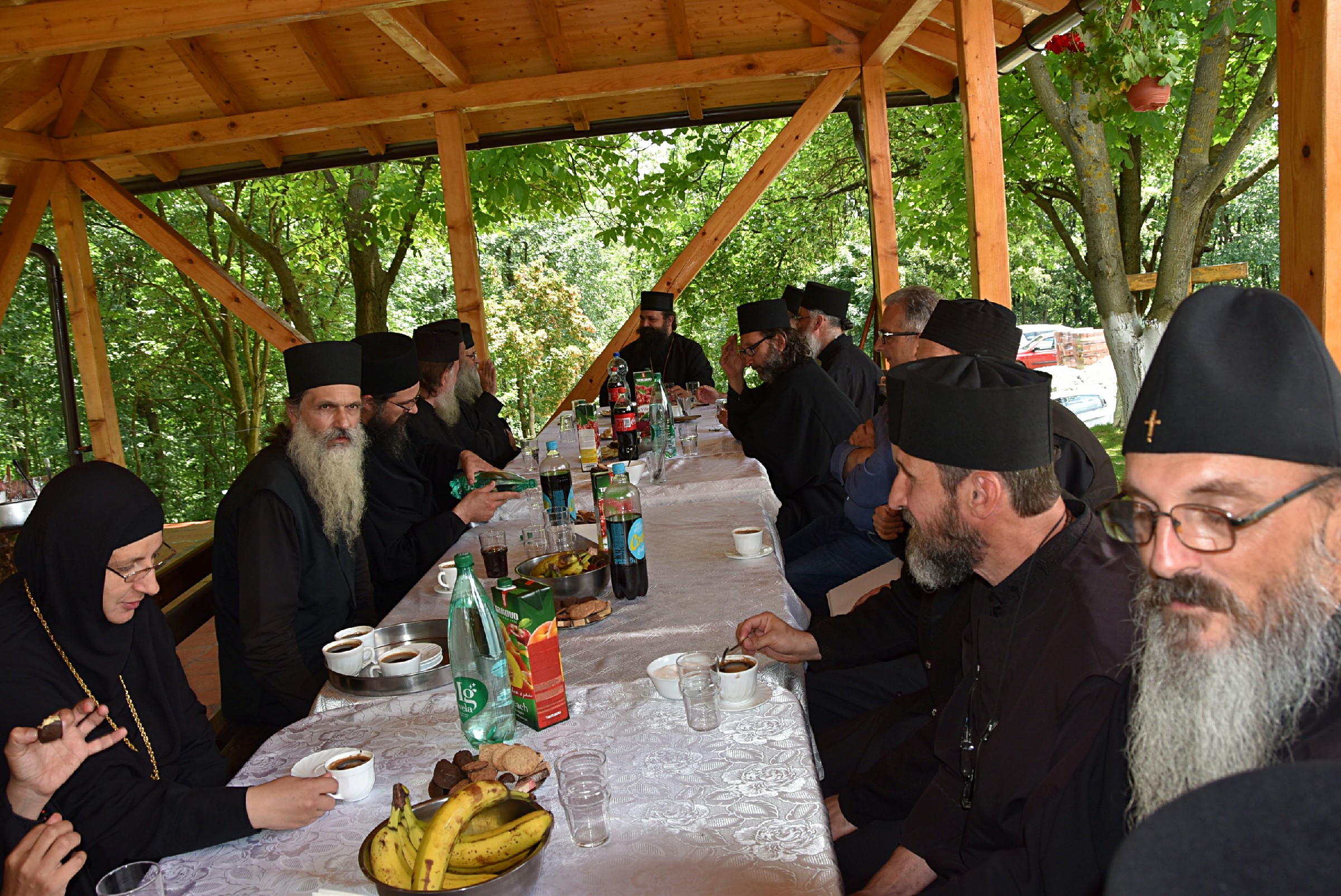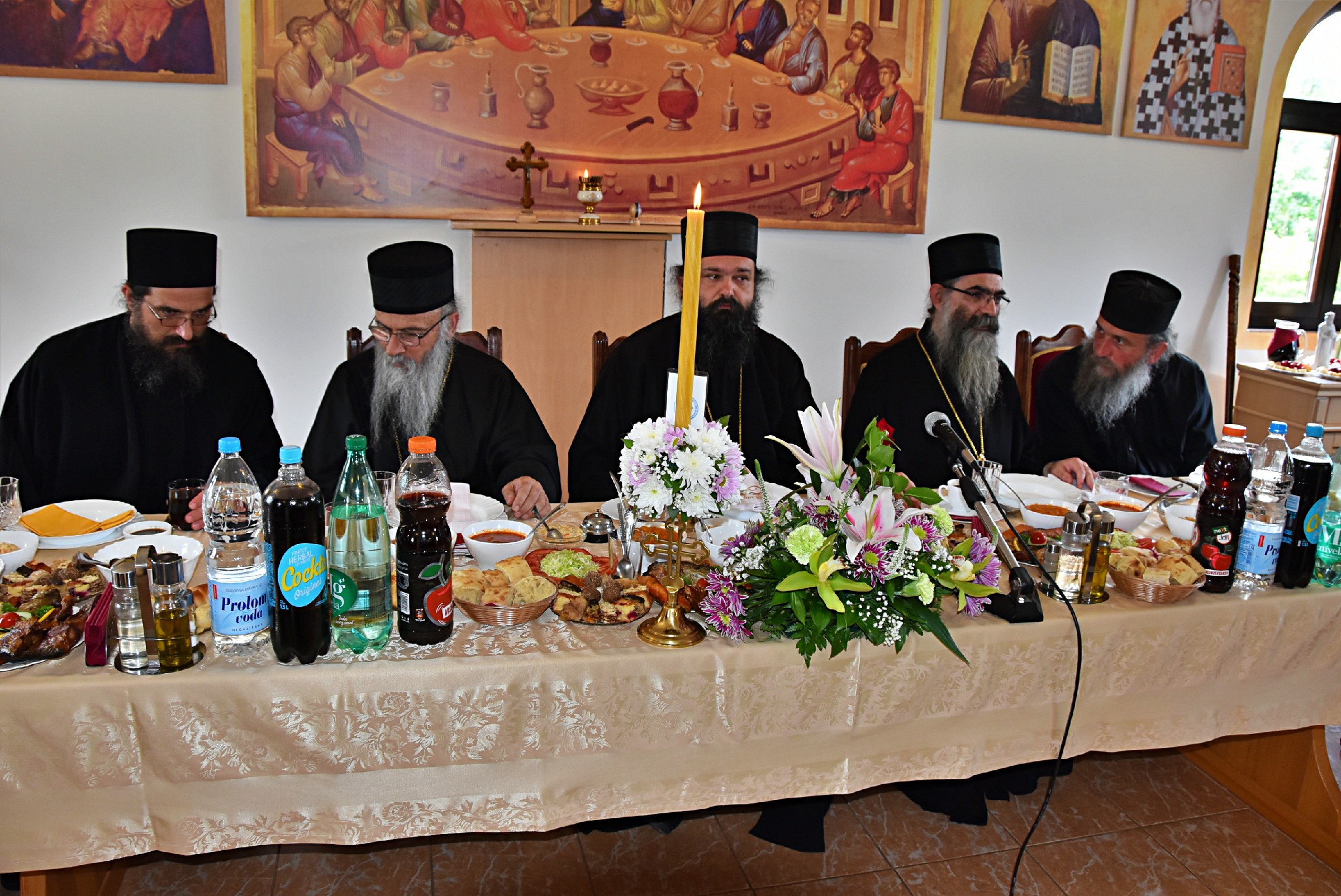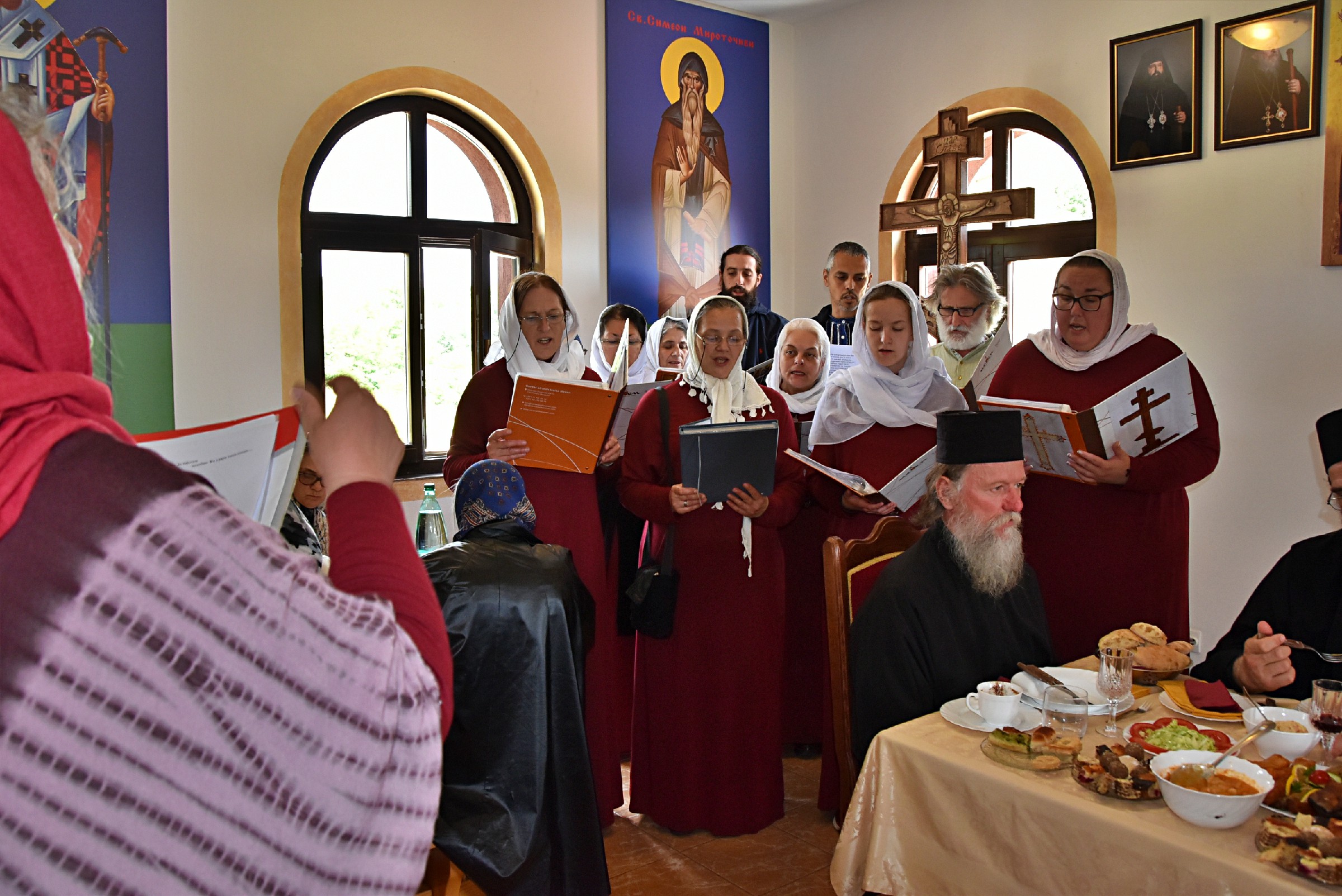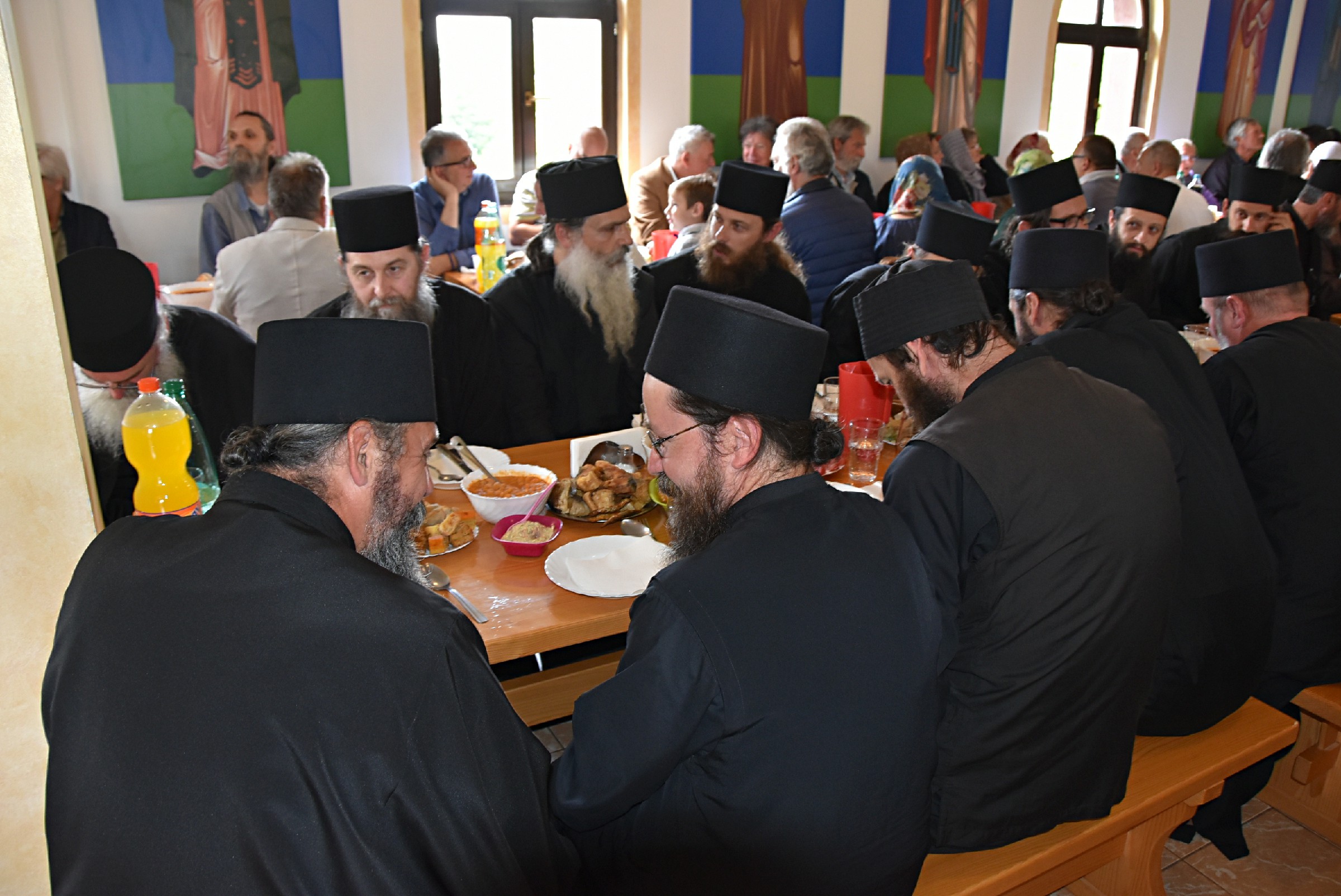 Празнично славље настављено је трпезом љубави током које је хор “Преподобни Јустин Ћелијски“ извео пригодни програм.