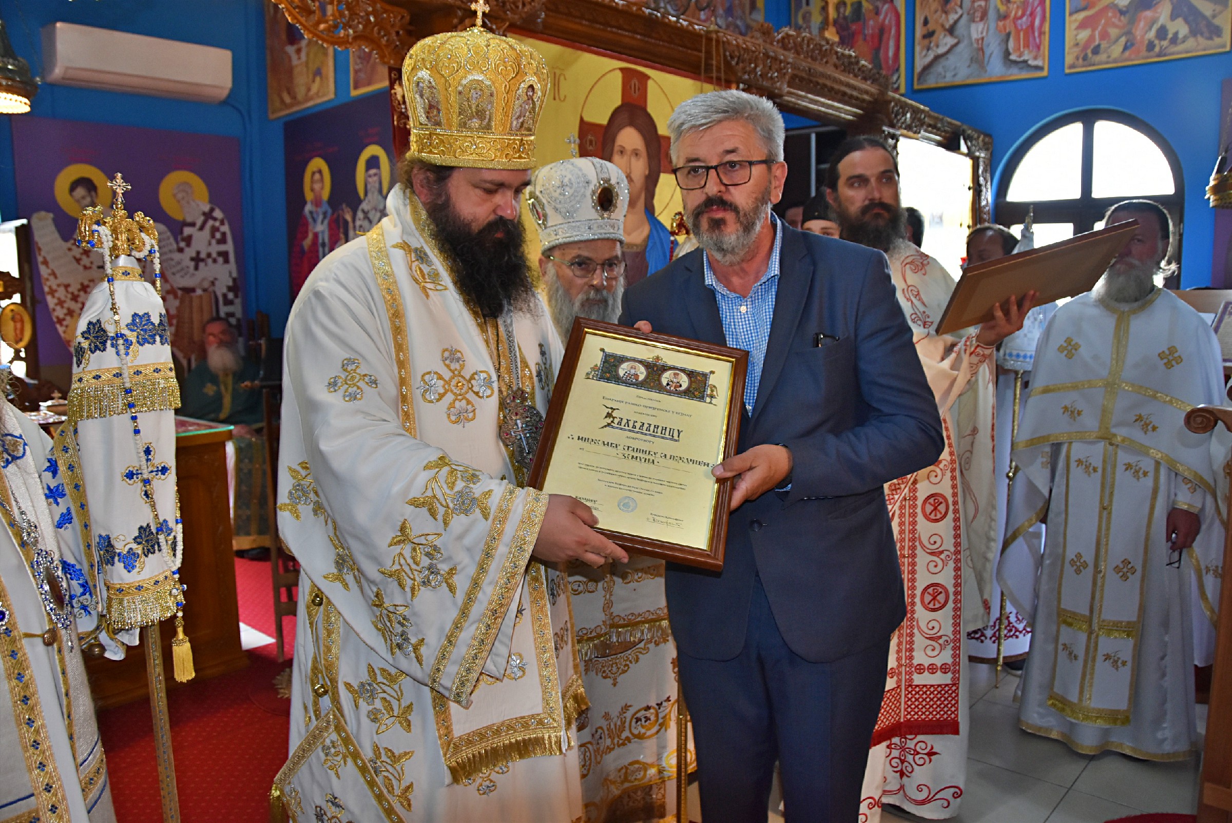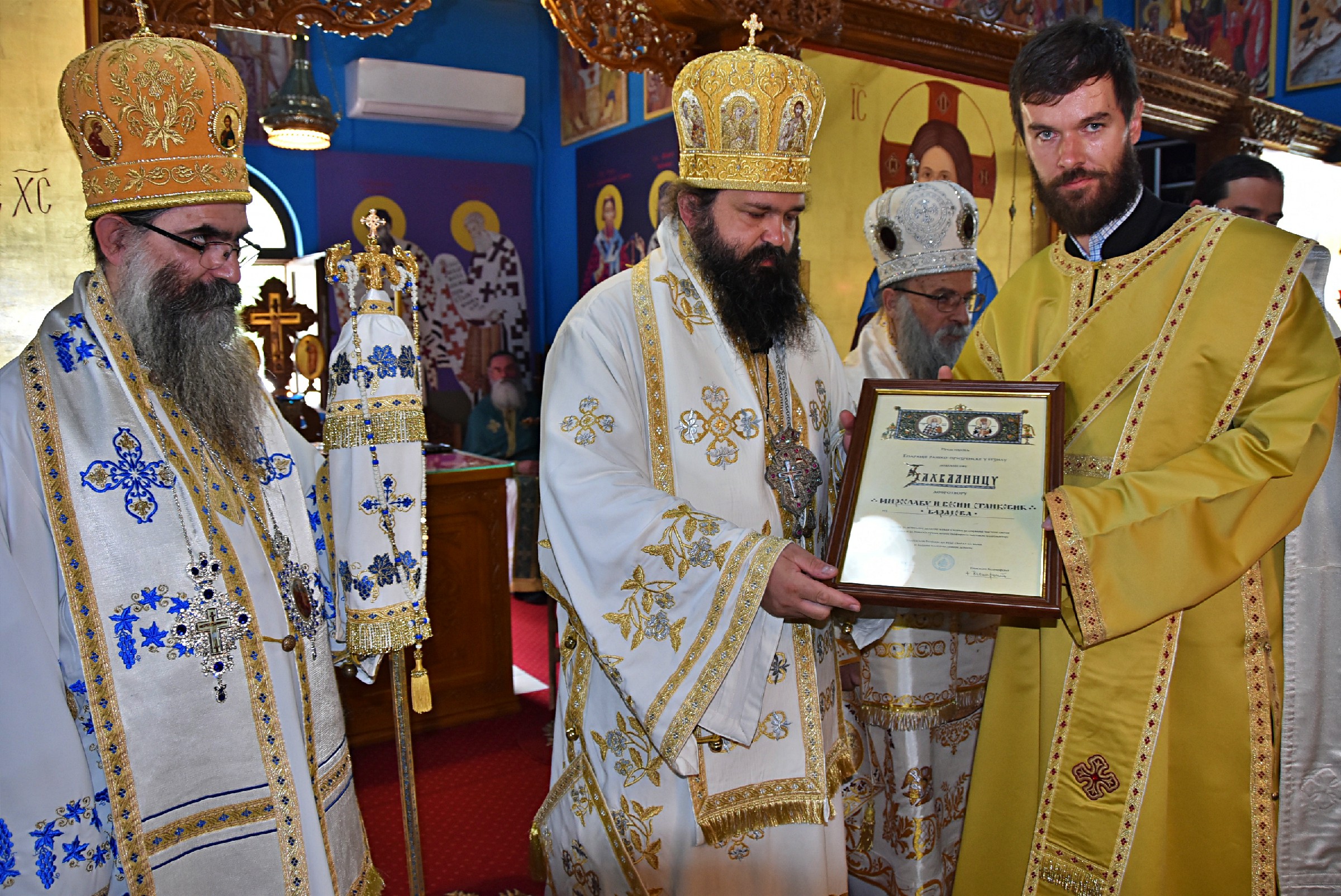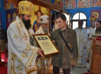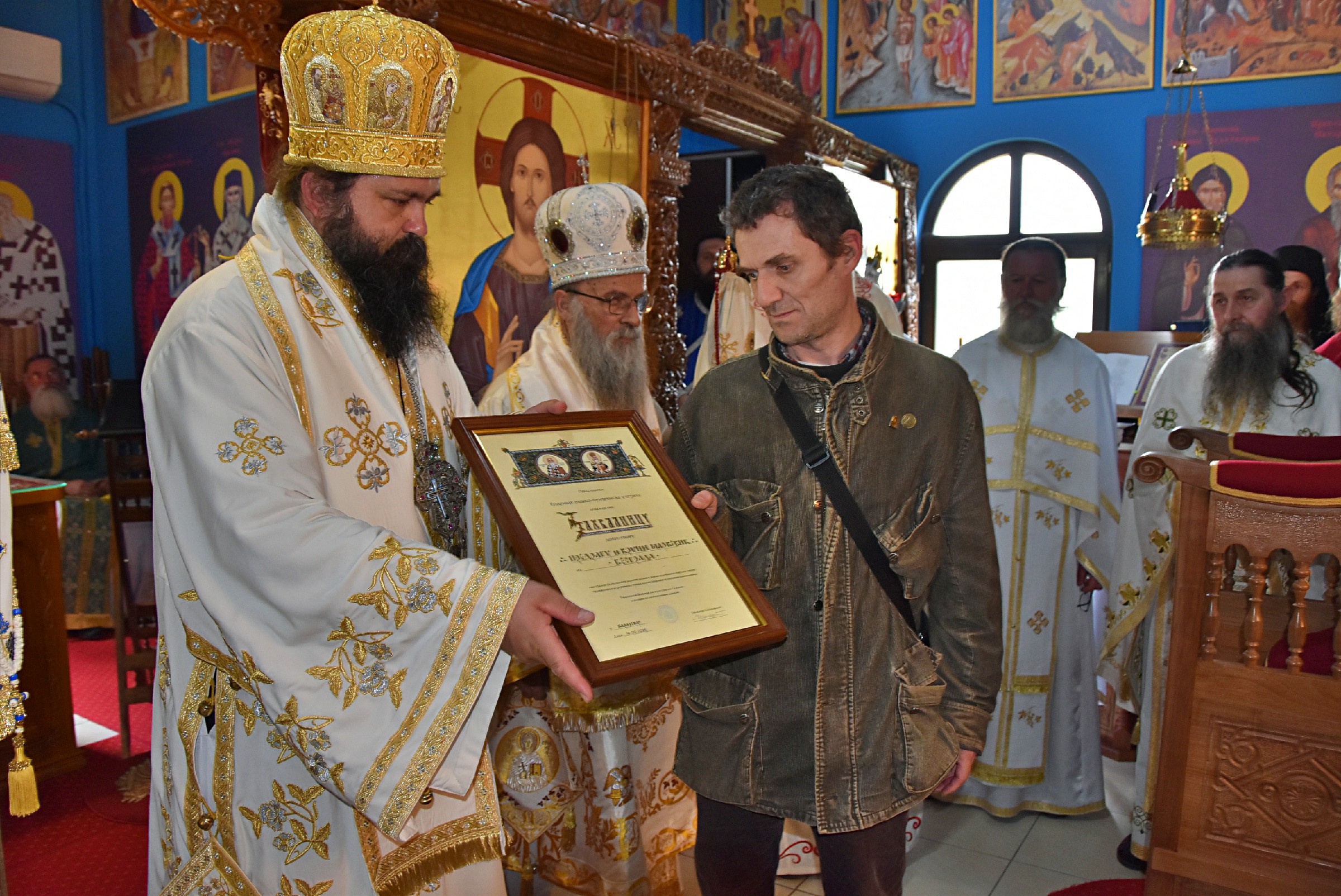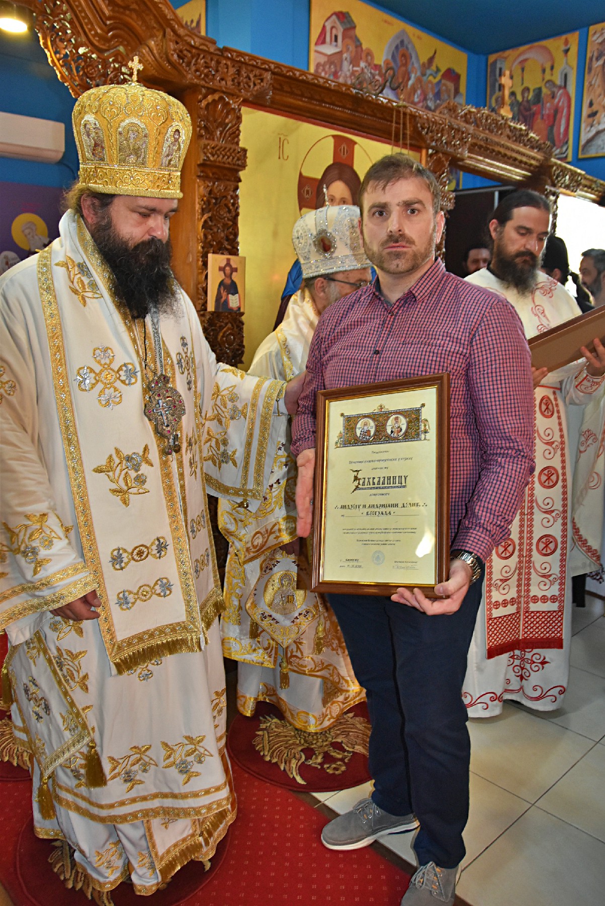 Потом је Владика Ксенофонт уручио захвалнице добротворима манастира и то: Мирославу и Весни Станковић из Барајева, Мирославу Станићу са породицом из Земуна, Адреју и Андријани Делић из Београда и Предрагу и Круни Марковић из Београда.