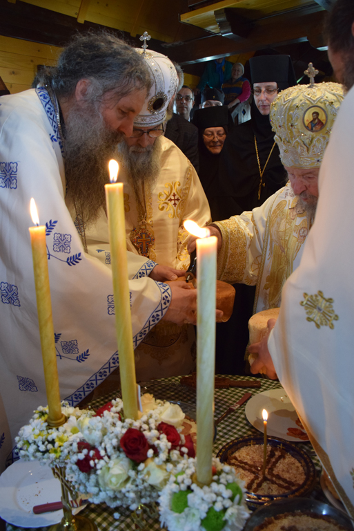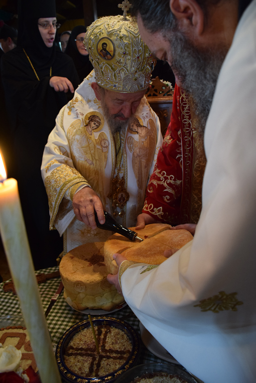 Након Литургије Владика Артемије је извршио чин резања славског колача и благосиљања жита које су част Светог Николаја принели сестринство манастира, ктитор манастира Милоје Стевановић из Чачка и овогодишњи домаћин славе Владан Глођевић из Рашке и искушеник Никола (Ђорђијевски) из манастира Светог Архангела Михаила из Ниша. Домаћини славе за наредну годину биће Томо Тришовић из Поповића (Краљево), Зоран Ратковић из Цветака (Краљево), Светомир Милојевић из Сочанице, Милутин Милосављевић из Крушевца и Ратомирка Белић из Новог Пазара.