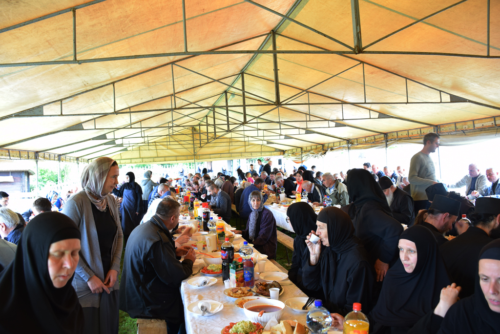 Уследила је славска трпеза љубави за све присутне, које су припремили сестринство манастира и овогодишњи домаћини славе. У току трпезу сестре су појањем духовних песама увеличале празничну радост.