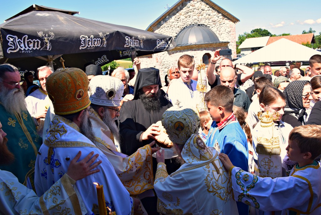 Након Литургије Владика Артемије је извршио чин резања славског колача и благосиљања жита које су у славу и част Пресвете Богородице принели братство манастира и овогодишњи домаћини славе: Горан Јовановић из Јагодине, Ненад Крстић из Чајетине и Милунка Брковић из Ужица. За идућу годину пријавили су се: Милош Стефановић из Ариља, Ђорђе Дробњаковић и Радивоје Гулан из Ужица.