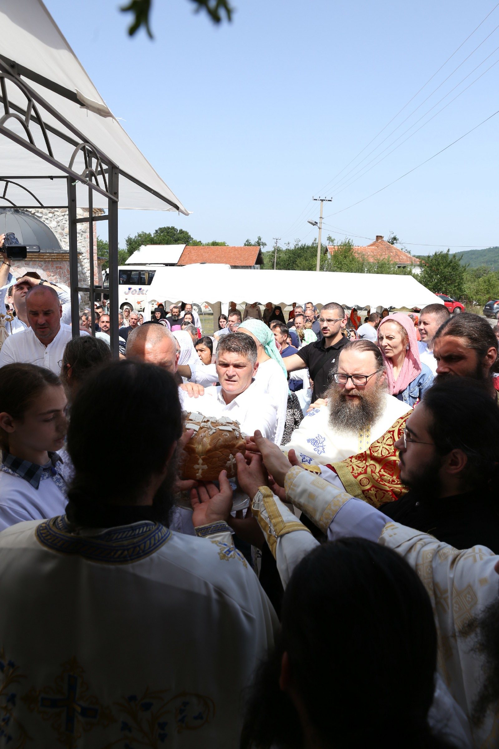 Након Литургије Владика Николај је извршио чин резања славског колача и благосиљања жита које су у славу и част Пресвете Богородице принели братство манастира и овогодишњи домаћини славе: Ненад Кнежевић, Немања Ђорђевић, Милорад Борисављевић, сви из Ужица, и Војинка Новаковић из Лудвиберга (Немачка). За следећу годину пријавили су се Ужичани: Марко Смиљанић, Биљана Јерић, Снежана Димитријевић, Александра Прљевић и Владислав Рибаћ.