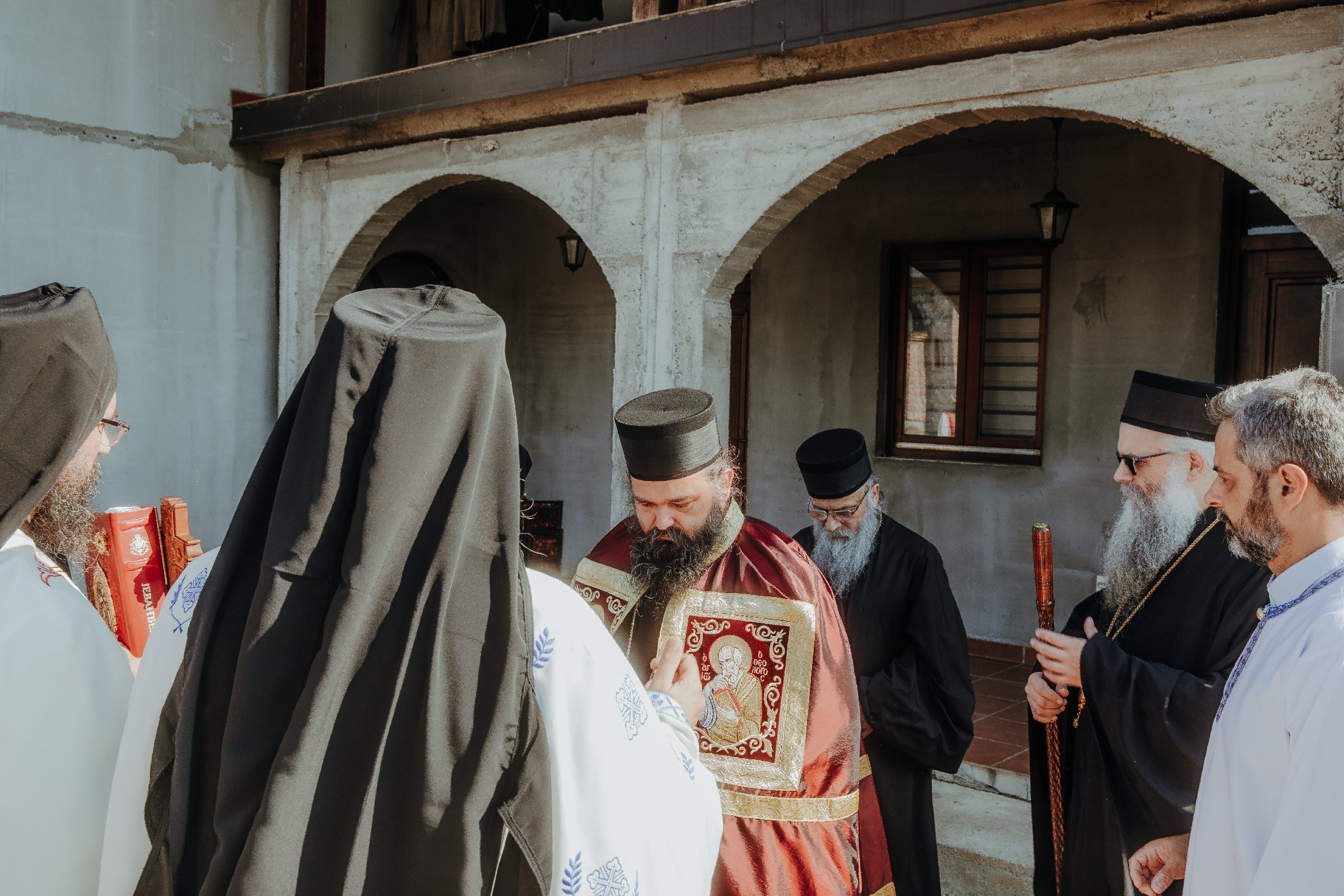 “Пресвета Богомајка јесте тај неразрушиви бедем Цркве, бедем под који и иза ког се склањамо у свим невољама, бурама и олујама овога света. Она је та наша велика Заштитница и утеха. У част Њене иконе Тројеручице у коме столује наш епархијски архијереј тиме показала да је Покровитељка и читаве наше епархије, да је Она и духовни бедем иза кога ми у сред ове екуменистичке, јеретичке, глобалистичке буре и олује можемо увек наћи заклон, уточиште, утеху и укрепљење. Зато и долазимо посебно на данашњи дан и празник по такву утеху, по такво укрепљење од Пресвете Богомајке које нека Она издејствује, исподатајствује и измоли пре свега за предстојатеља наше епархије, настојатеља ове свете обитељи преосвећеног владику Ксенофонта, његову братију, све парохијане који се овде сабирају али и за све који су се данас сабрали, који се иначе сабирају, за целу нашу епархију и Цркву, на многаја и благаја љета. Амин, Боже дај.“