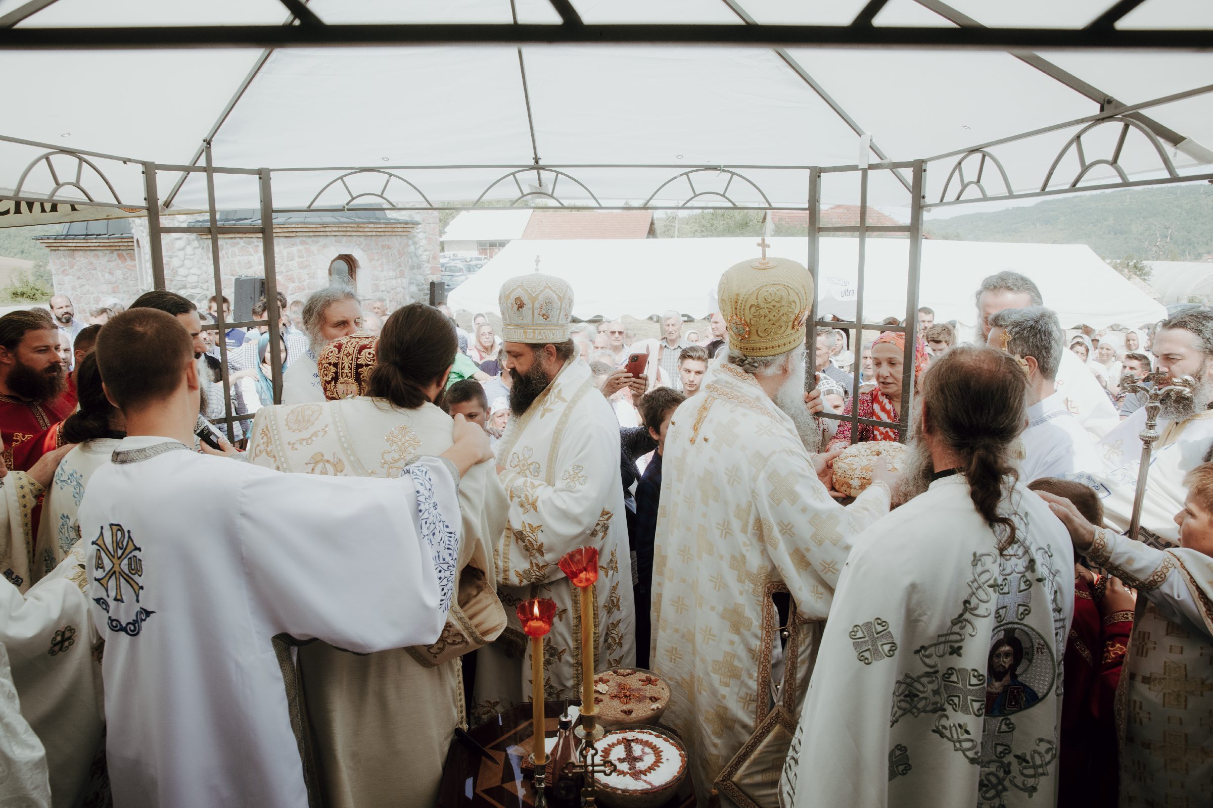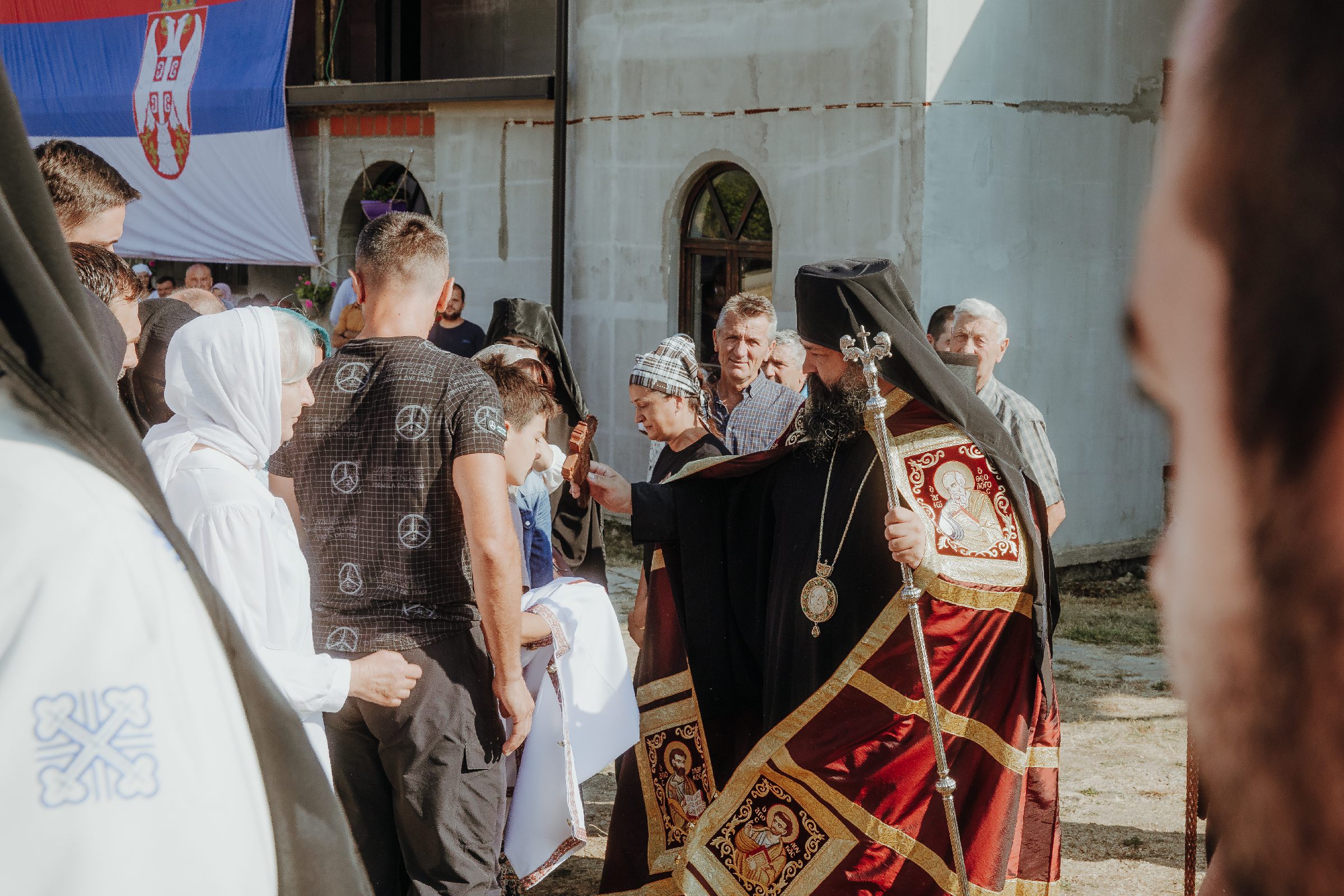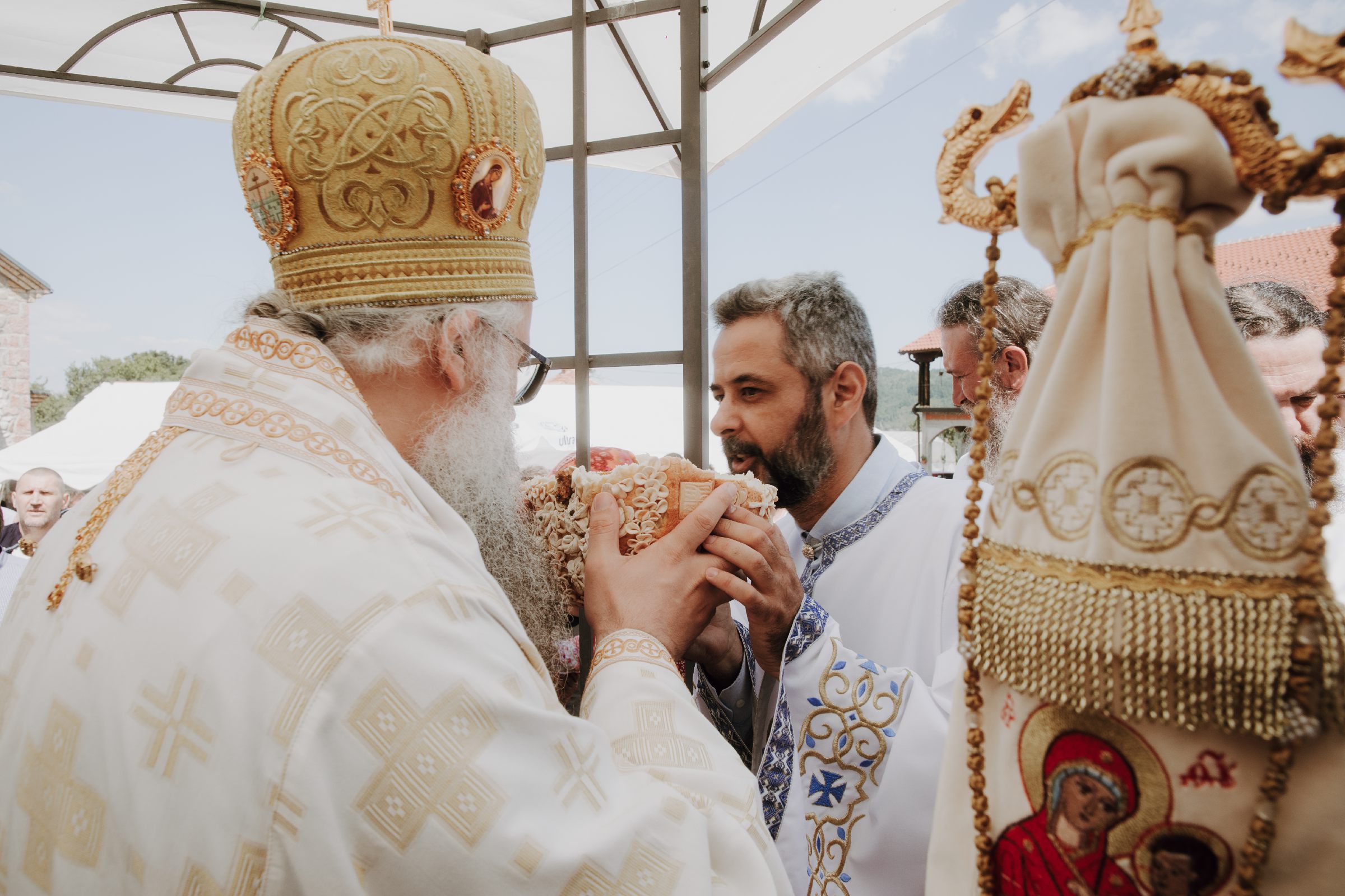 Након Литургије Владика Николај је извршио чин резања славског колача и благосиљања жита које су у славу и част Пресвете Богородице принели братство манастира и овогодишњи домаћини славе: Марко Смиљанић, Биљана Јерић, Снежана Димитријевић, Александра Прљевић и Владислав Рибаћ, сви из Ужица. За следећу годину пријавили су се: Милош Поњавић, Горан Милић, Александар Марковић, Милунка Брковић, сви из Ужица, Бојан Тркуља из Београда и Видосава Томовић из Чајетине.