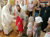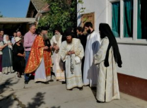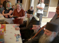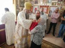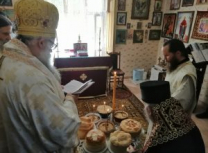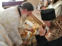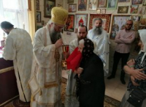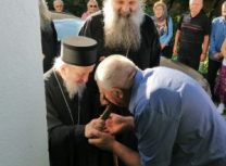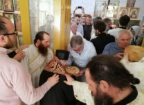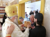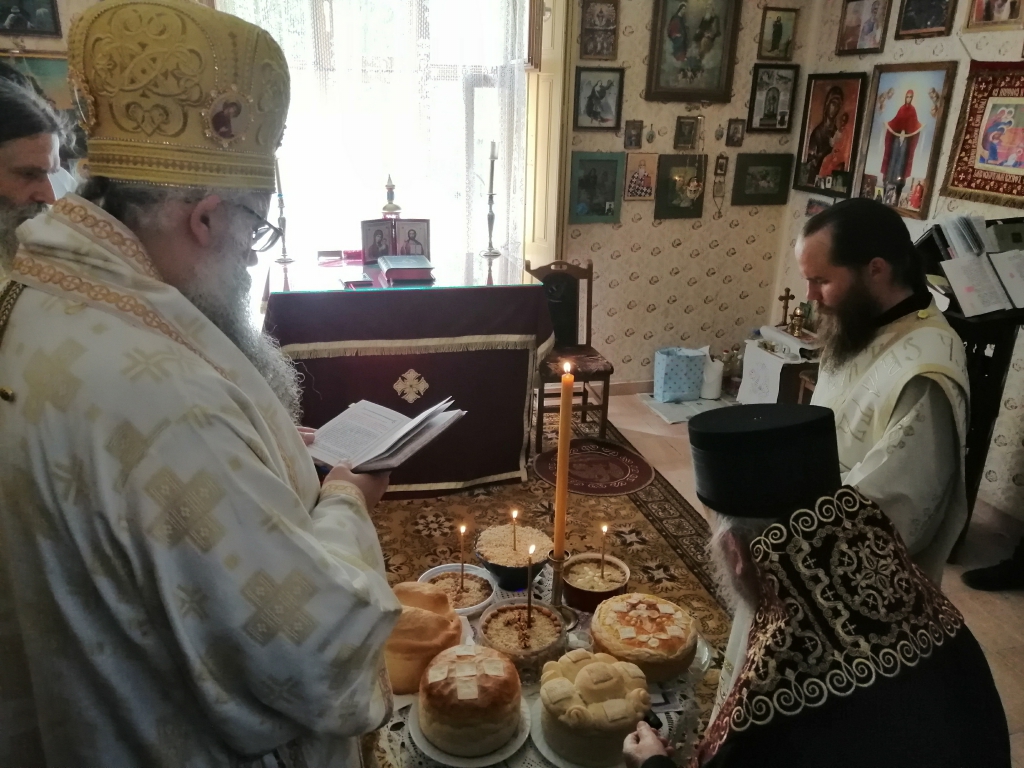 Након Литургије Владика Артемије је извршио чин резања славског колача и благосиљања жита које су принели овогодишњи домаћин славе Јован Миљковић из Беча. За идућу годину пријавила се Мирјана Арваји из Црвенке.