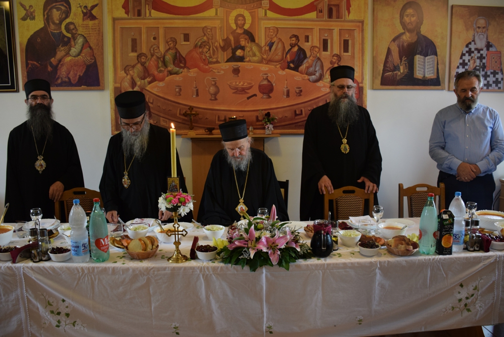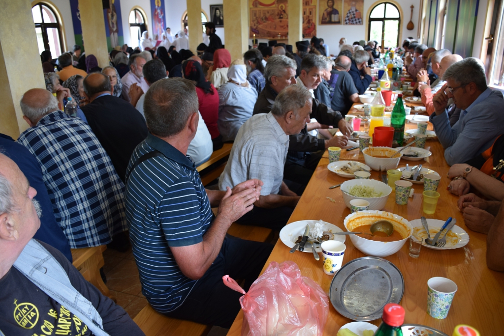 Празнично славље настављено је трпезом љубави током које је хор “Преподобни Јустин Ћелијски“ извео пригодни програм.