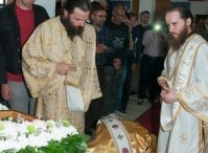Након Литургије Владика Артемије је извршио чин резања славског колача и благосиљања жита које су у част преподобног Јустина Ћелијског принели манастирско братство, чланови хора “Преподобни Јустин Ћелијски“ и овогодишњи домаћини славе: Босиљка Зукановић, Мирослав и Весна Станковић, Оливера Ракић и Босиљка Његомир, сви из Београда. За наредну годину пријавили су се Београђани: Ана Дамјановић, Даница Тишма, Видосава Живковић и Љубица Ћурулић.