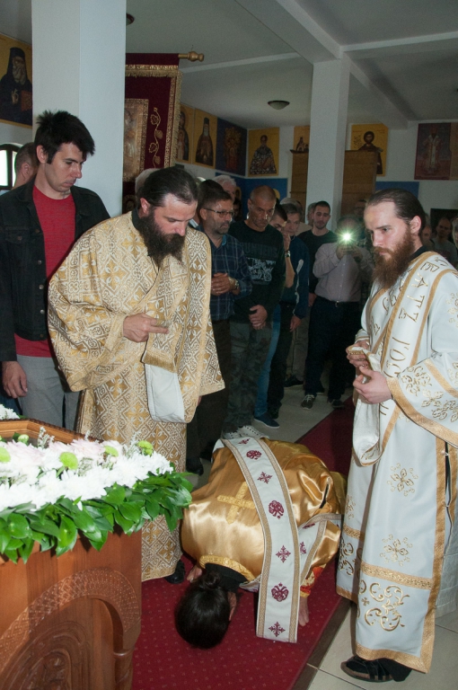 У току Литургије Епископ Артемије је у чин јеромонаха рукоположио јерођакона Леонтија (Кантара), сабрата манастира Пресвете Богородице Тројеручице у Мушветама, а у чин ђакона Бранка (Јованчевића) из Нове Пазове.