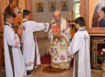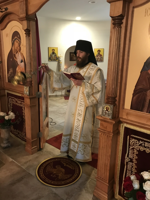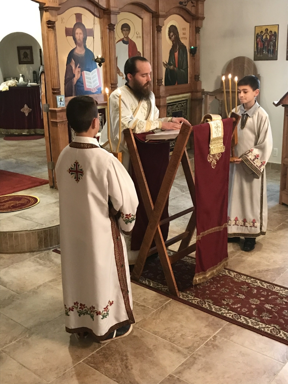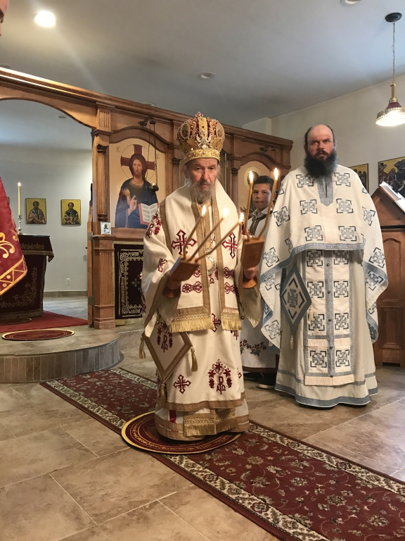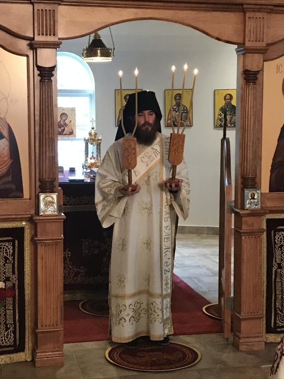 „Данас прослављамо оне који су светлост свету и светлост роду српскоме. Род српски је светородан. Има више светих Срба на небу него што их је овде несветих остало на земљи. Не меће се упаљена светиљка под кревет него на сто па онда светли свима који су у кући. Дакле, „тако да се светли светлост ваша пред људима, да виде ваша добра дела и прославе оца вашега који је на небесима“. Ове је речи чуо Свети Сава, родоначелник наш, и чули су сви архиепископи и патријарси српски од њега до дана данашњега. Они који су кренули за Господом Христом схватили су шта значе речи: „Будите свети јер сам ја свет. Будите савршени као што је савршен Отац ваш небески“. Све ове речи они су слагали у своја чиста срца и онда су испуњавали заповести Божје, не полутански, нису бирали само оне заповести које им се свиђају а остале одбацивали, него су извршавали све Божје заповести у пуноћи закона Господњег, јер Господ рече: „Онај ко ме љуби, држаће заповести моје и ја ћу га љубити и Отац ће га љубити и уселићемо се у њега.“ Дакле, човек, његово срце, постаје трон Божји. Сам се Бог, који је љубав усели у њему и онда из таквога човека светли се светлост пред људима, јер Он је „светлост од светлости“ како га исповедамо у Символу вере“, – нагласио је отац Стефан.
