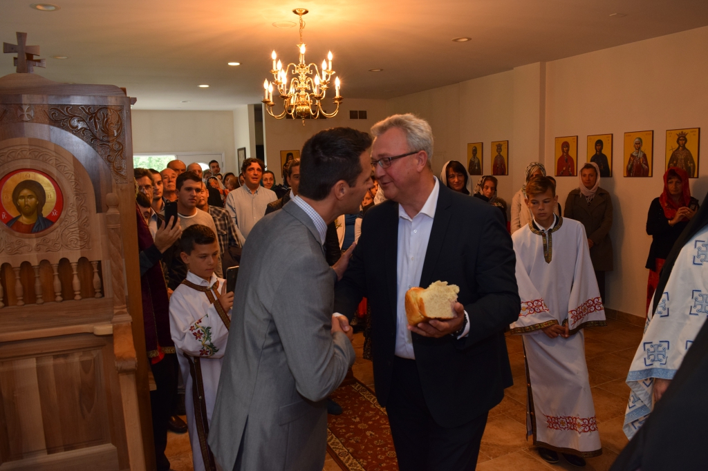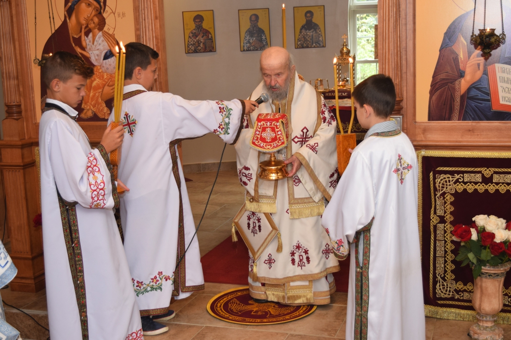 Након Литургије Владика Артемије је извршио чин резања славског колача које су, у част светих српских просветитеља, принели братство манастира и овогодишњи домаћин славе Жељко Митровић из Виндзора (Канада). За идућу годину пријавио се Милан Ћелић, такође из Виндзора.