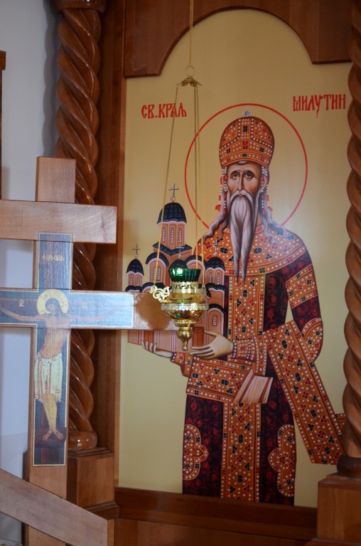 У хору светих српских задужбинара особитом светлошћу сија Свети Краљ Милутин (1282–1321), велико светило Православне Цркве, заштитник Православља, син Уроша I и краљице Јелене. За време своје владавине саградио је 42 цркве широм српске државе и хришћанске васељене почев од Синаја, Јерусалима, Цариграда, Солуна, до Свете Горе и Софије. Овом предивном угоднику Божјем посвећен је прелепи манастирски храм Eпархије рашко-призренске и косовско-метохијске у егзилу у селу Бадовинцима код Шапца. Овај прeлепи бисер епархије у егзилу представља најновији принос српског задужбинарства Богу и роду. На дан спомена Св. Краља Милутина, 30. октобра/12. новембра, у манастиру је веома свечано прослављена храмовна слава.