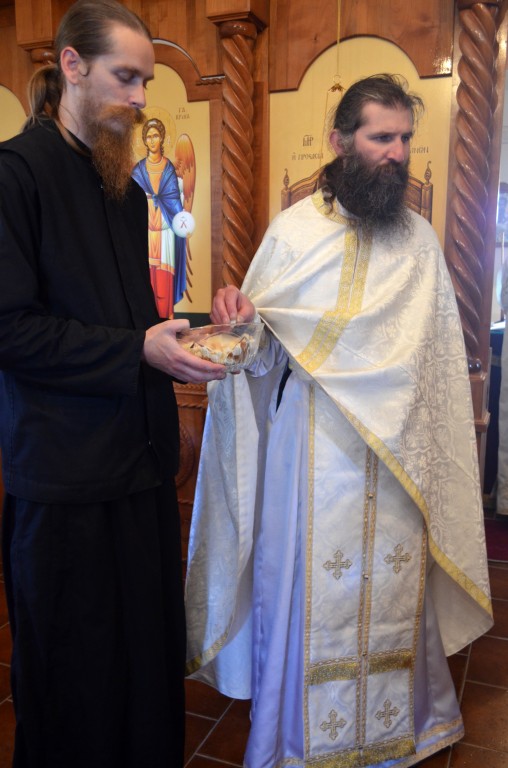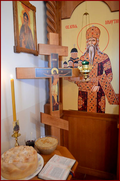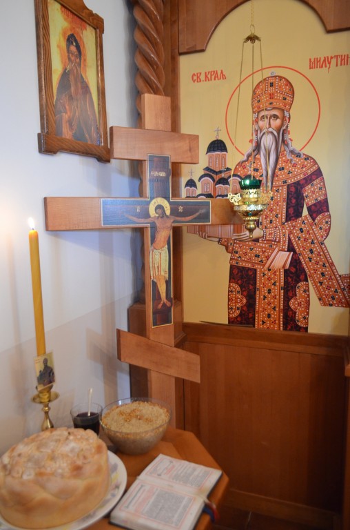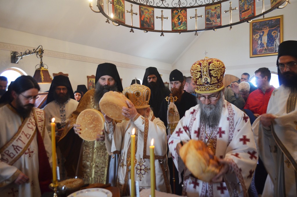 После Свете Литургије Владика је пререзао славске колаче и освештао жито које су принели братство манастира, овогодишњи домаћин славе Мирослав Јевтић из Бадовинаца и Православна народна хришћанска заједница – Братство Светог краља Милутина из Шапца. За идућу годину за домаћине славе пријавили су се: Ђорђо Симић из Подгорине (Република Српска), Милан Чворовић из Београда и Ђорђе Петровић из Шапца.