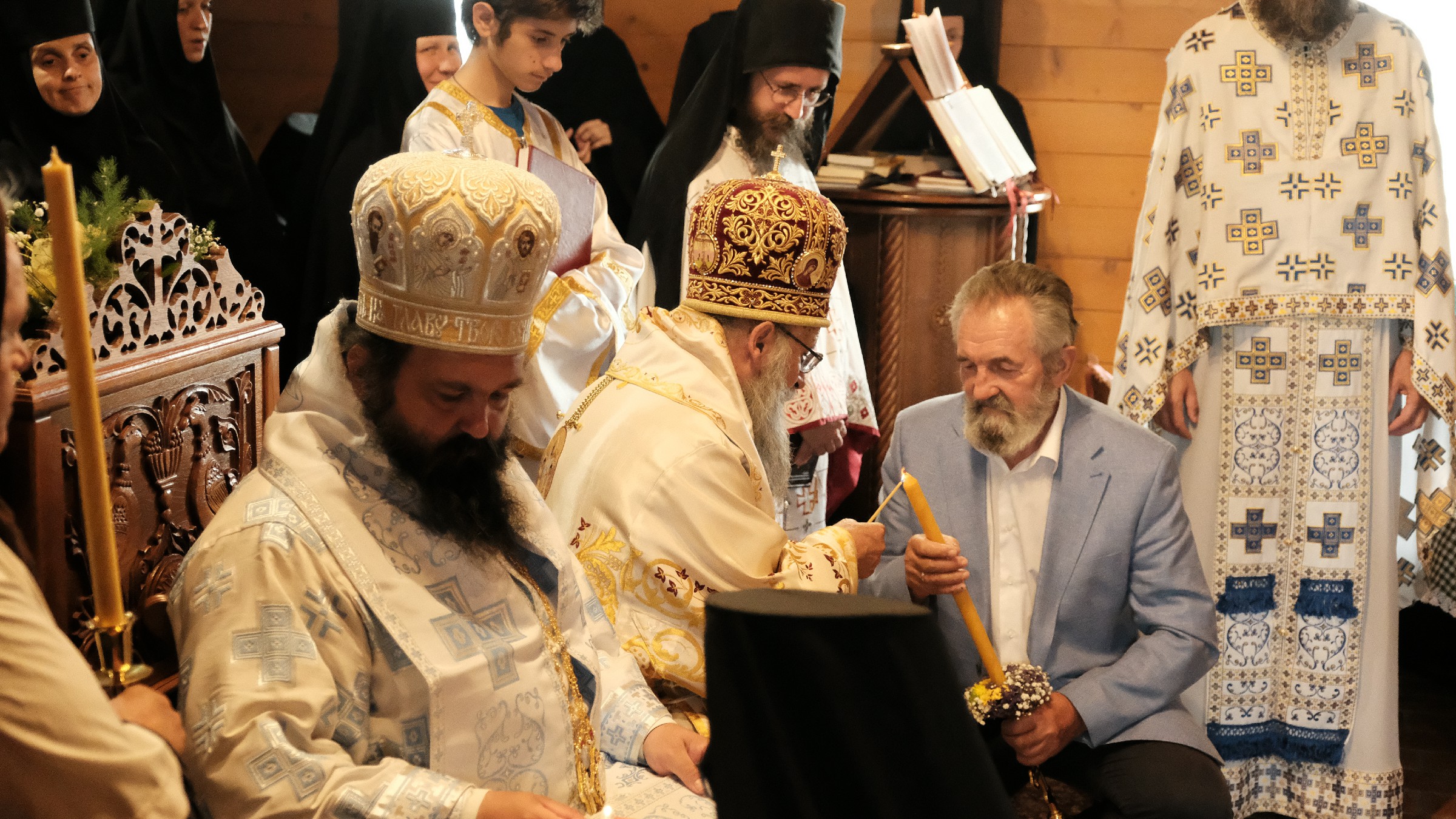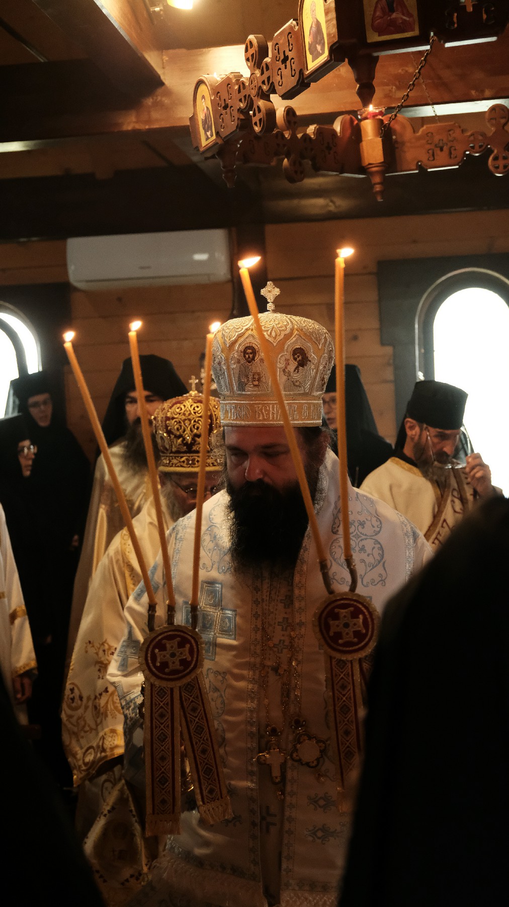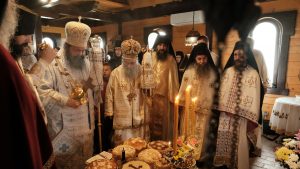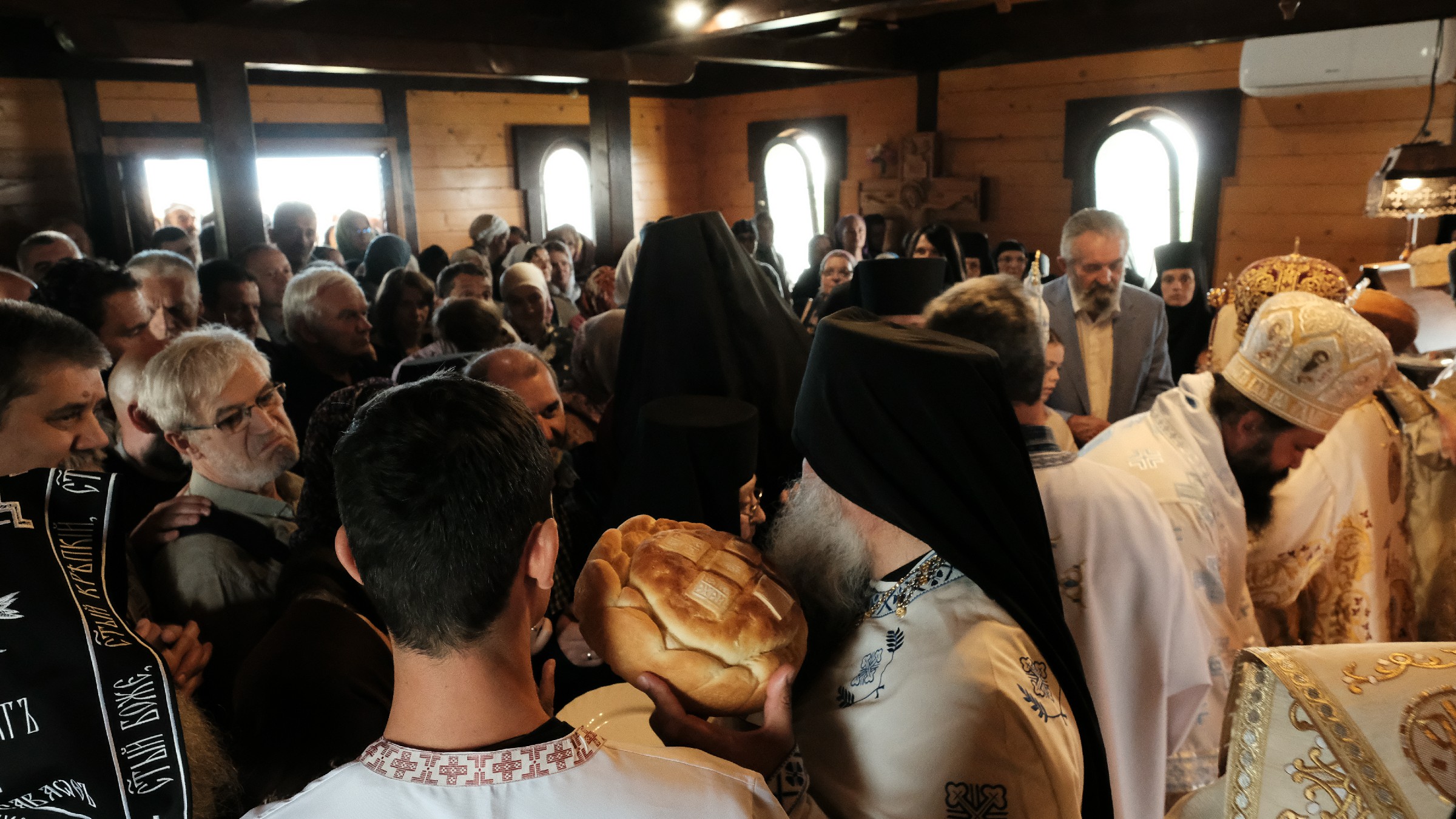 Након Литургије Владика Ксенофонт је извршио чин резања славског колача и благосиљања жита које су част Светог Николаја принели сестринство манастира, ктитор манастира Милоје Стевановић из Чачка и овогодишњи домаћини славе: Драгана Јосијевић са Каблара и Милевка Николић из Лазаревца. Домаћини славе за наредну годину су Горан Јосијевић и Микан Васовић.