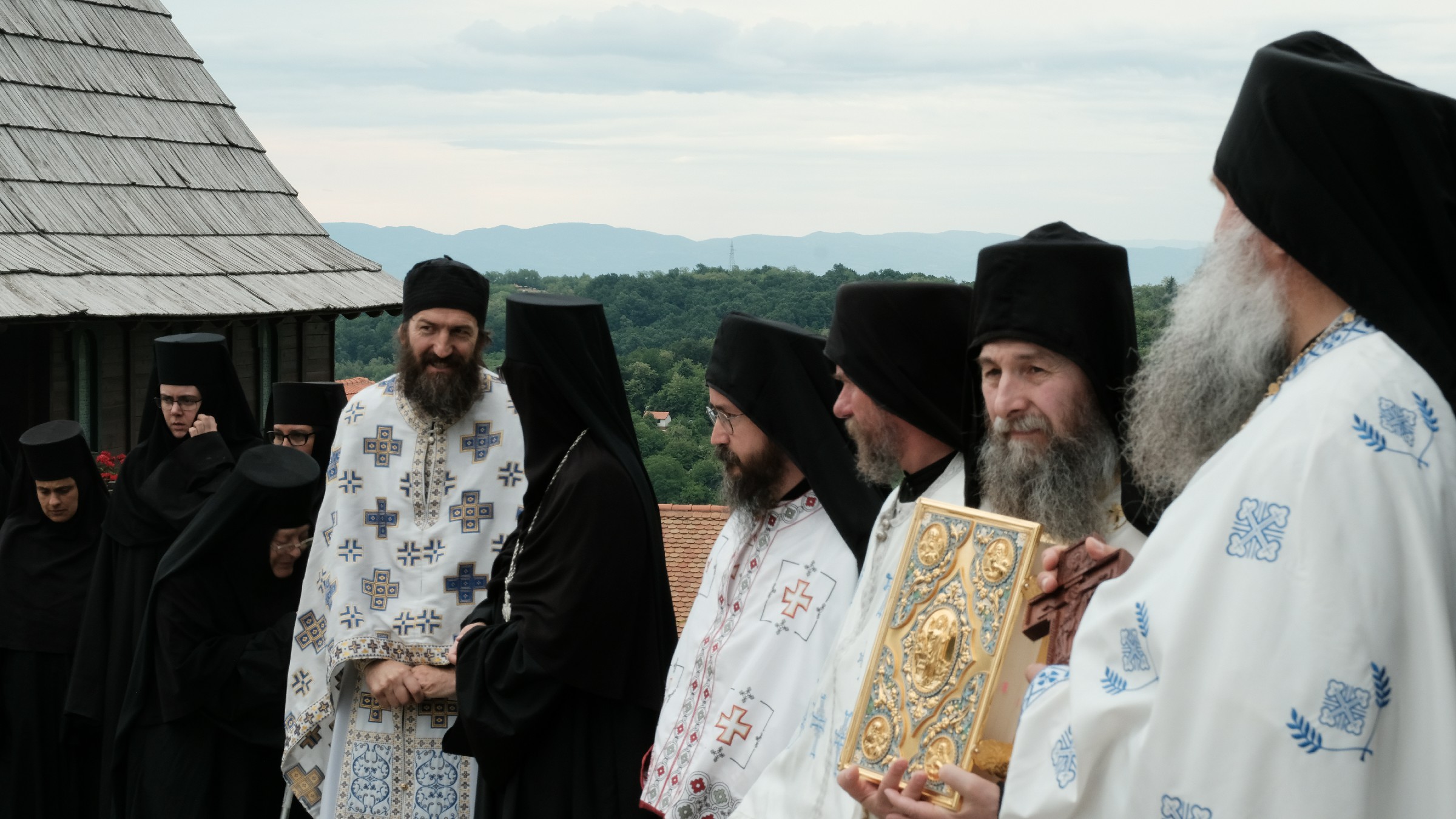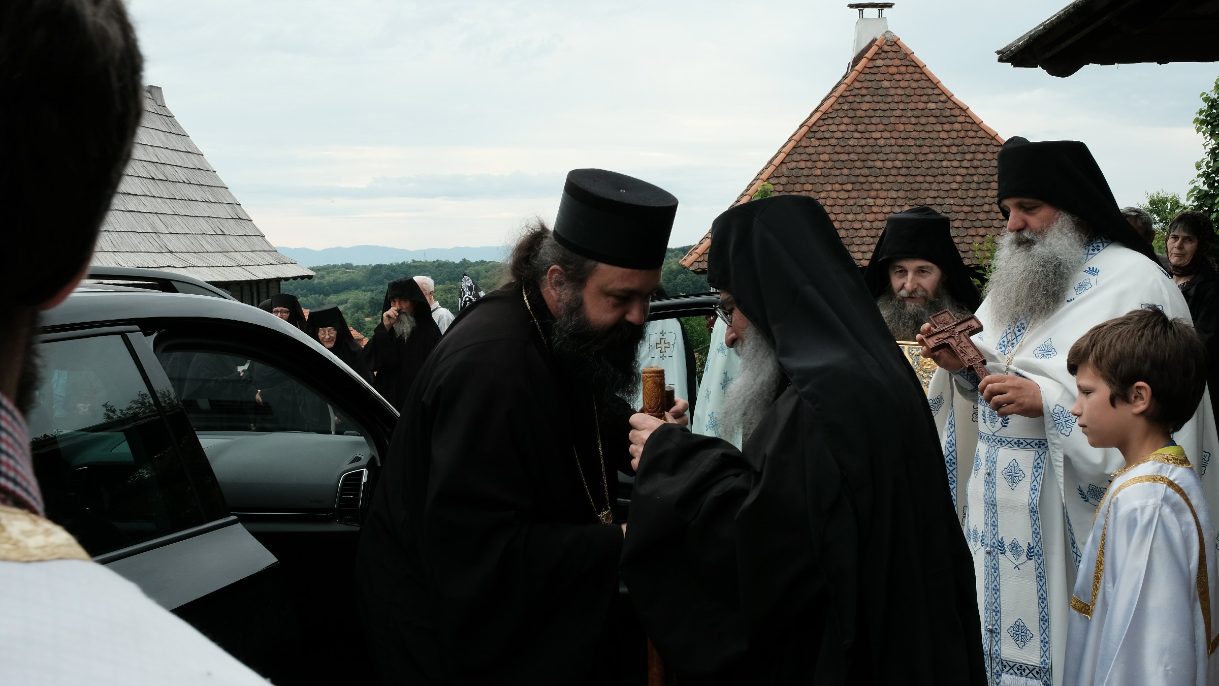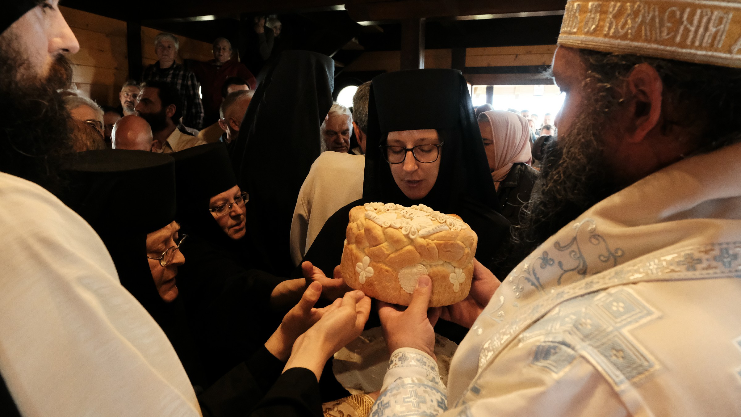 Након Литургије Владика Ксенофонт је извршио чин резања славског колача и благосиљања жита које су част Светог Николаја принели сестринство манастира, ктитор манастира Милоје Стевановић из Чачка и овогодишњи домаћини славе: Драгана Јосијевић са Каблара и Милевка Николић из Лазаревца. Домаћини славе за наредну годину су Горан Јосијевић и Микан Васовић.