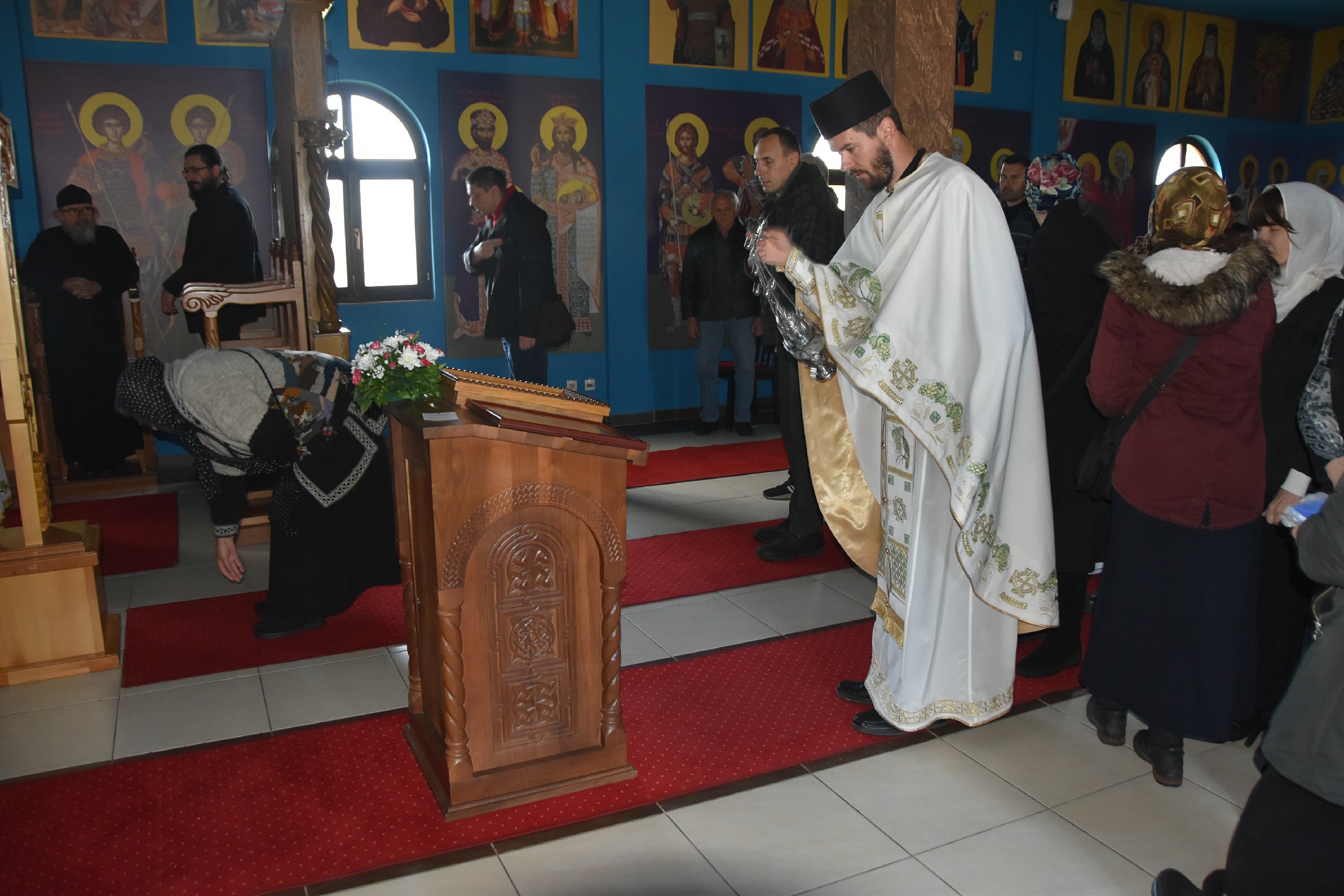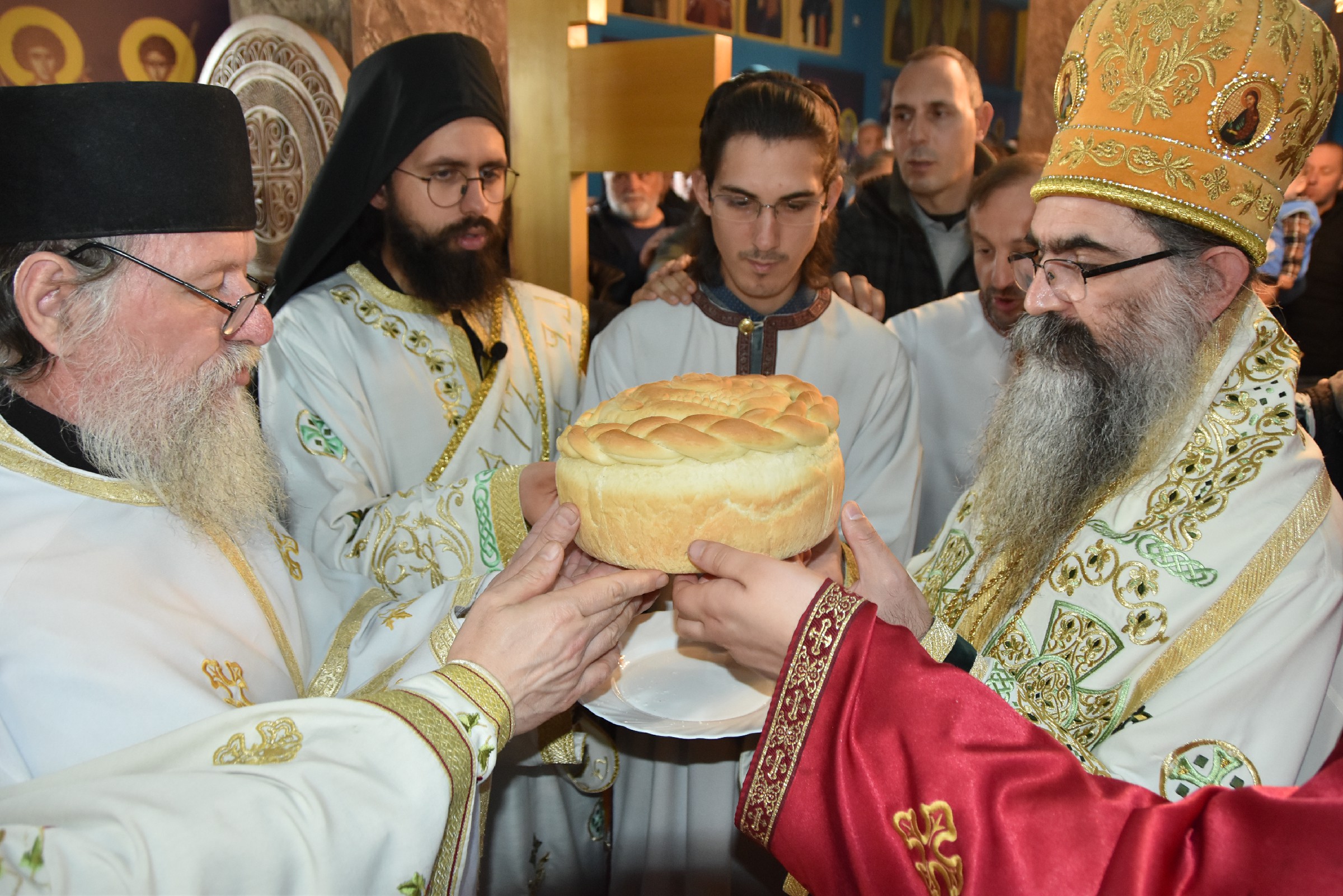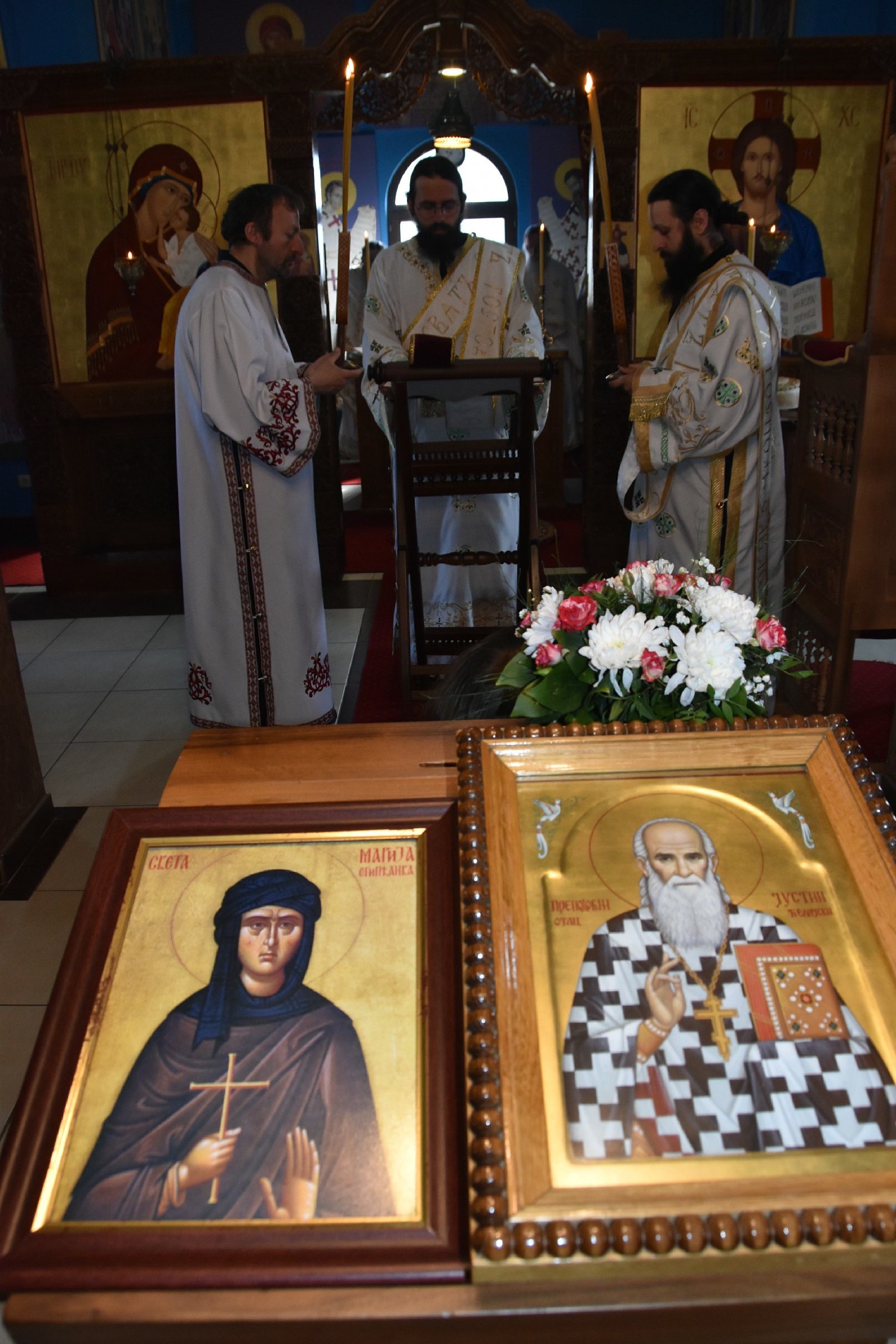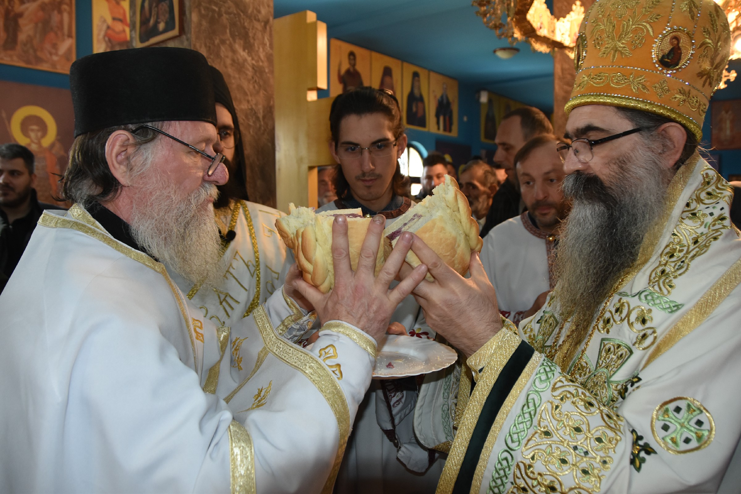 Након Литургије протојереј Жељко Марић је извршио чин резања славског колача и благосиљања жита које су у част Преподобне Марије Египћанке принели њени славари – Владика Наум (уредник Информативне службе Епархије рашко-призренске у егзилу) и његови сарадници. Пригодном беседом верном народу се обратио протосинђел Пајсије (Марковић) говорећи о Јеванђељу службе и страдања Сина Божијега и Преподобној Марији као примеру великог покајања и свих јеванђелских врлина. На крају је честитао празник Владики Науму и његовим сарадницима и пожелео успешан рад на одговорном и значајном послушању.
