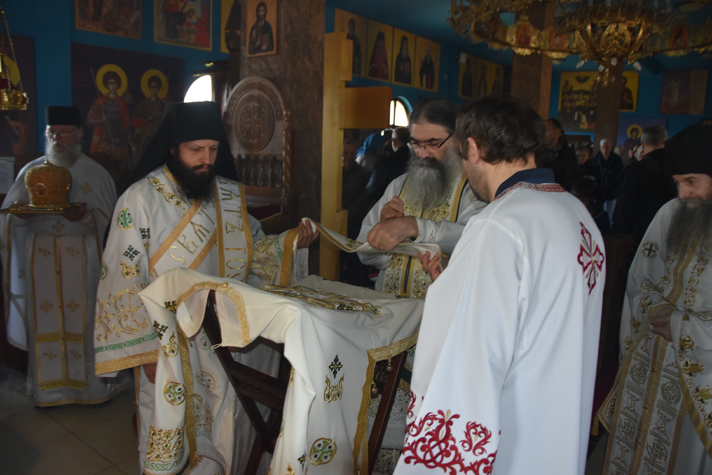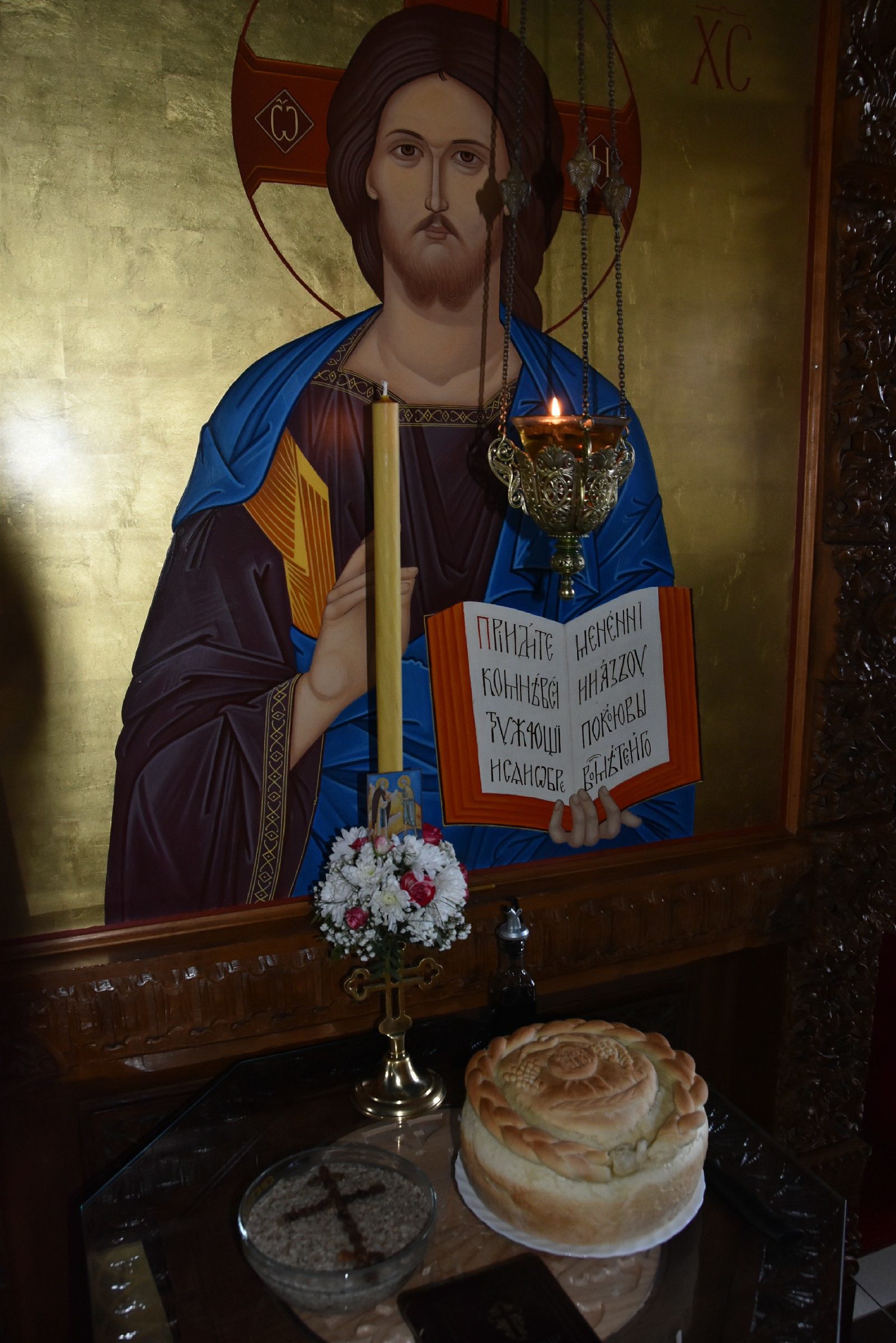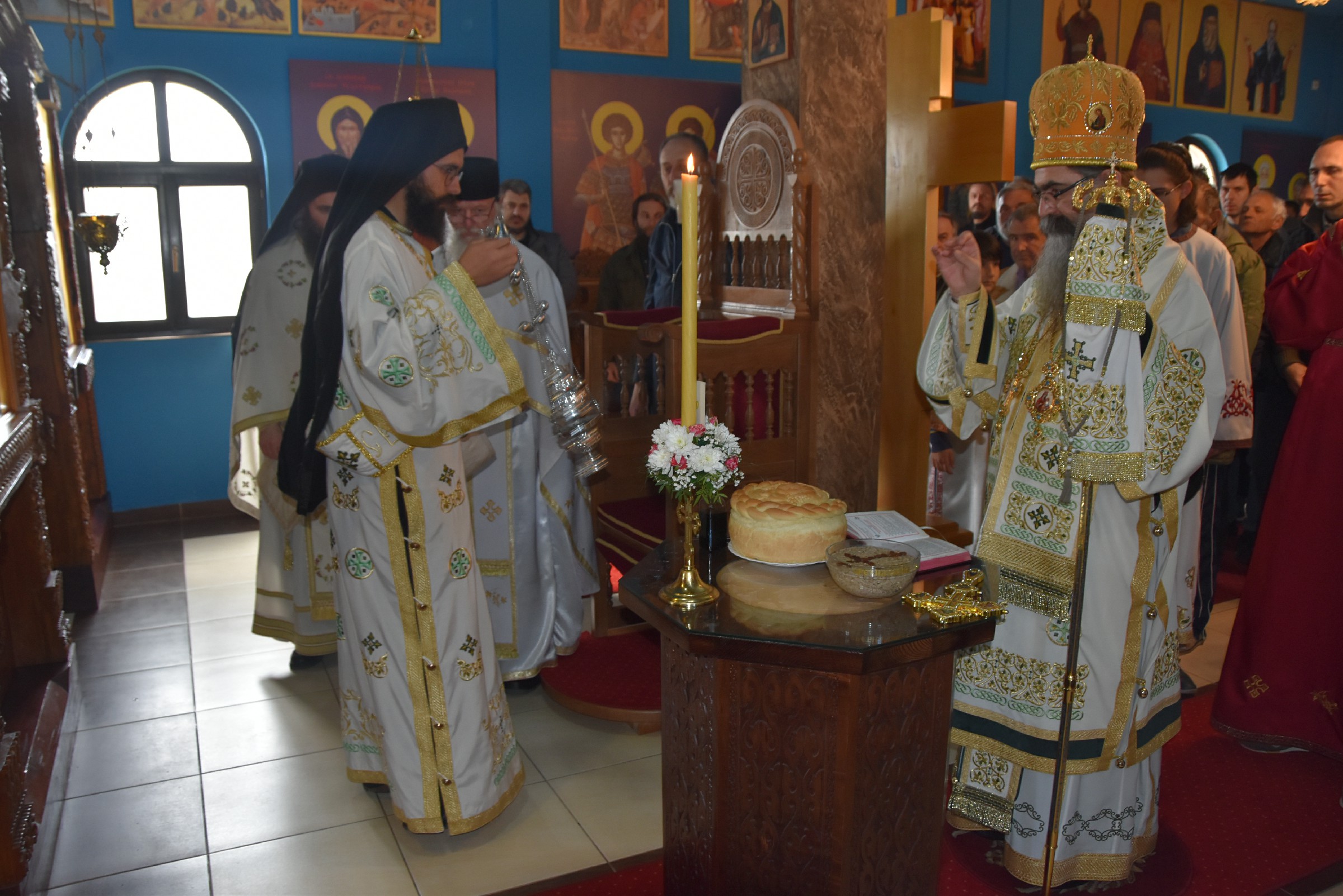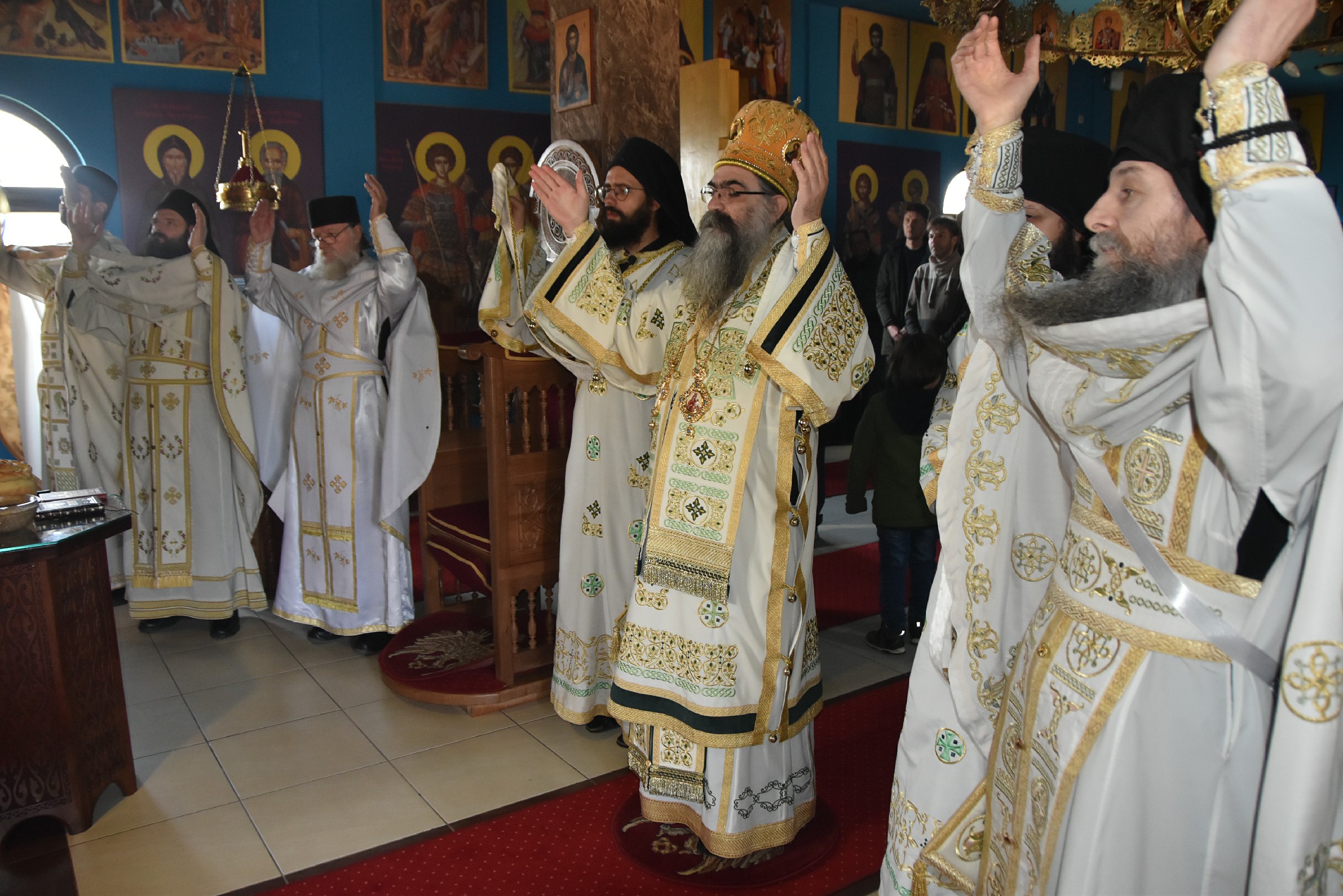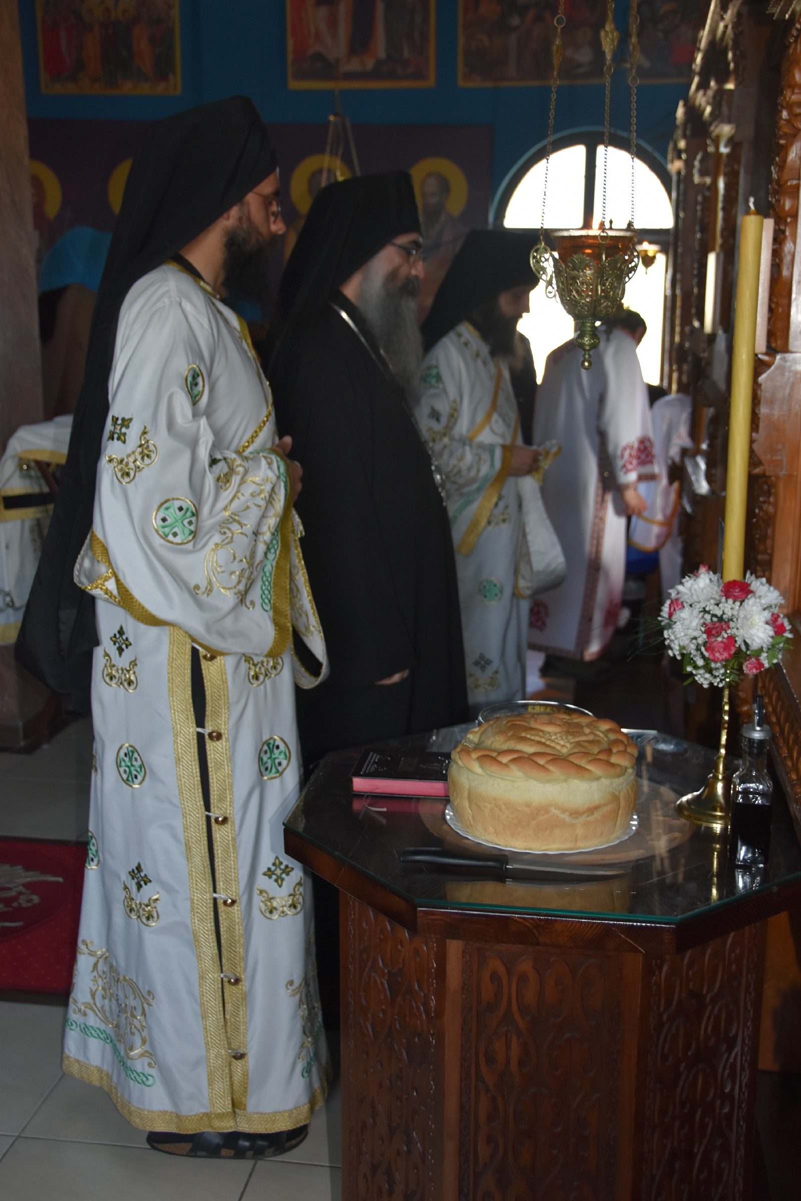 Након Литургије протојереј Жељко Марић је извршио чин резања славског колача и благосиљања жита које су у част Преподобне Марије Египћанке принели њени славари – Владика Наум (уредник Информативне службе Епархије рашко-призренске у егзилу) и његови сарадници. Пригодном беседом верном народу се обратио протосинђел Пајсије (Марковић) говорећи о Јеванђељу службе и страдања Сина Божијега и Преподобној Марији као примеру великог покајања и свих јеванђелских врлина. На крају је честитао празник Владики Науму и његовим сарадницима и пожелео успешан рад на одговорном и значајном послушању.